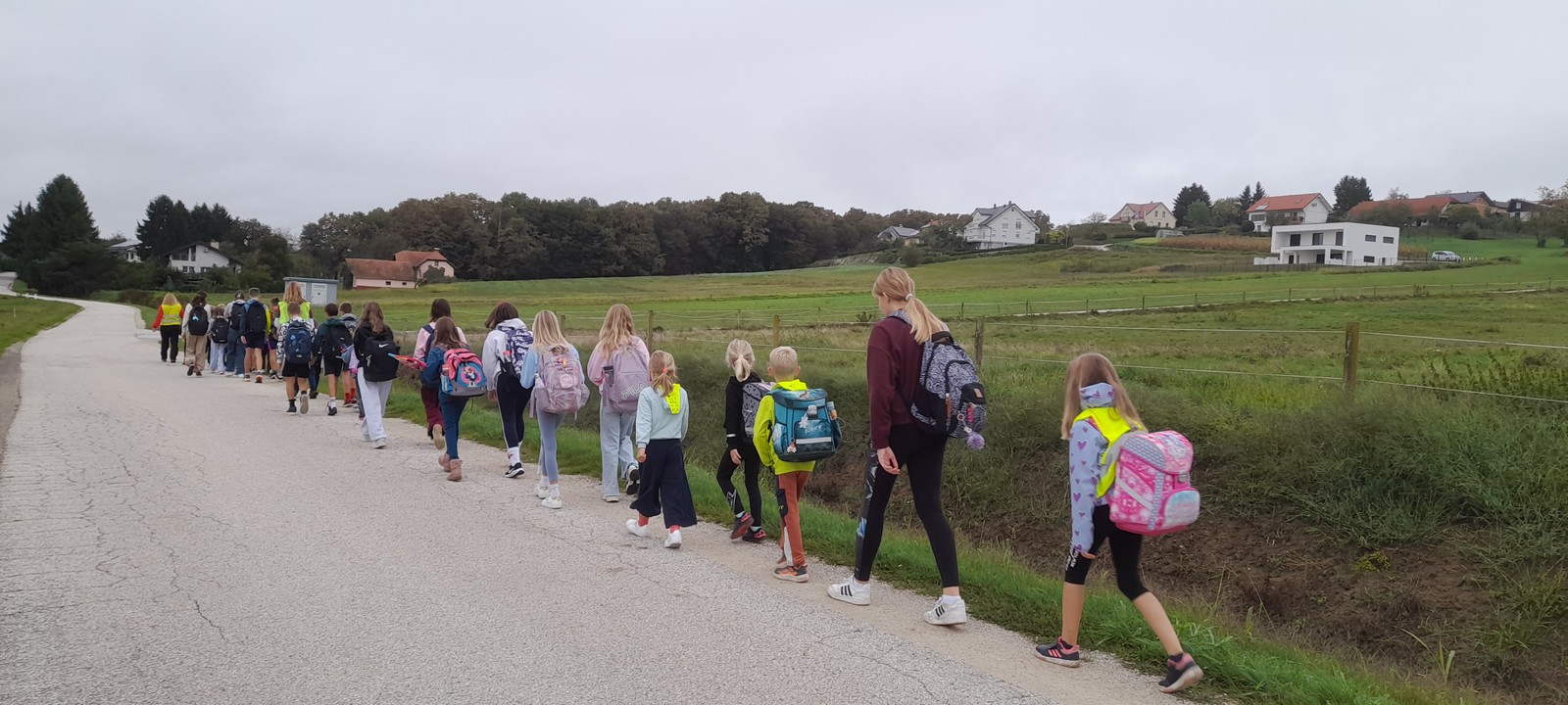 V Spodnji Pohanci in Dečnem selu je avtobus odložil učence, nekateri pa so do tja prišli že sami peš ali pa so jih odložili starši, in skupaj smo potem nadaljevali pot v šolo.