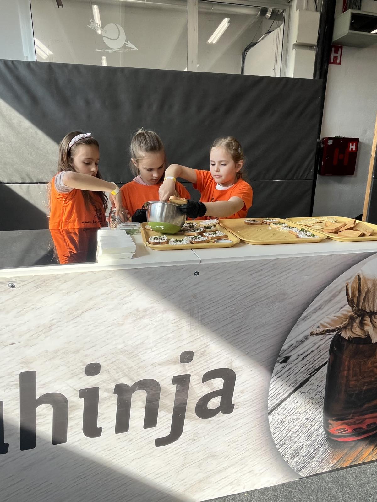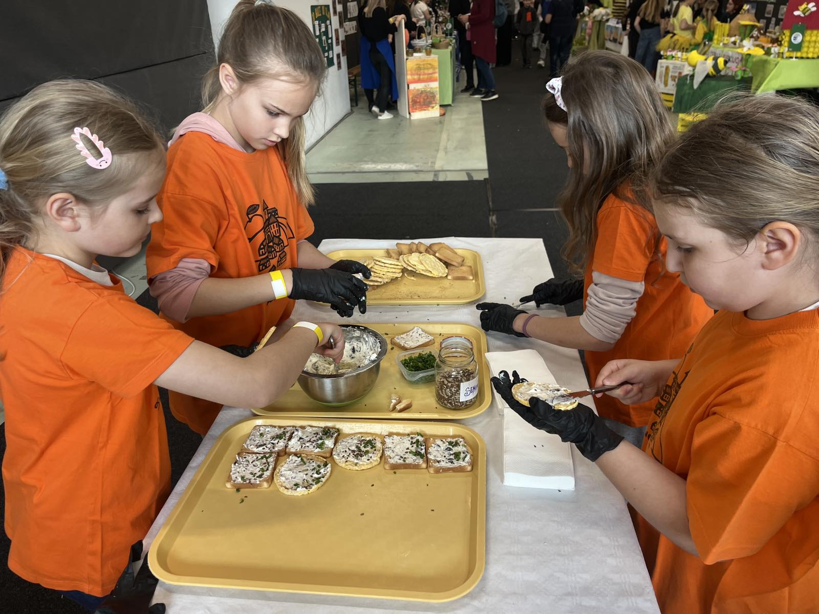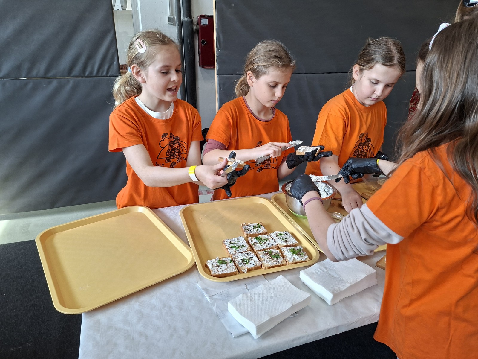 V demo kuhinji so učenci pripravljali namaz z drobnjakom. Namazali so ga na kruhke, na katere so posuli drobnjak. Zeliščni namaz so delili med obiskovalce, prazni pladnji pa so bili dokaz, da je bil naš namaz res okusen.
