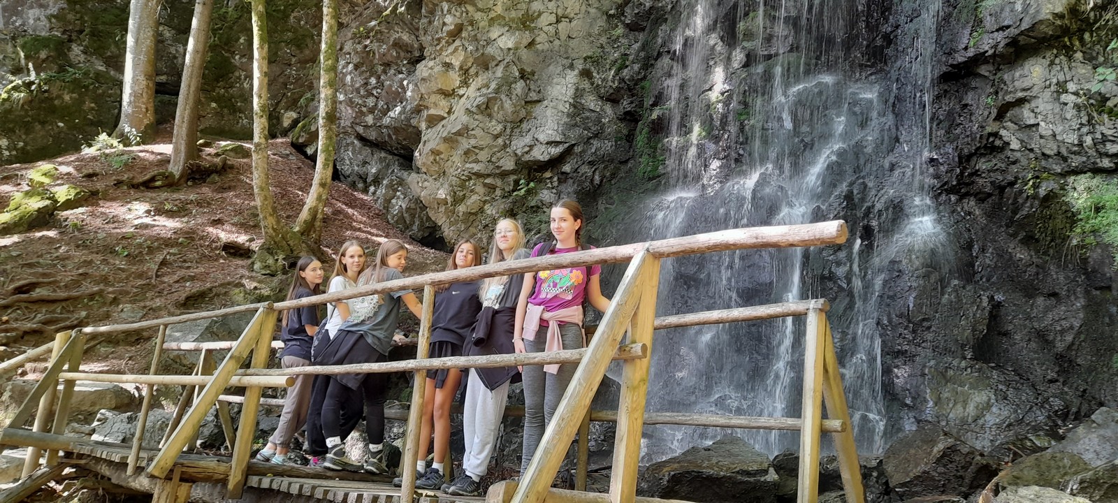 Današnji dan je potekel takole: ob osmih smo se zbrali pred šolo in se odpravili na pot ter se po dobri uri vožnje ustavili na malici.