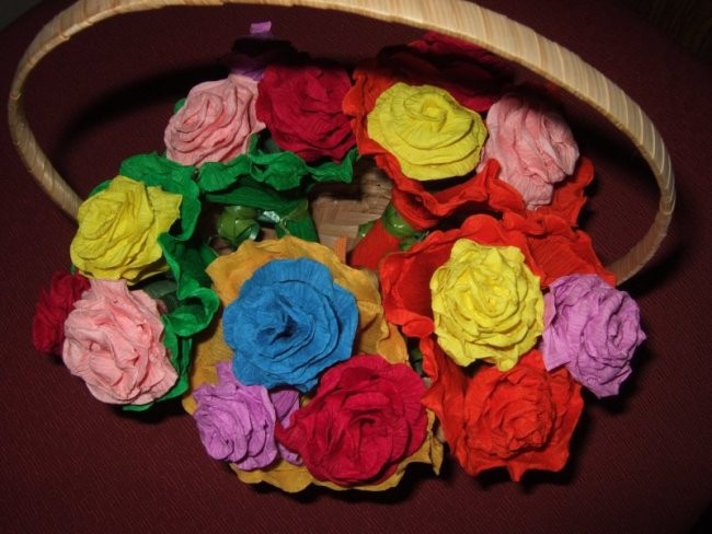 V torek, 26. 9. 2023, so se učenci učili izdelovati rožice iz krep papirja.