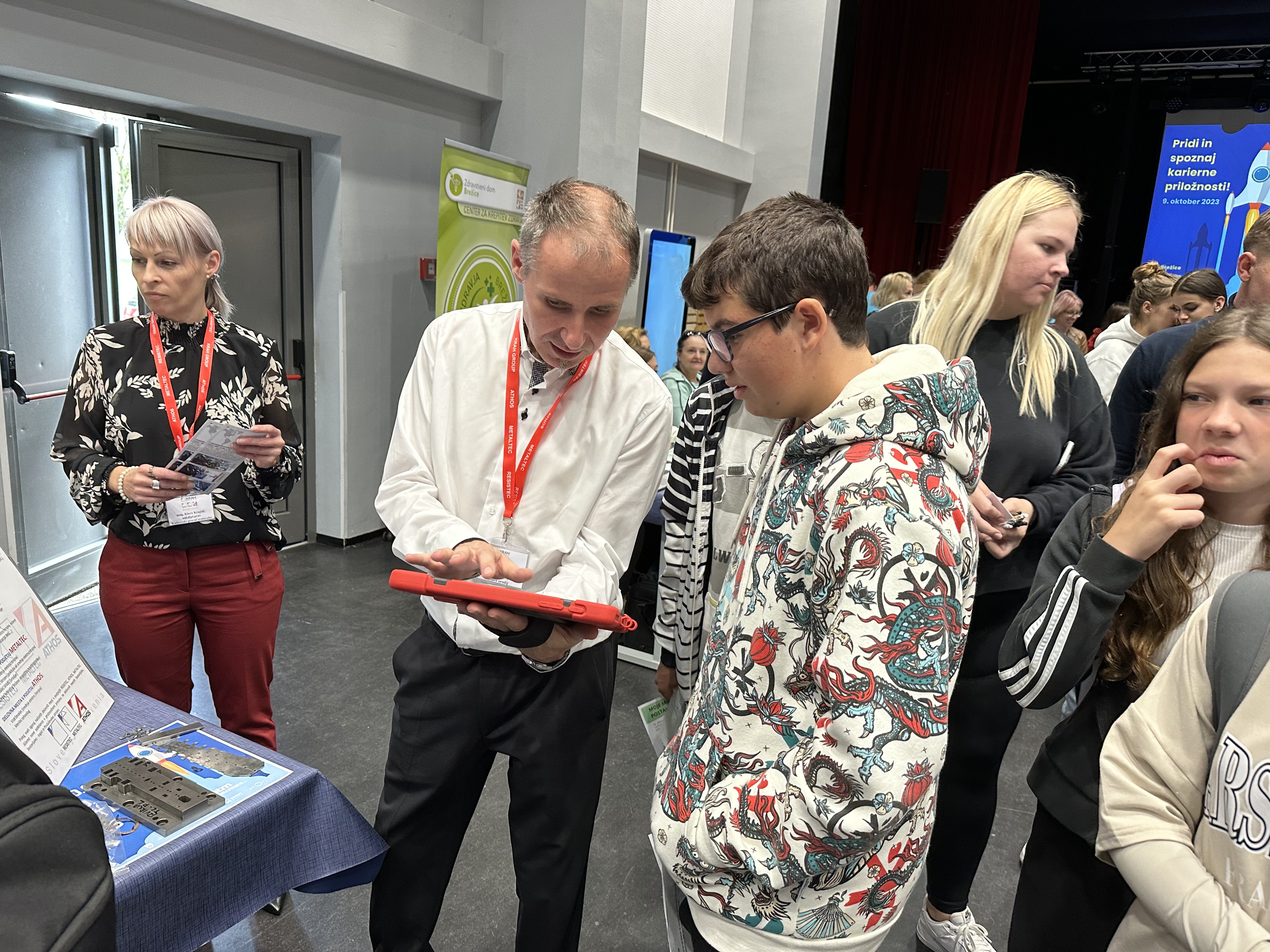 V ponedeljek, 9. 10. 2023, smo se devetošolci odpravili v Brežice, kjer je v Mladinskem centru potekal Karierni sejem. Tam sta nas pričakali predstavnici Zavoda RS za zaposlovanje, ki sta za nas pripravili delavnico z naslovom Pred prvo izbiro poklica. Na delavnici smo spoznavali naše dobre lastnosti, kaj nam je všeč, kateri poklici bi bili primerni za nas in podobno. Po delavnici smo imeli še nekaj časa, da smo obiskali stojnice, na katerih so se predstavljale različne srednje šole in delodajalci.