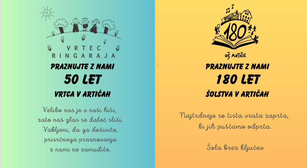 Toplo vabljeni na jutrišnjo slavnostno prireditev ob 180-letnici šolstva v Artičah.