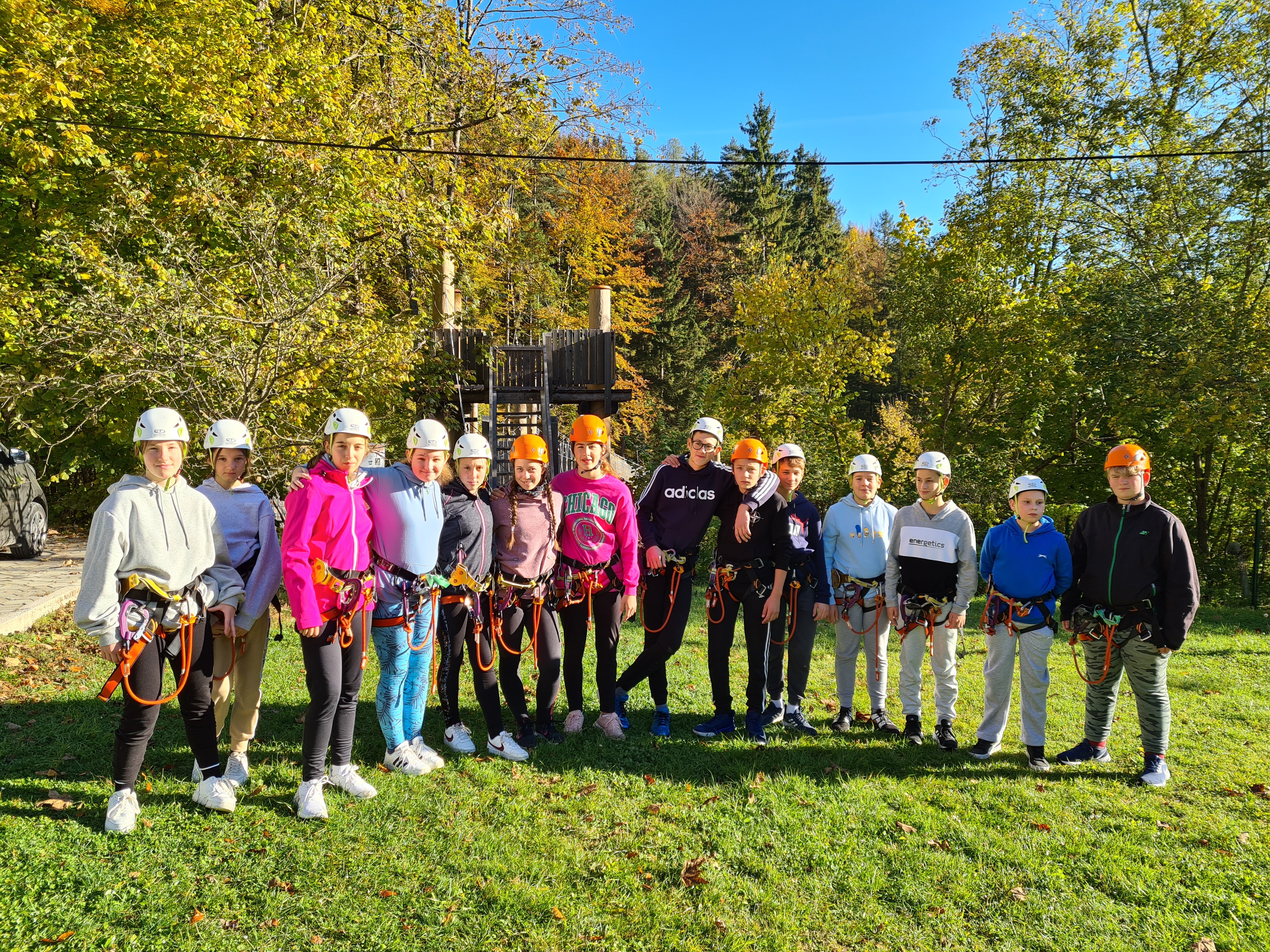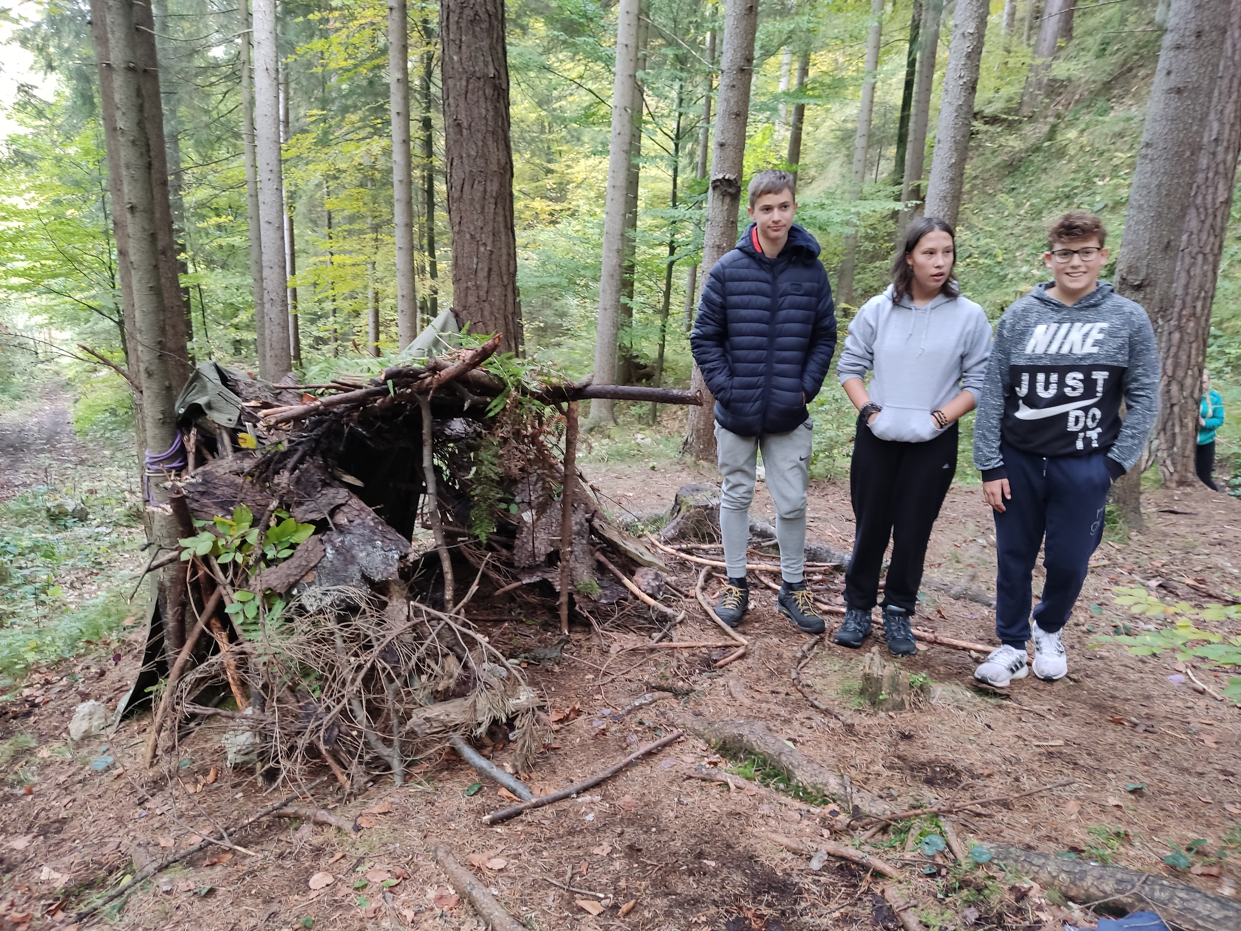 Po kosilu smo se učenci 8.b preizkusili v postavljanju bivakov v gozdu, učenci 8.a pa smo igrali 'pecakečing' orientacijo.