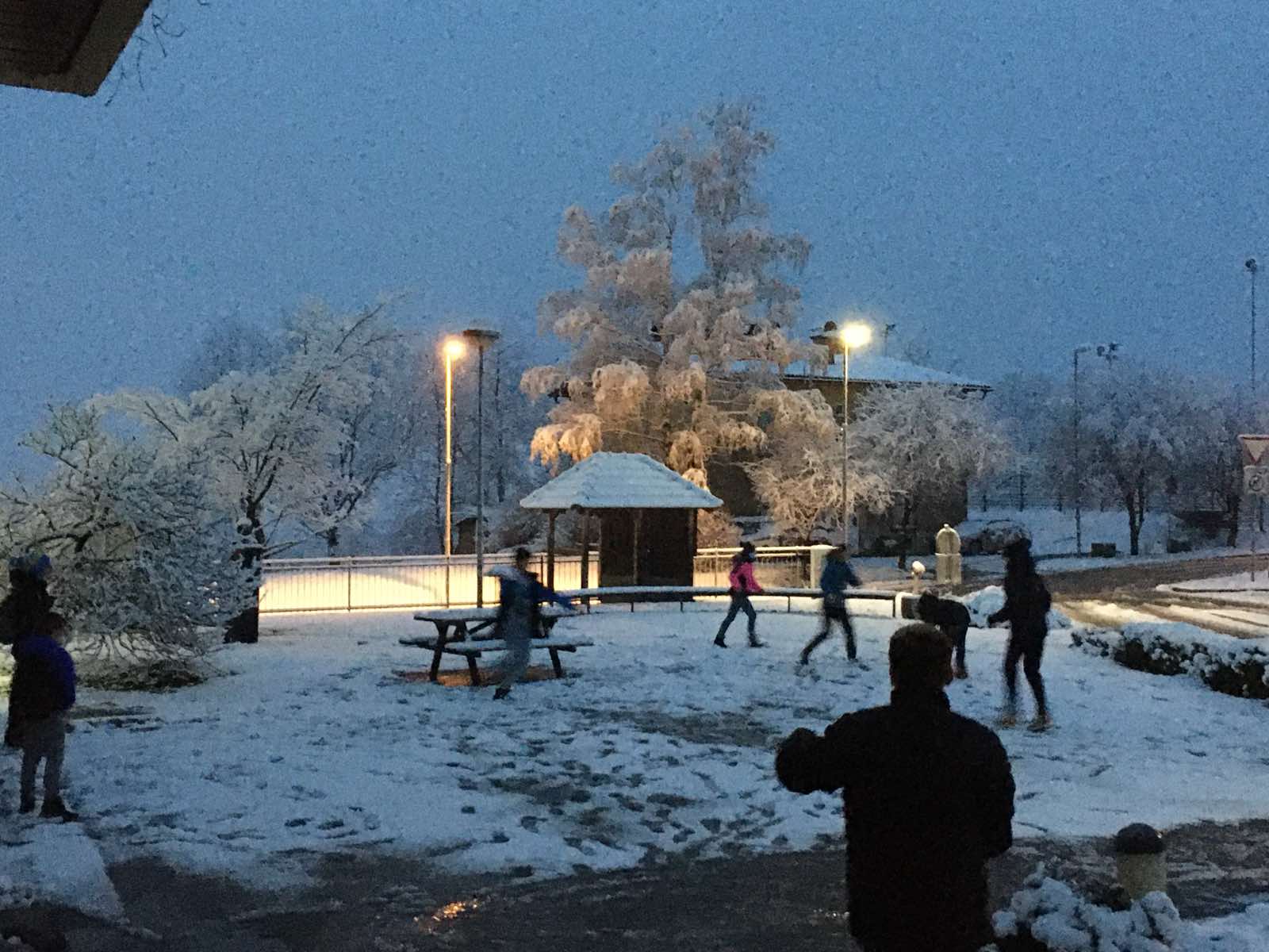 V ponedeljek smo se sedmošolci v domačem okolju zbudili v zasneženo jutro.
