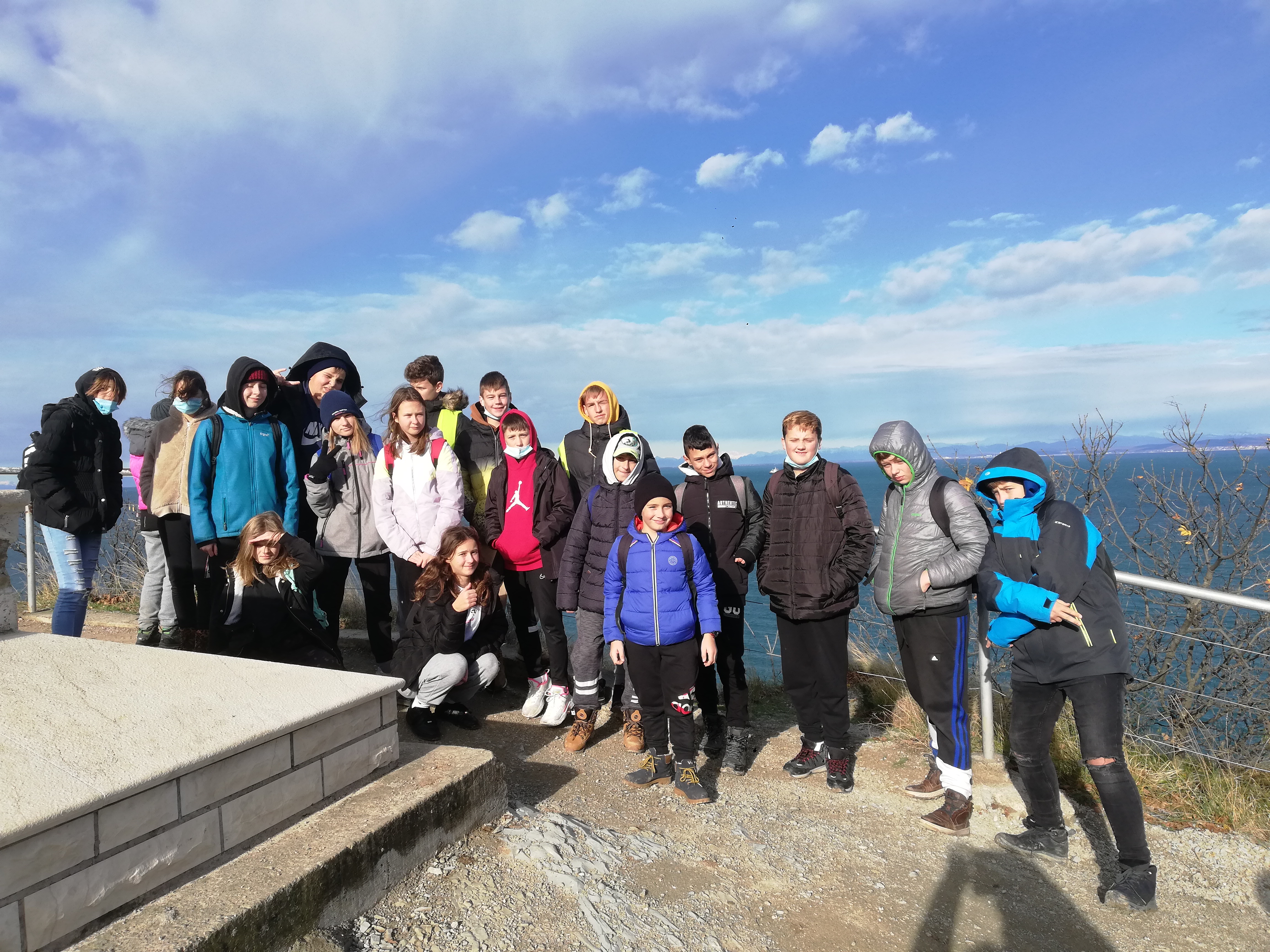 Čakal nas je še daljši pohod, tokrat smo izbrali smer proti Strunjanu. Ogledali smo si tamkajšnje soline in šli do Mesečevega zaliva. Obe znamenitosti sta del Krajinskega parka Strunjan. Sicer nas je večji del poti spremljala burja, vendar je bil razgled z vrha klifa kljub temu veličasten.