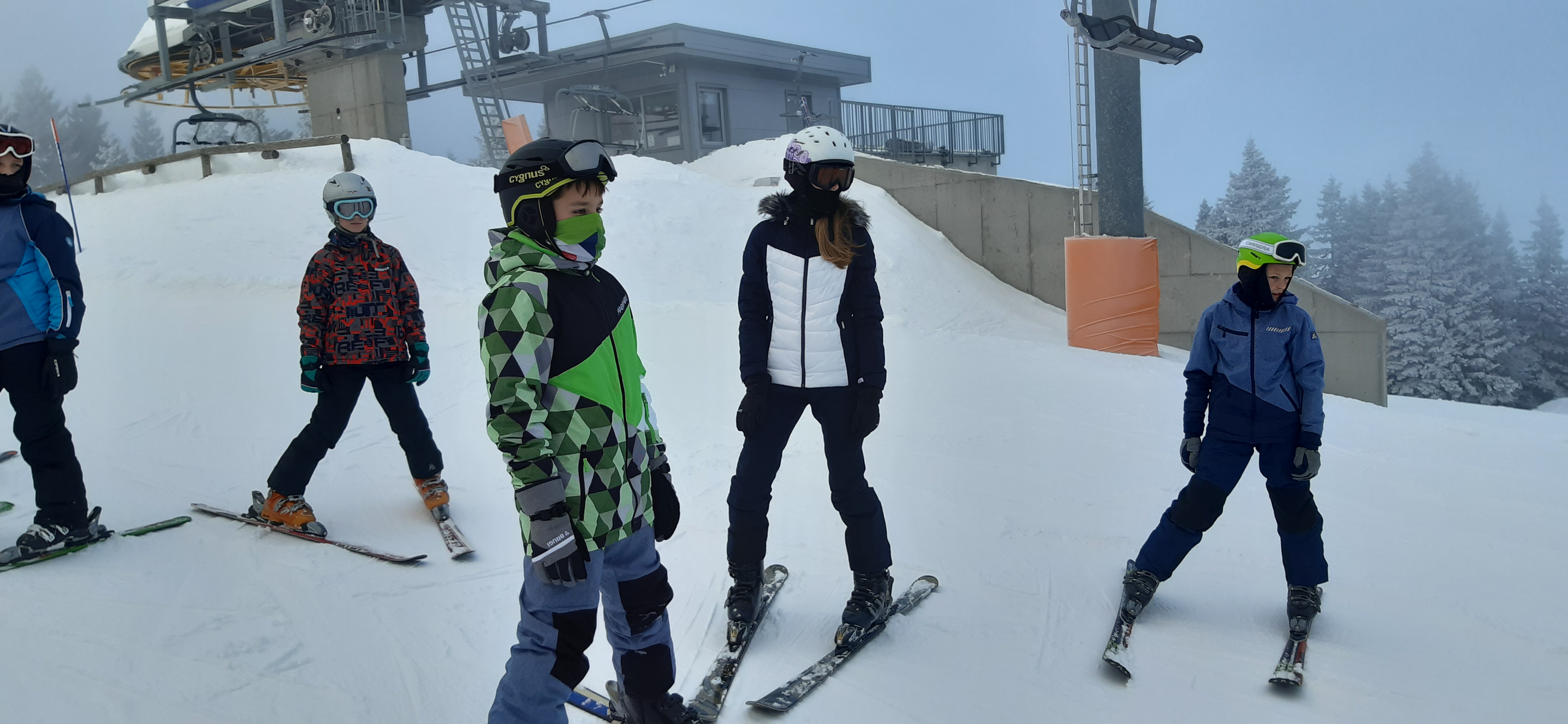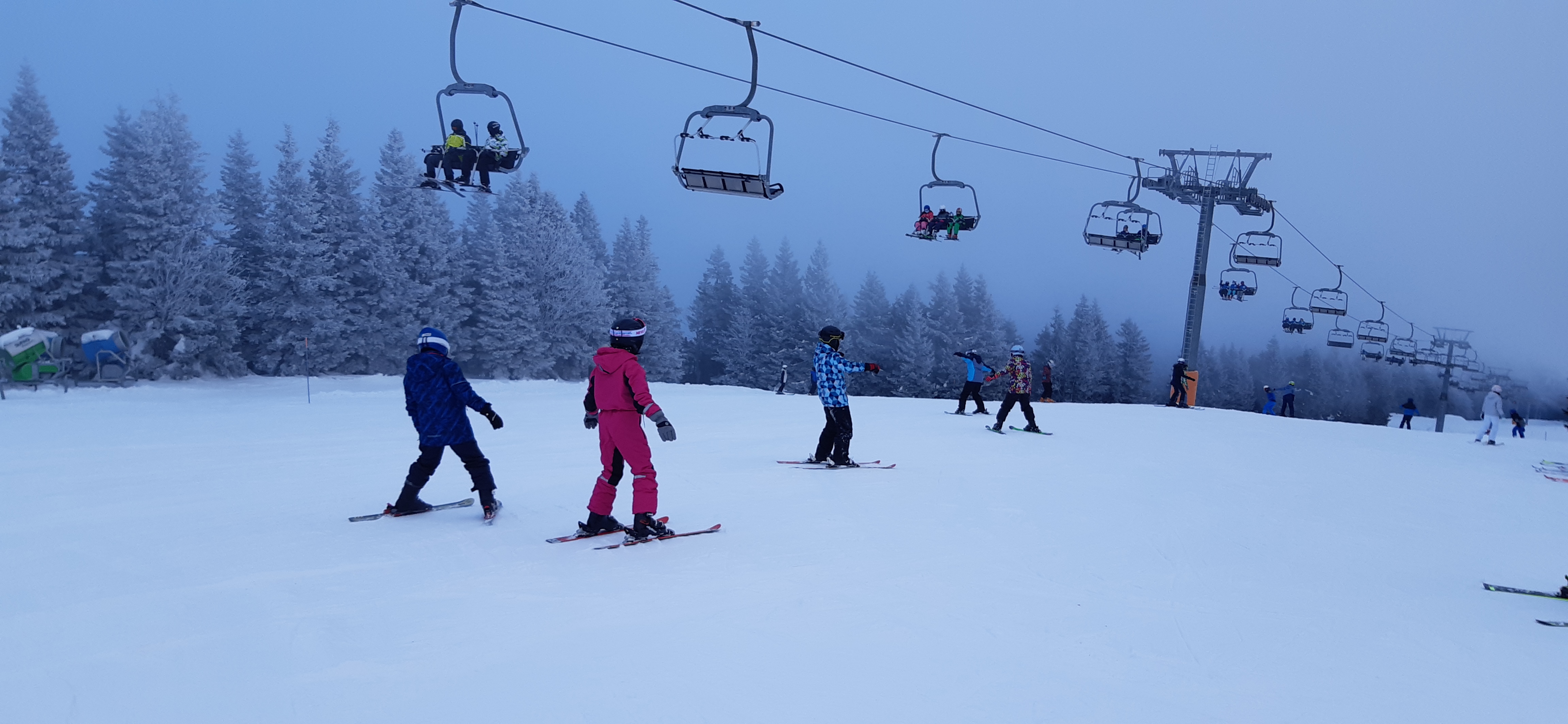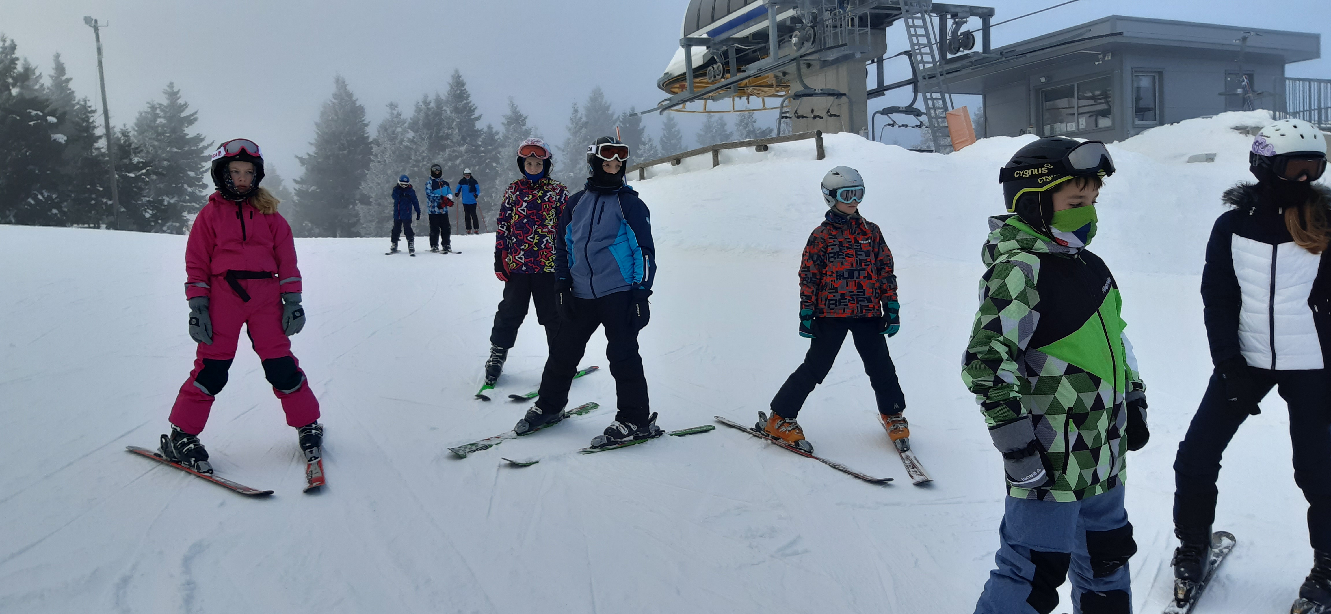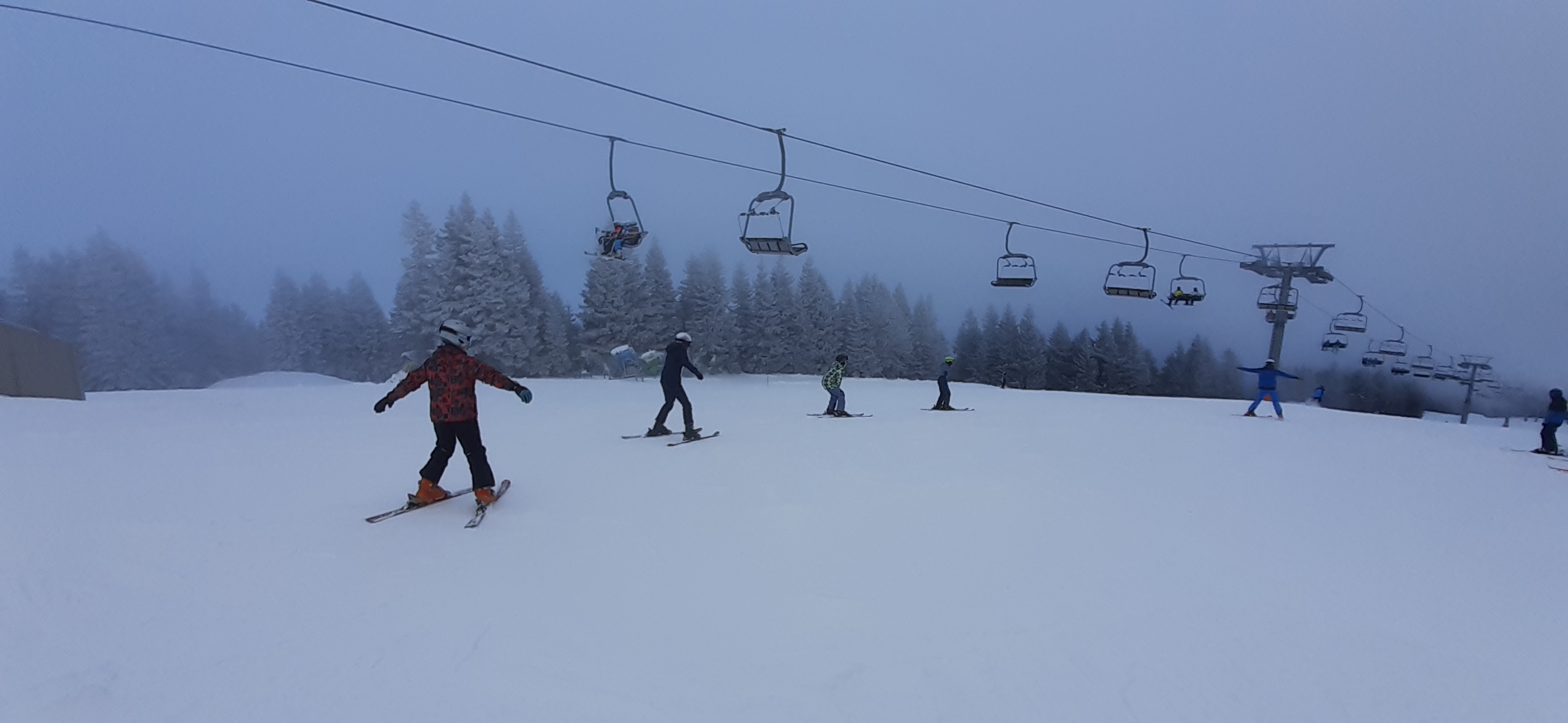 Danes so se že vsi učenci peljali s sedežnico in usvajali nove zavoje. Ker pridno poslušajo učitelje smučanja, so nekateri tudi napredovali v naslednjo zahtevnostno skupino.