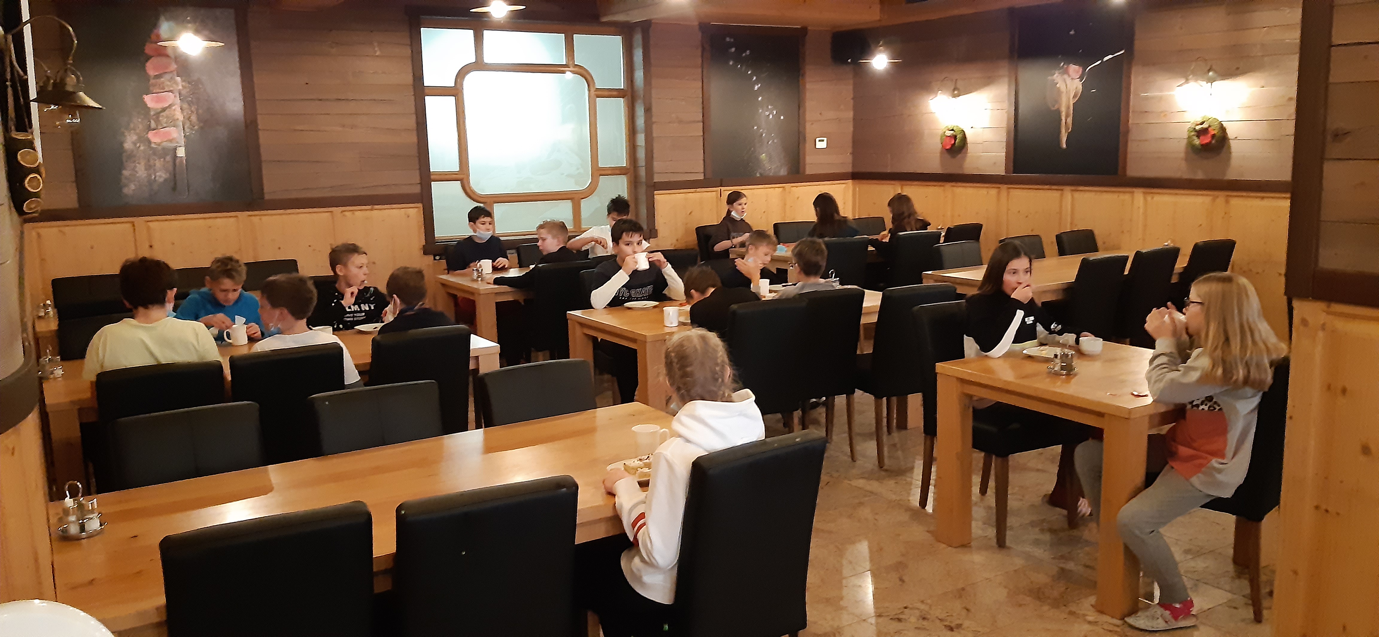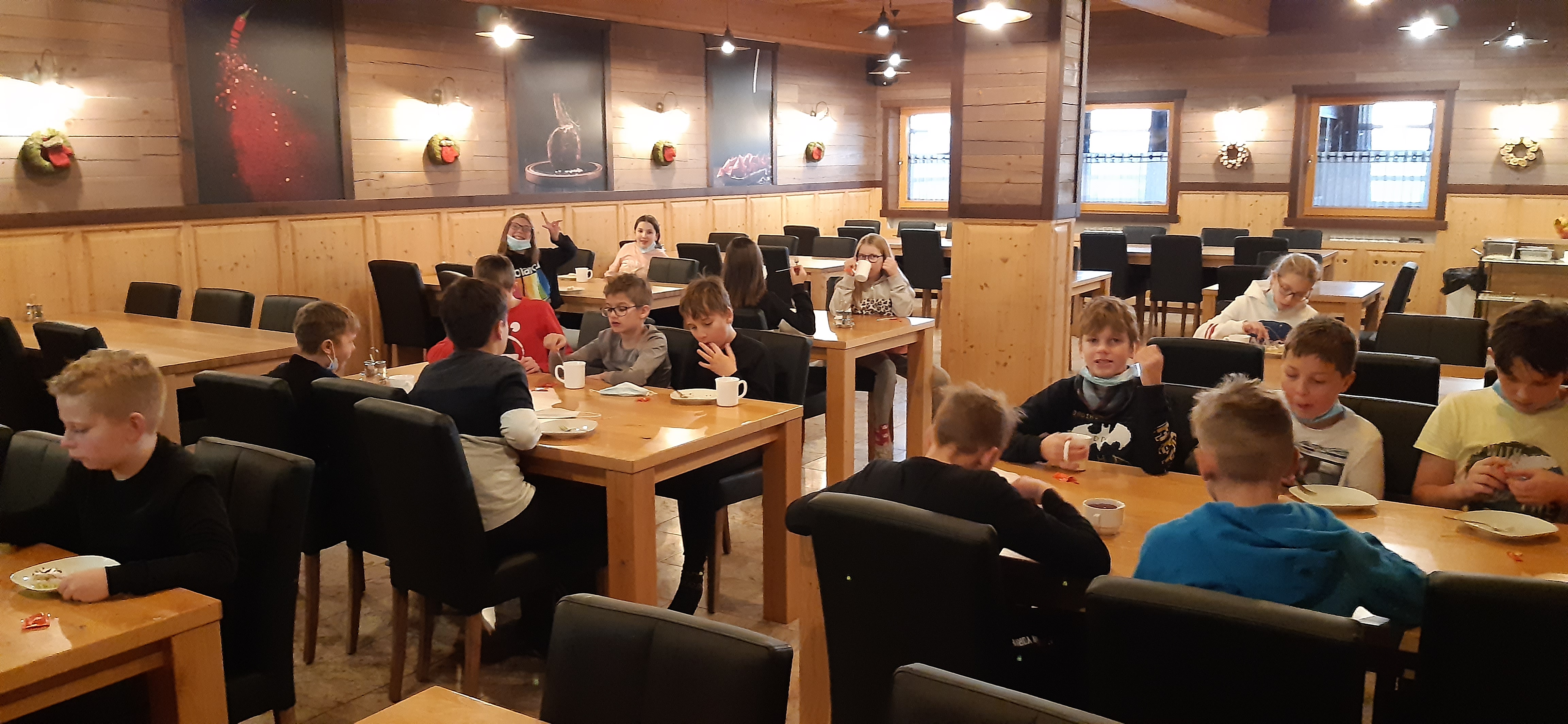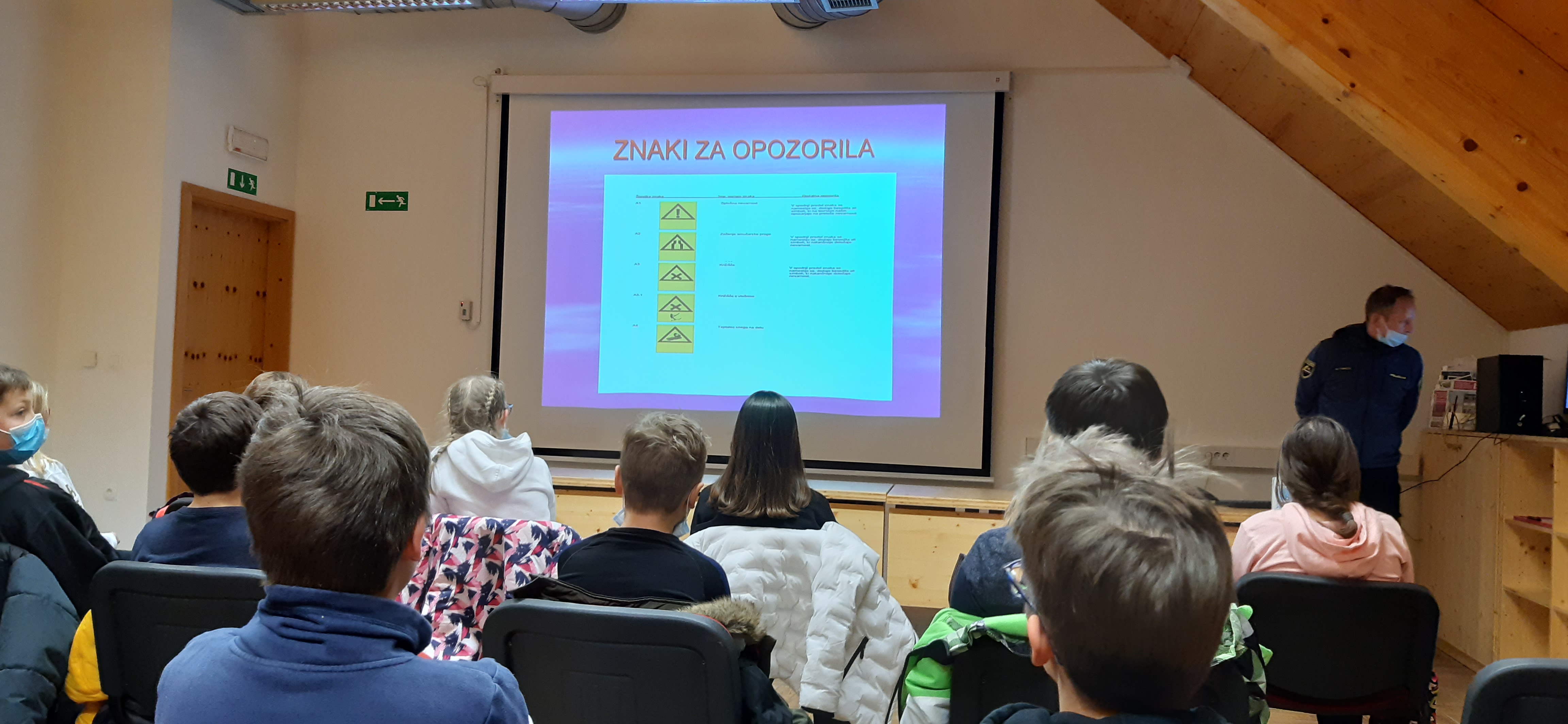 Po popoldanskem smučanju so se učenci udeležili predavanja policista smučarja (in gorskega reševalca), ki je kratko predstavil pravila smučanja in znake za nevarnost na smučarski progi.