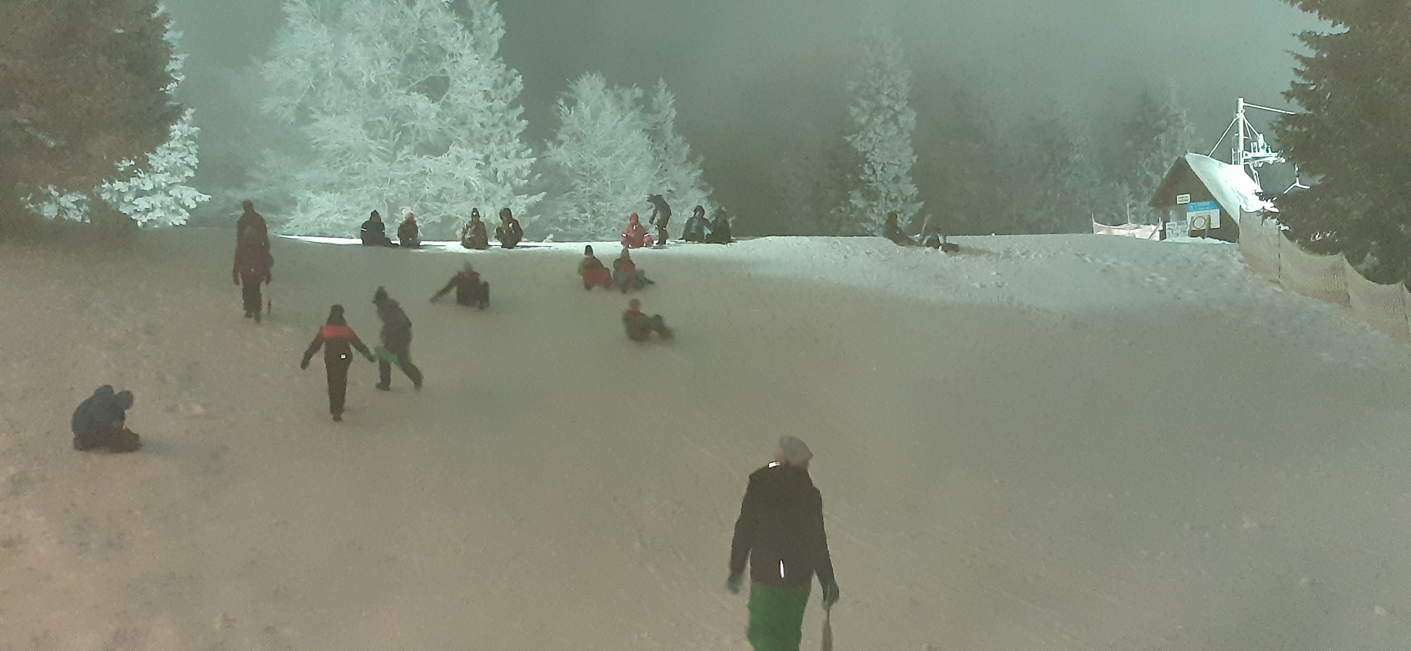 Večer pa so naši smučarji zaključili še s sankanjem.