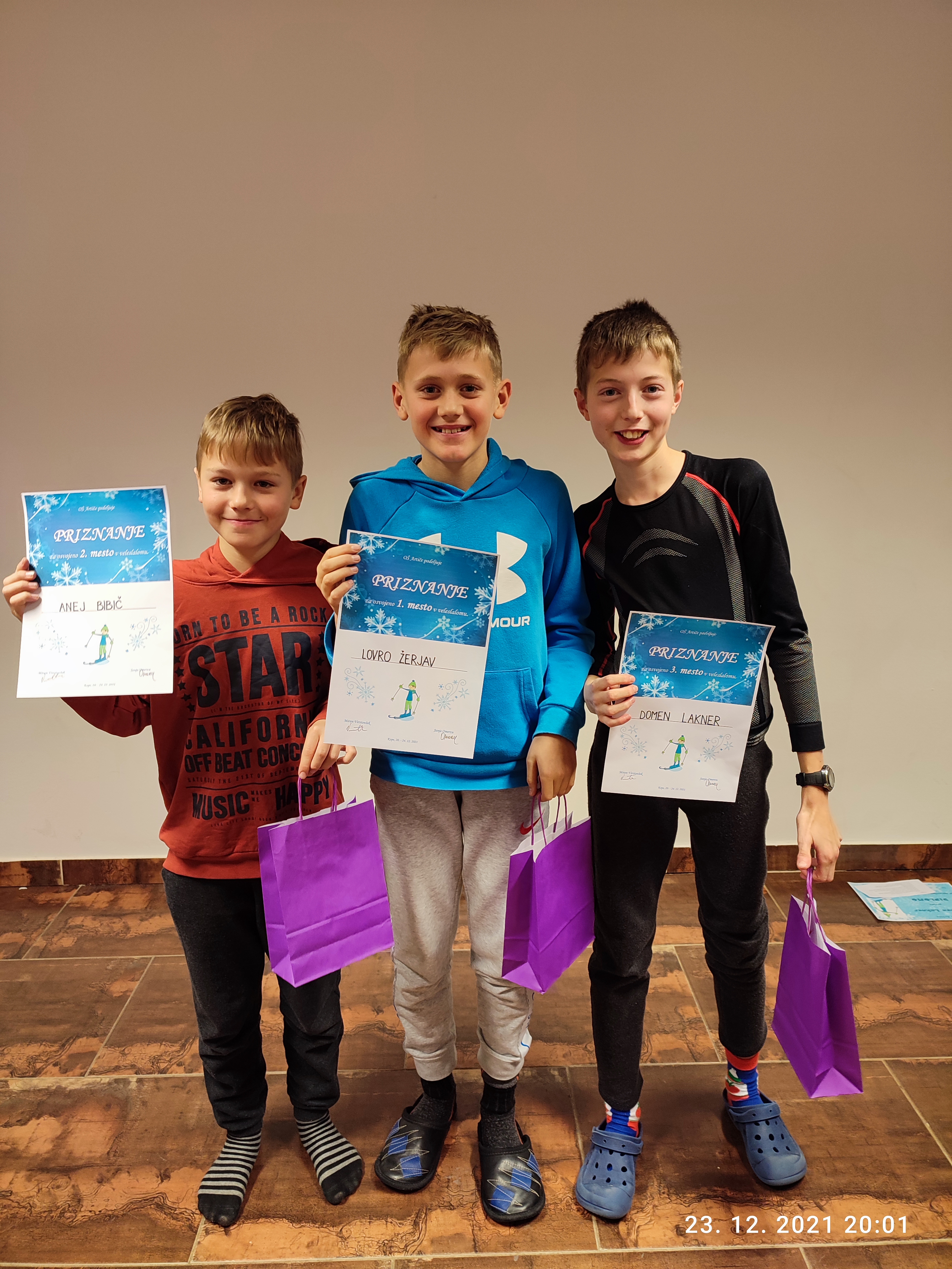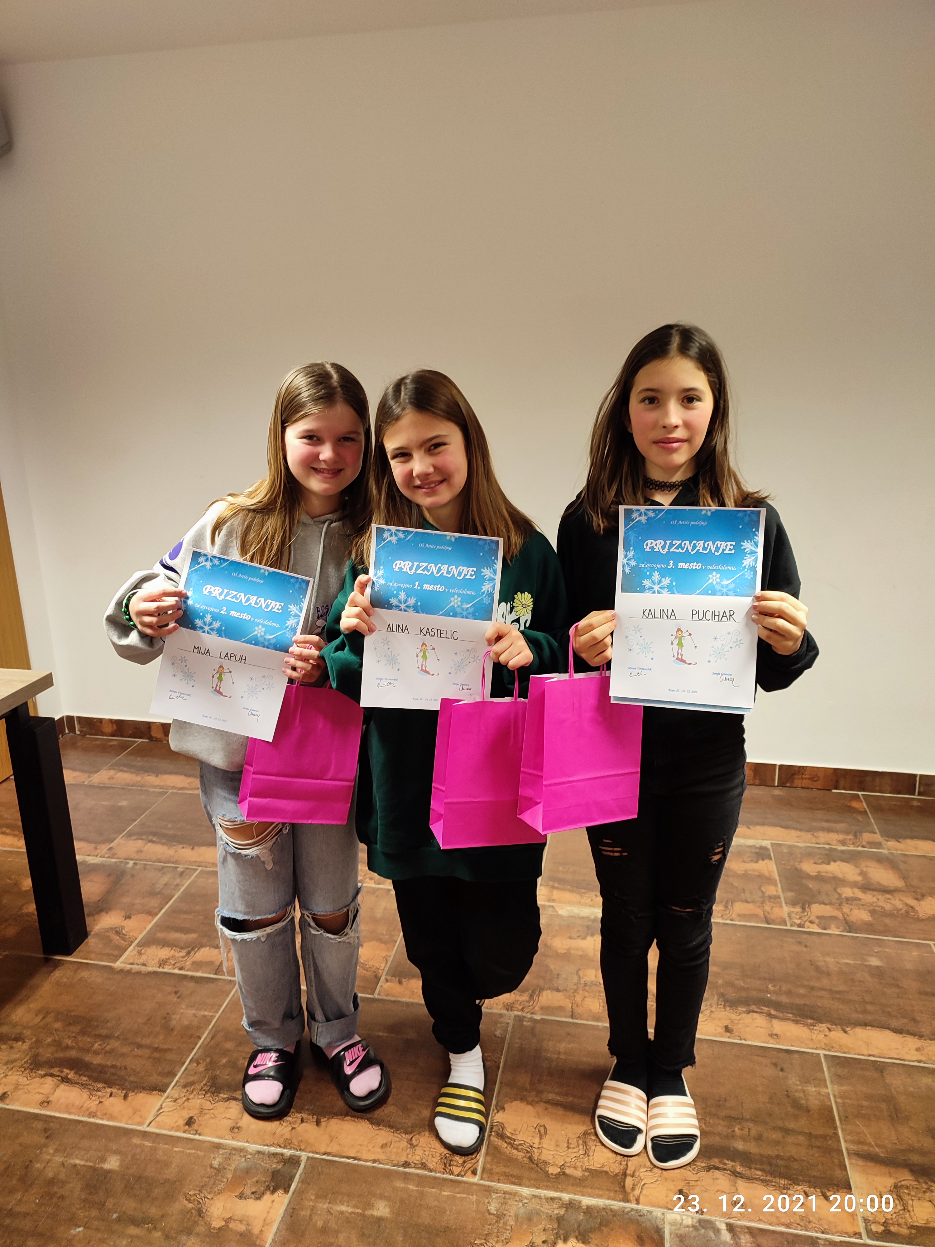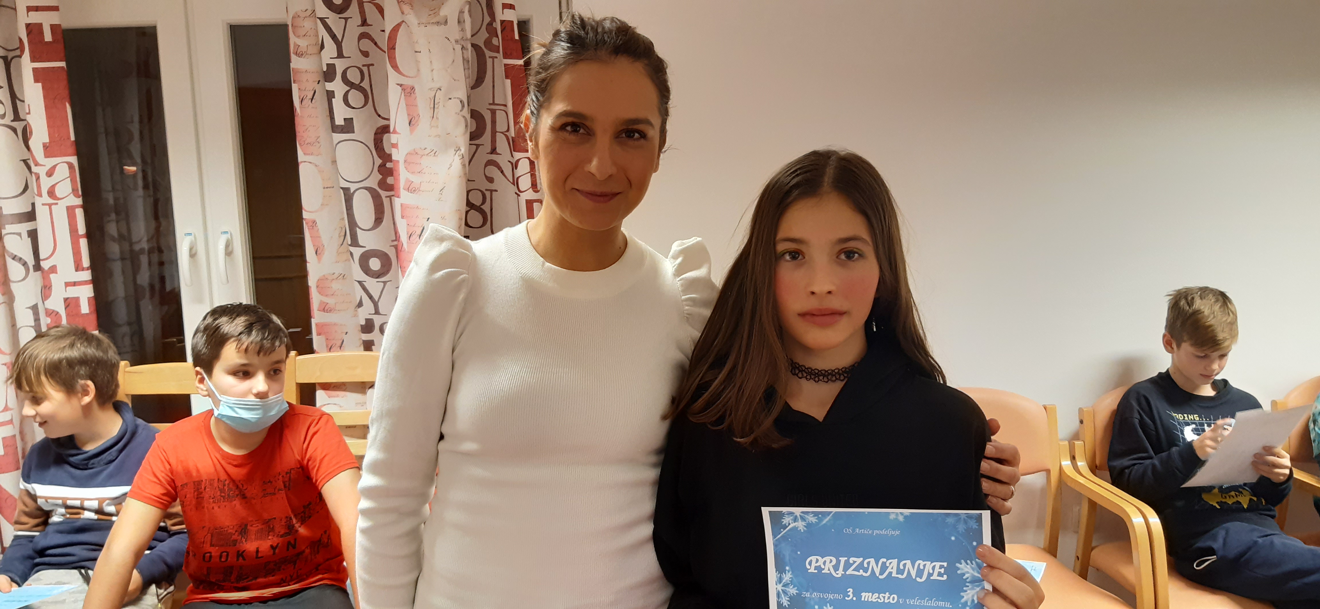 Sledila je razglasitev najboljših treh fantov in deklet v veleslalomu ter podelitev priznanj za najlepše urejeno sobo.