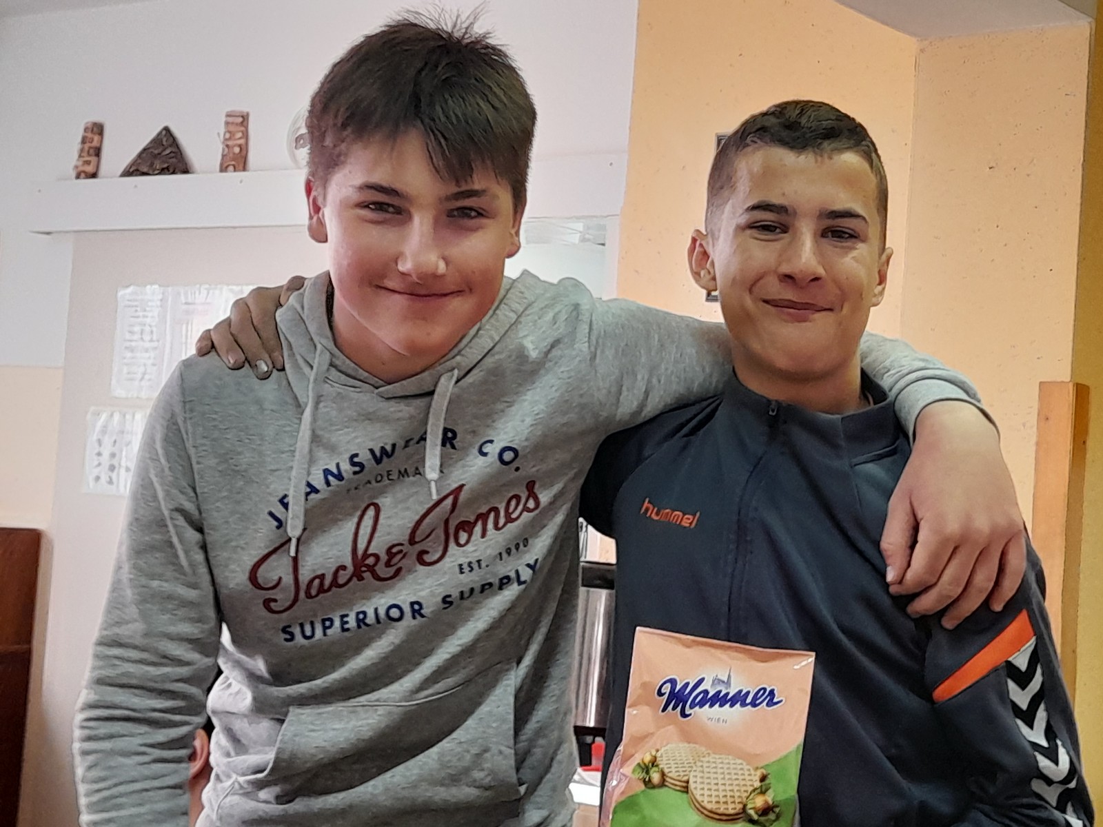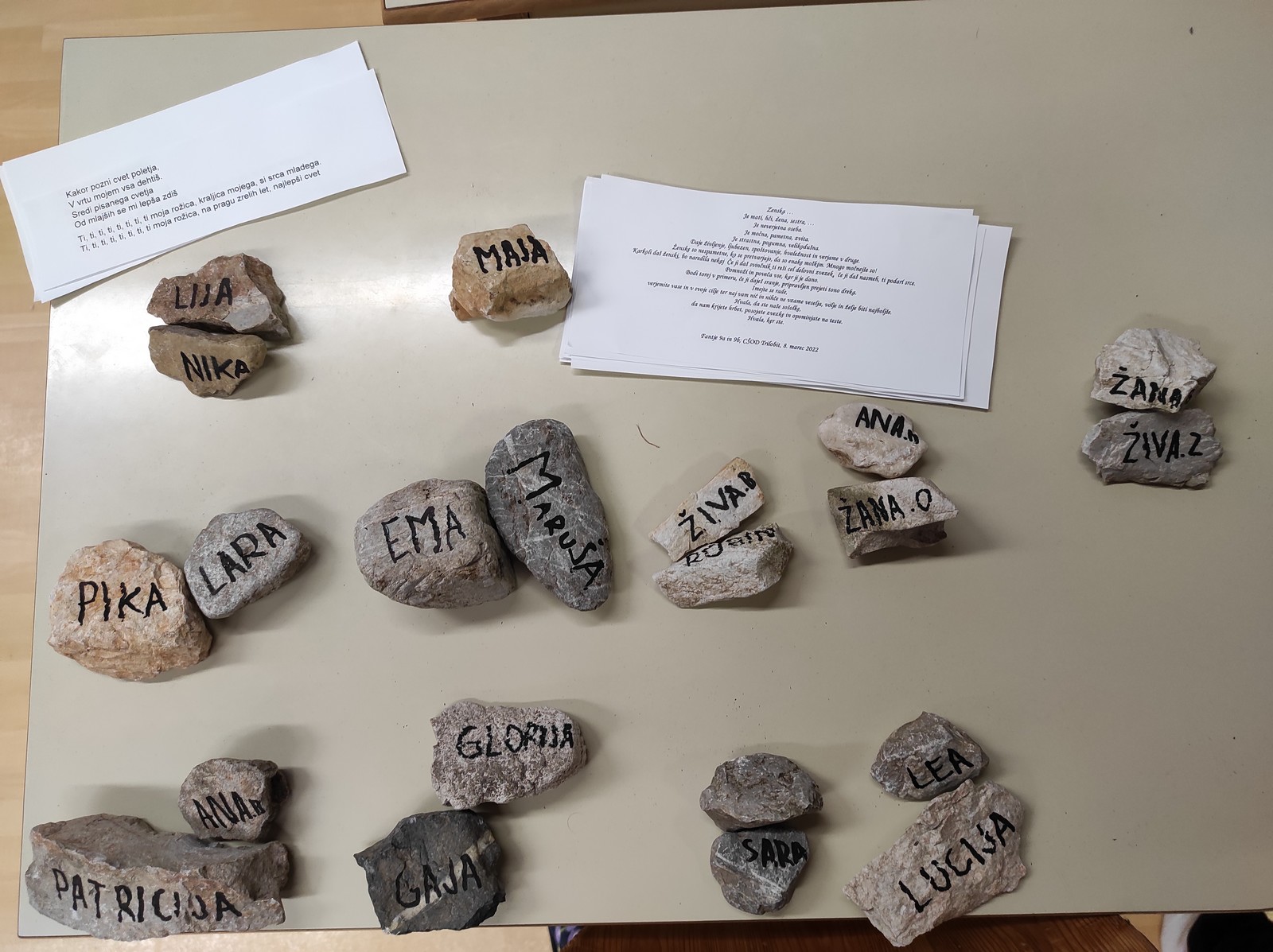 Ob dnevu žena pa so nam fantje pripravili prijetno presenečenje - nam zapeli in nam podarili kamen v spomin.