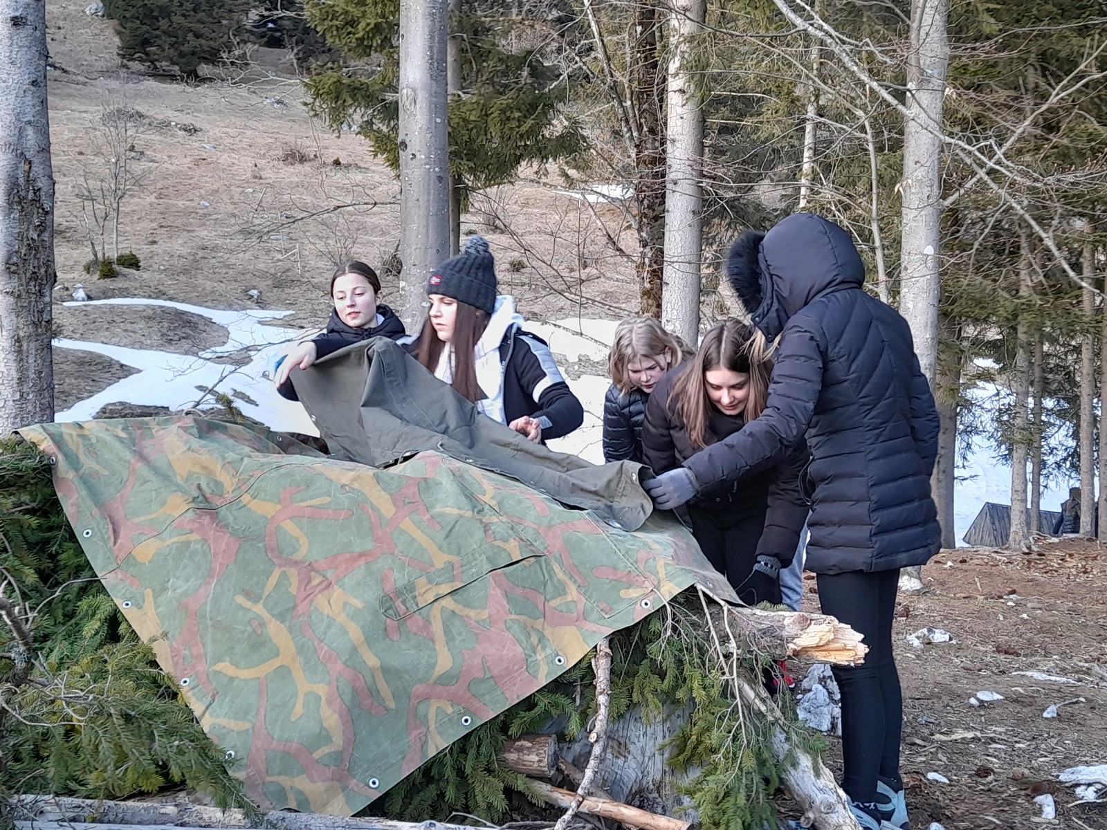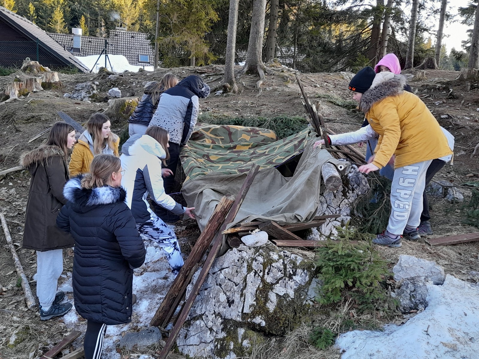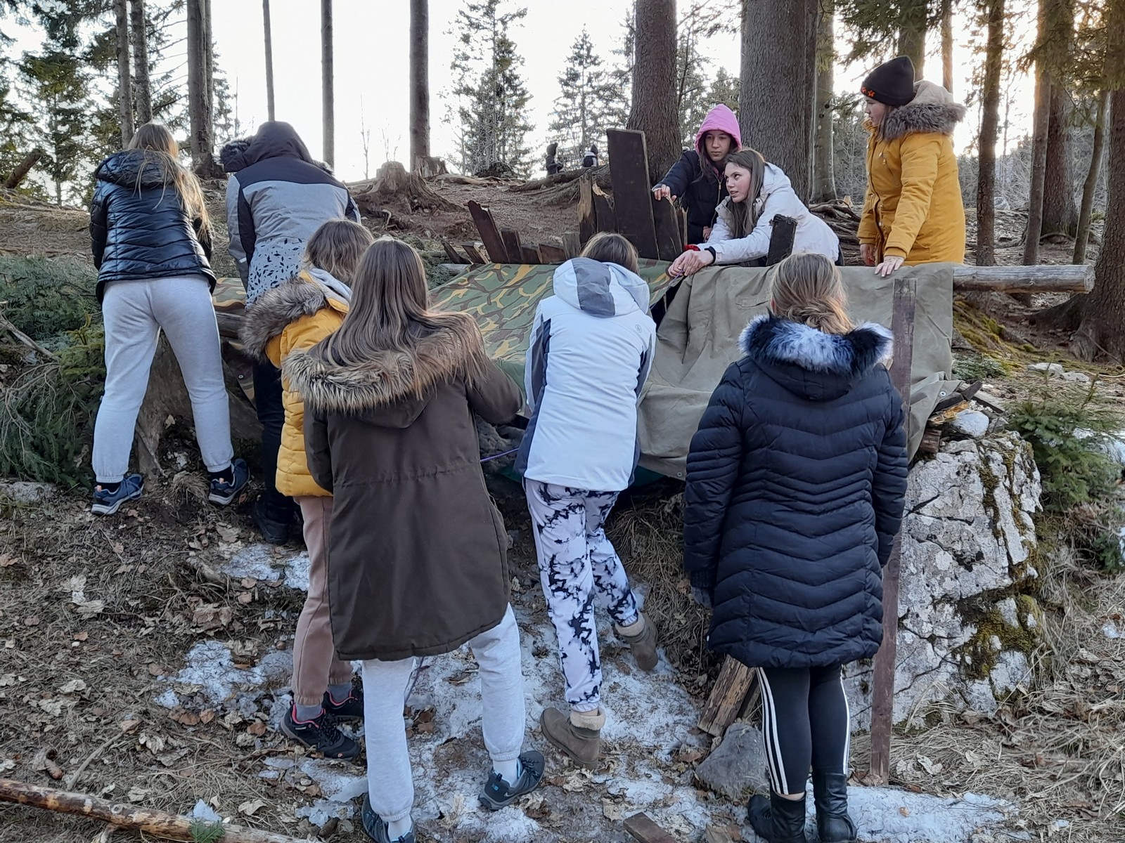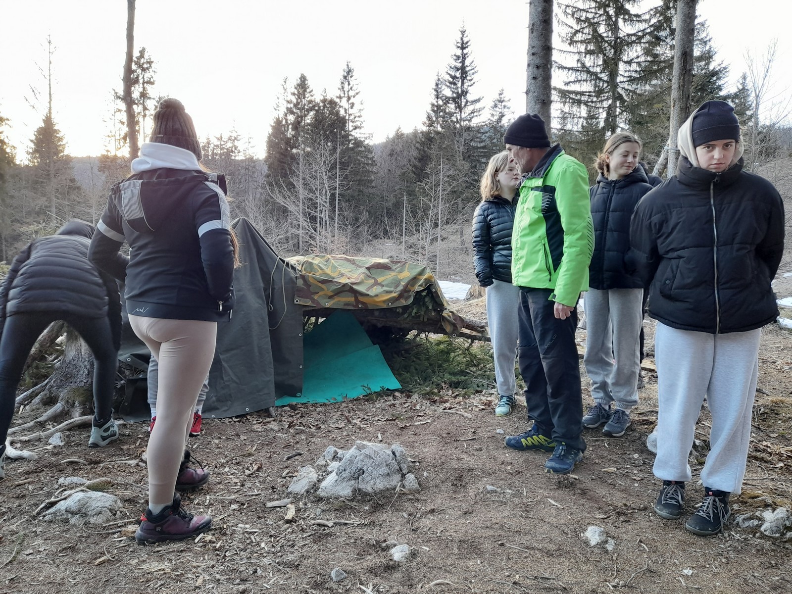 Uživali smo v nalogi, pri kateri smo morali iz najdenega materiala sami izdelati bivake.