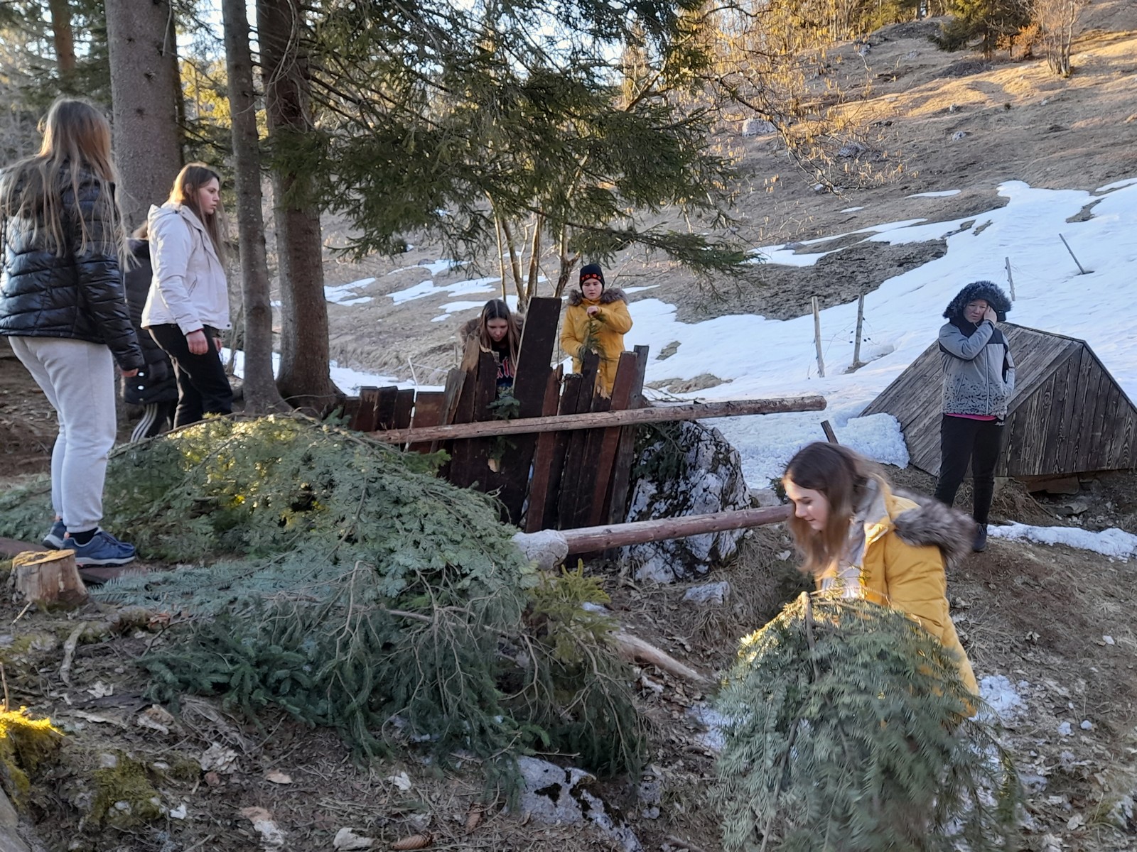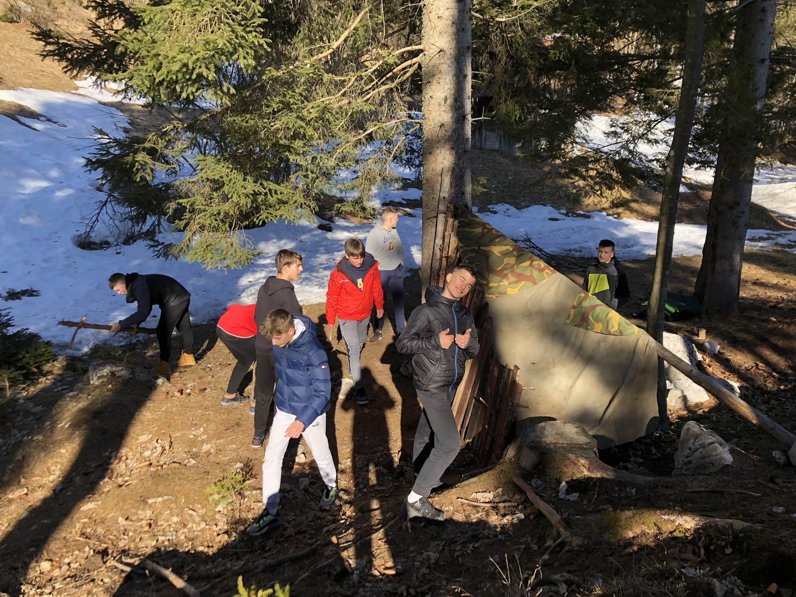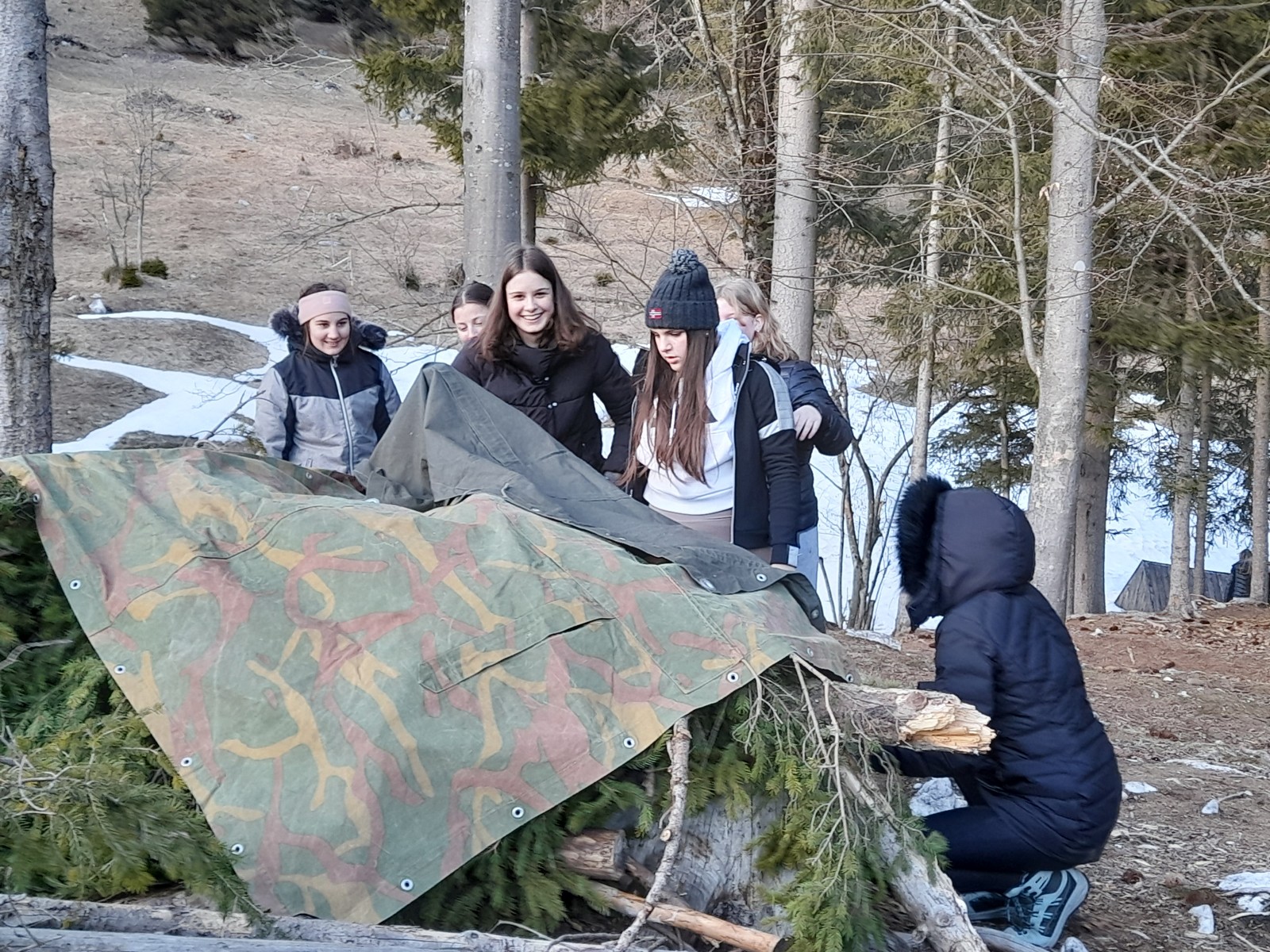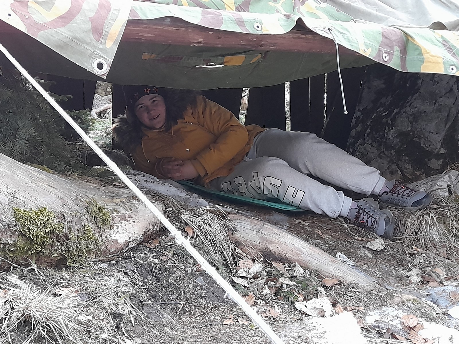 Uživali smo v nalogi, pri kateri smo morali iz najdenega materiala sami izdelati bivake.