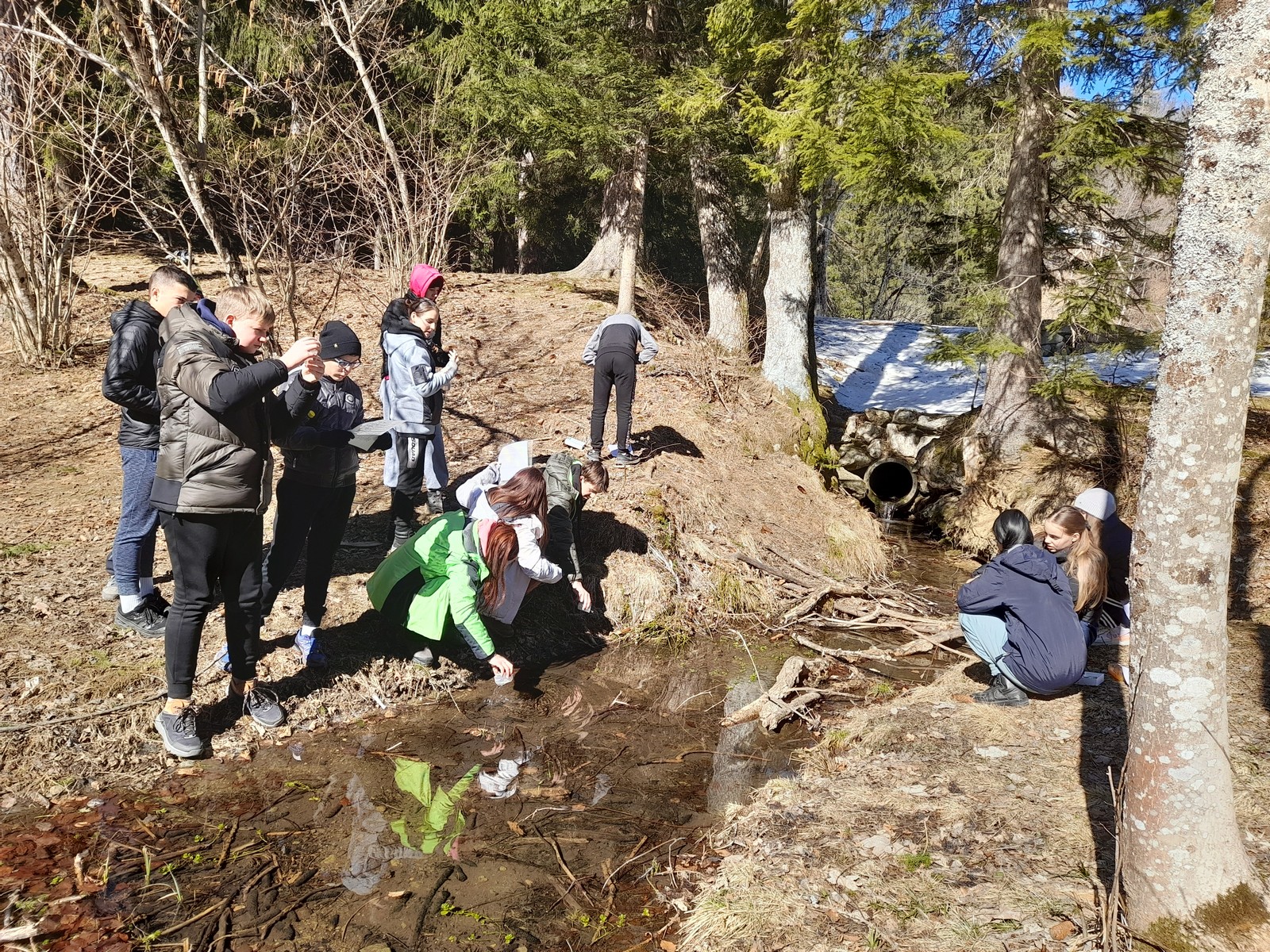 Ustavili smo se na posestvu Pristava, ki je bilo včasih v lasti barona Žige Zoisa. Tam smo raziskovali kemijske lastnosti vode in vodne živali v potoku.