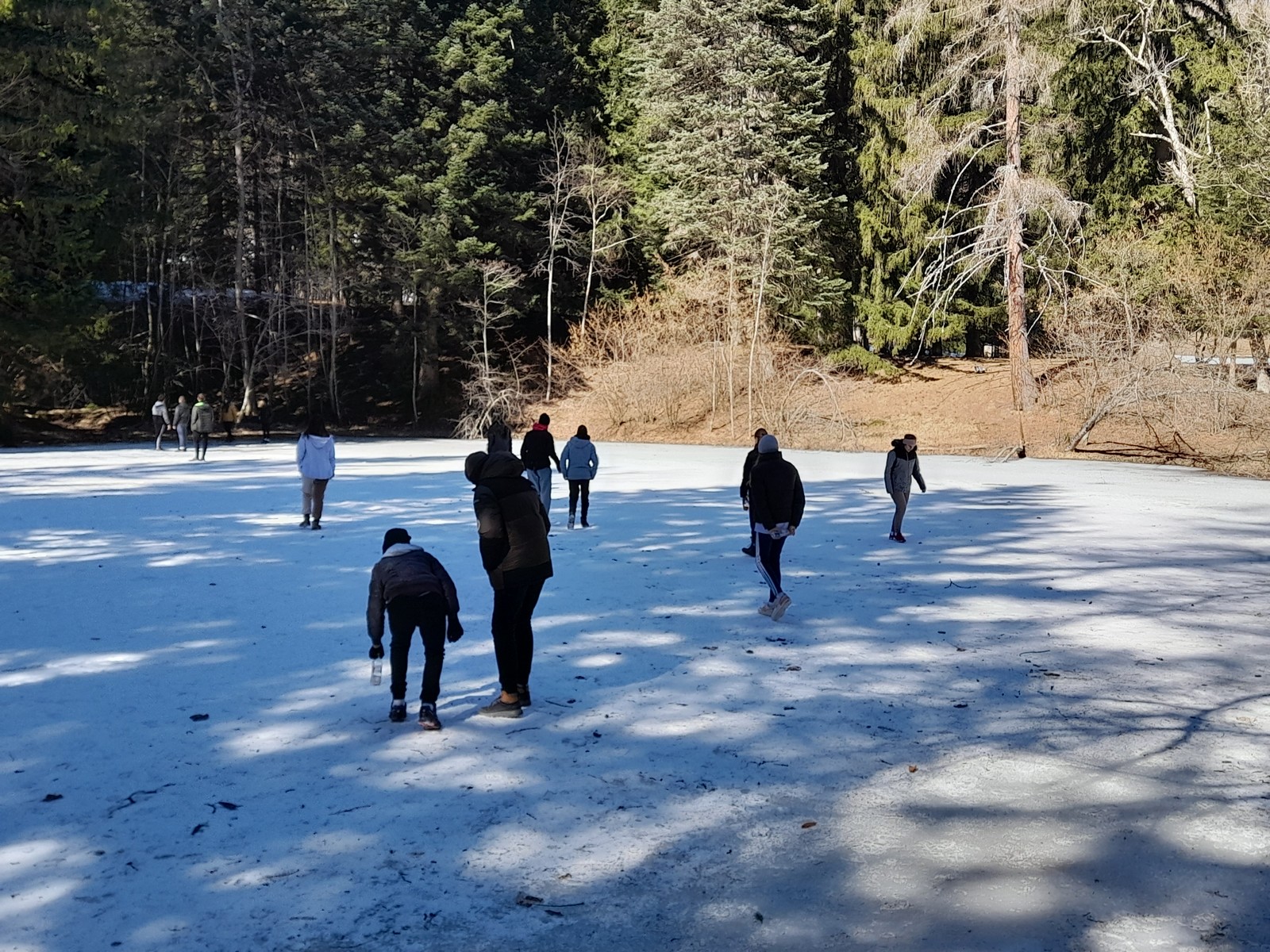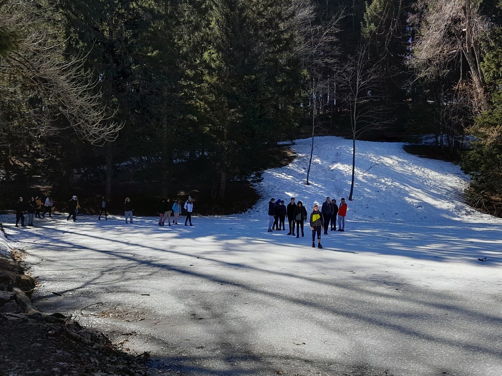 Med odmorom smo se drsali po zaledenelem jezeru.