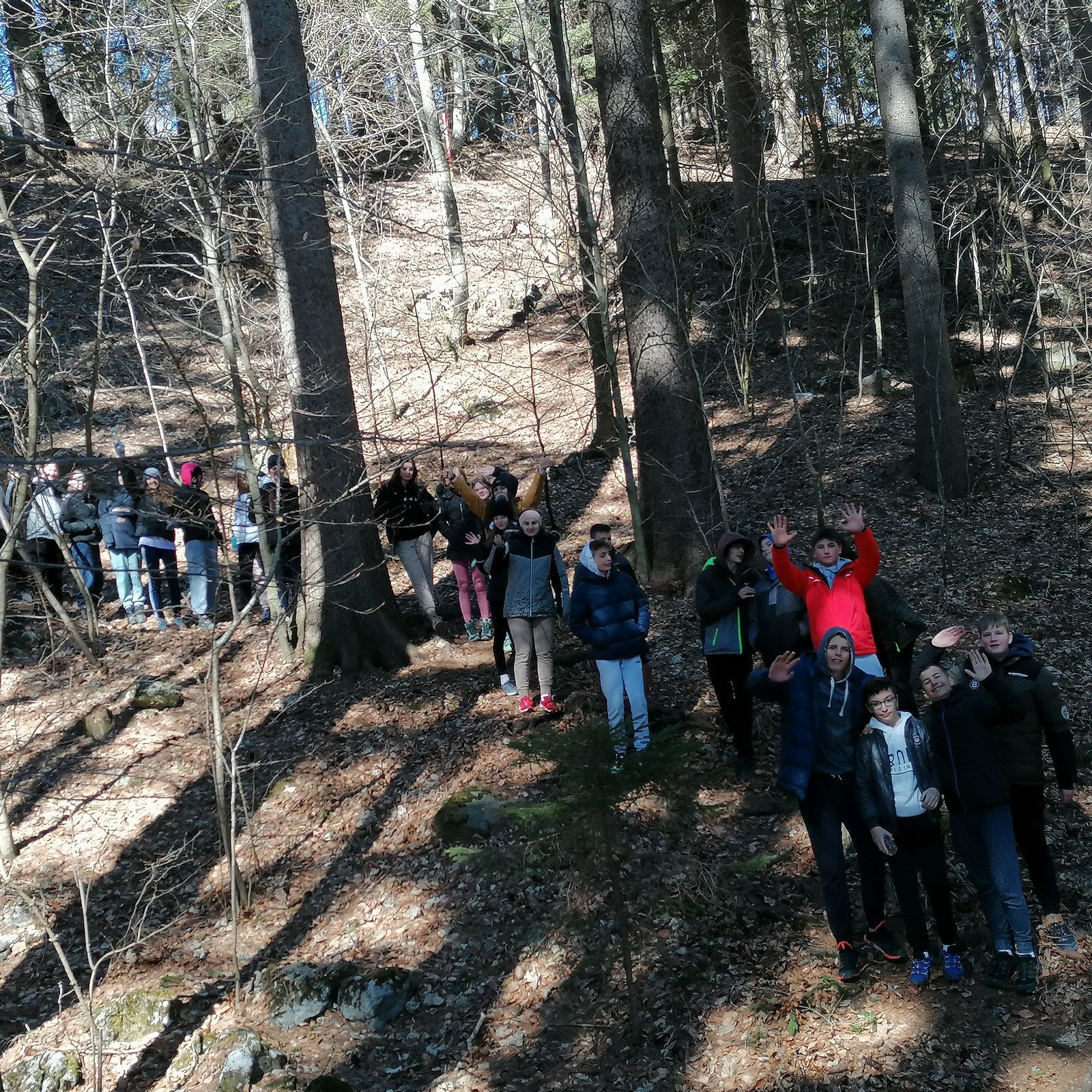 Danes zjutraj smo se naši navihani 9. a in 9. b odpravili na dolg pohod.
