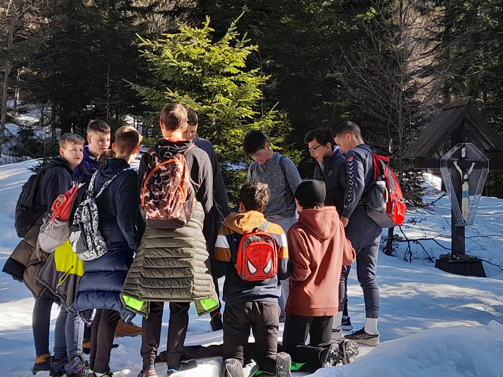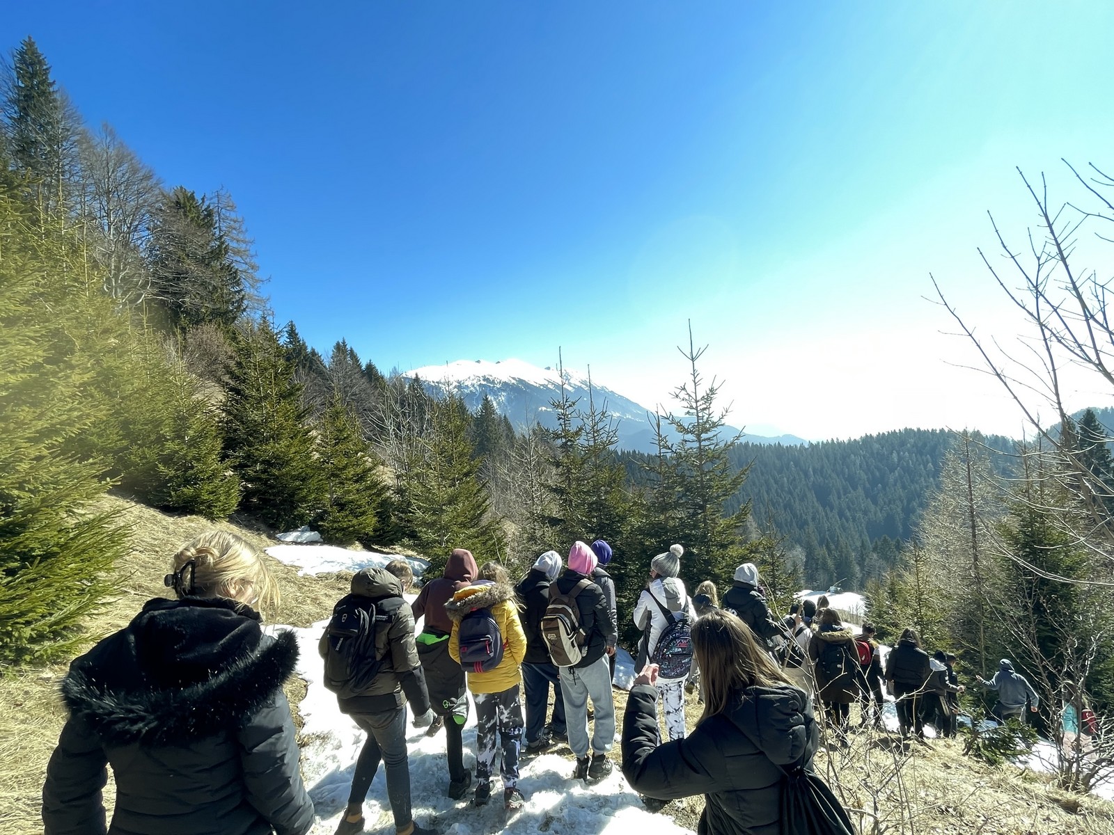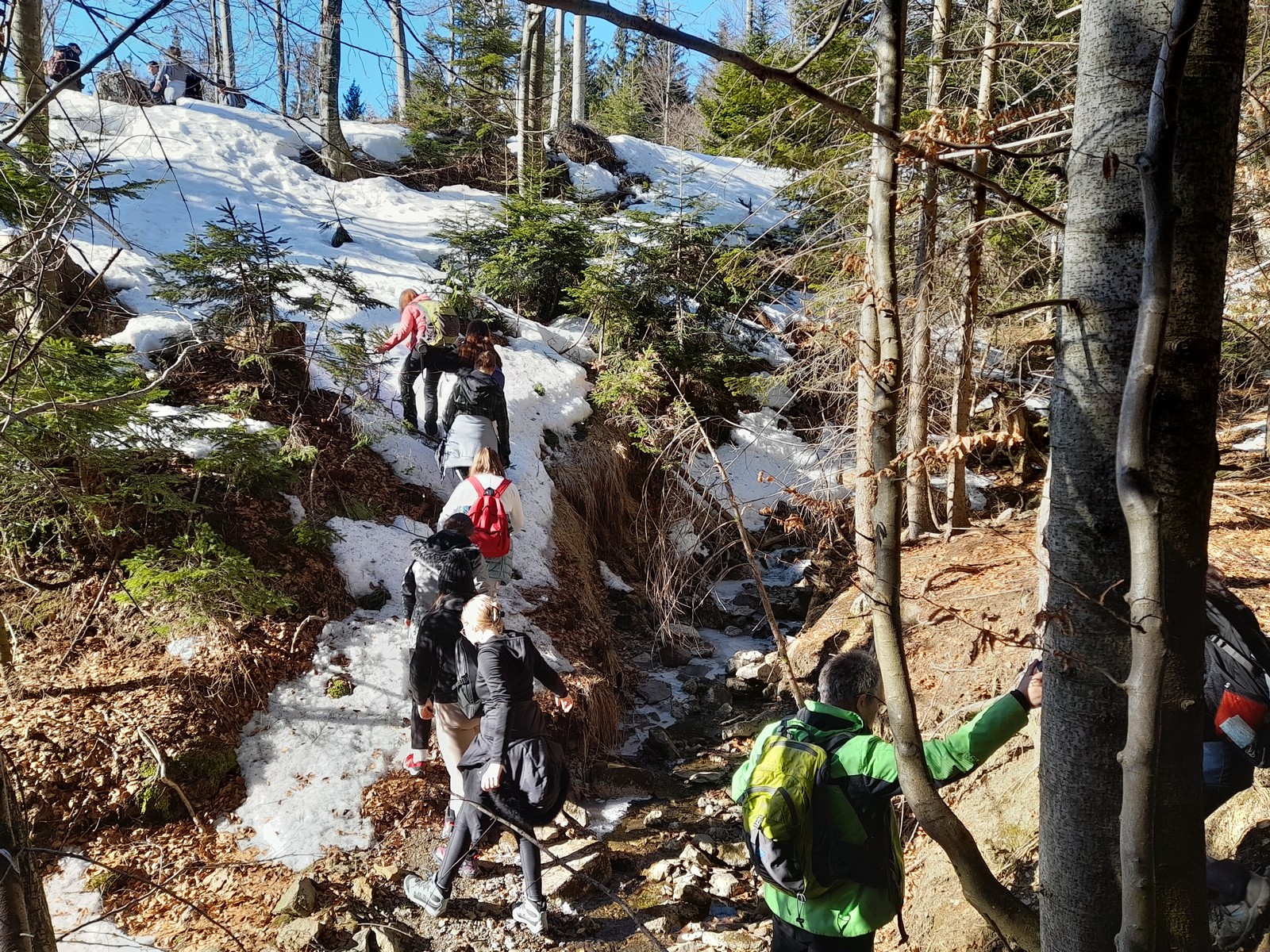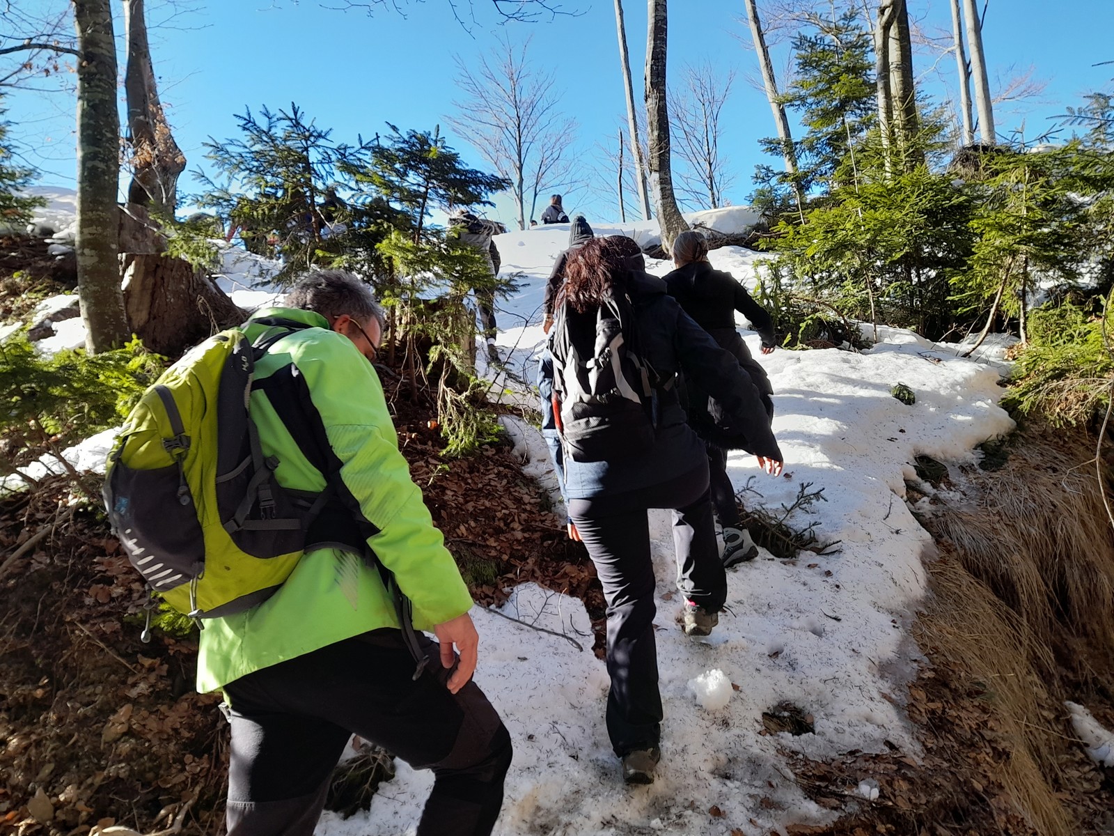 Pot do vrha je bila zasnežena, zaledenela, blatna. Vseeno smo suvereno premagali vse ovire na poti. Ko smo prišli na vrh, smo pomalicali in uživali v razgledu.