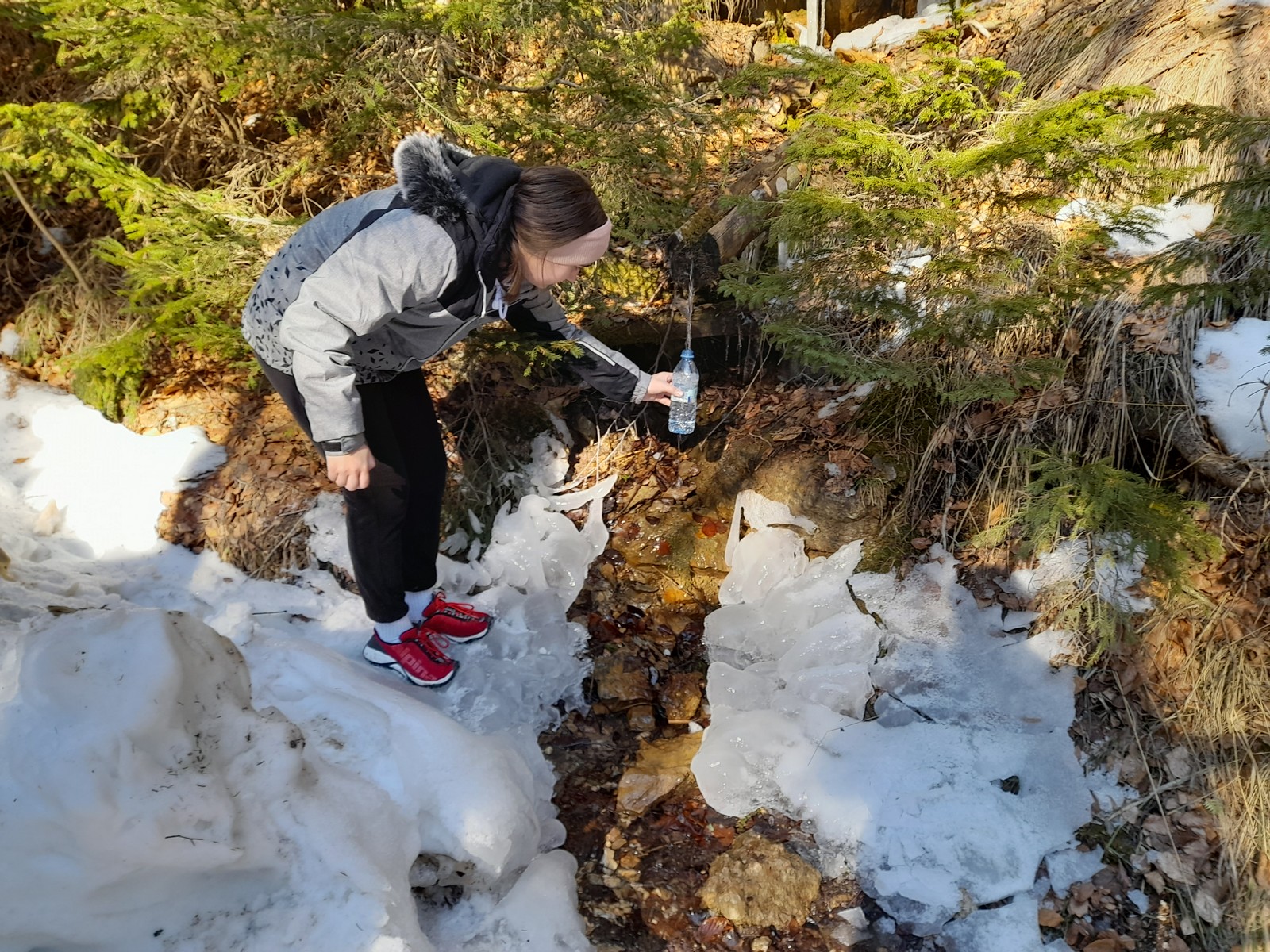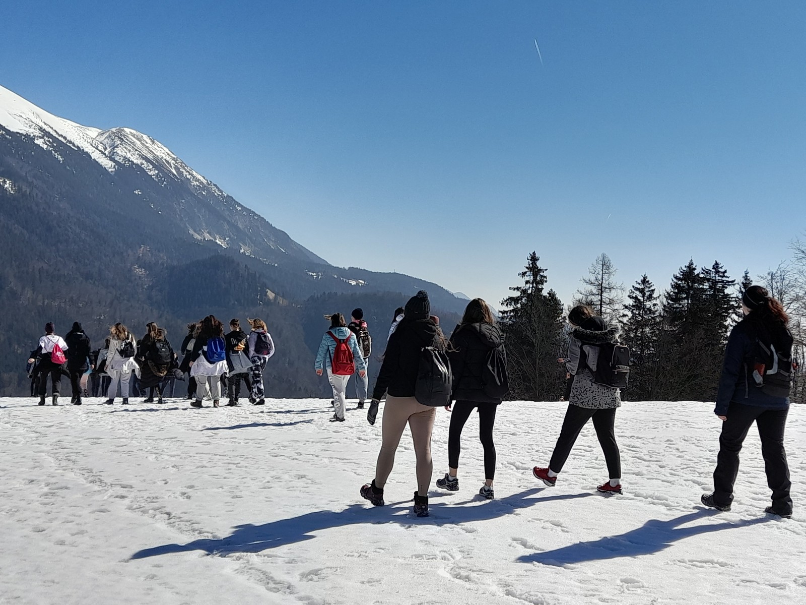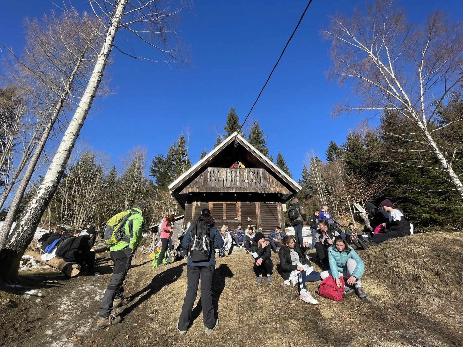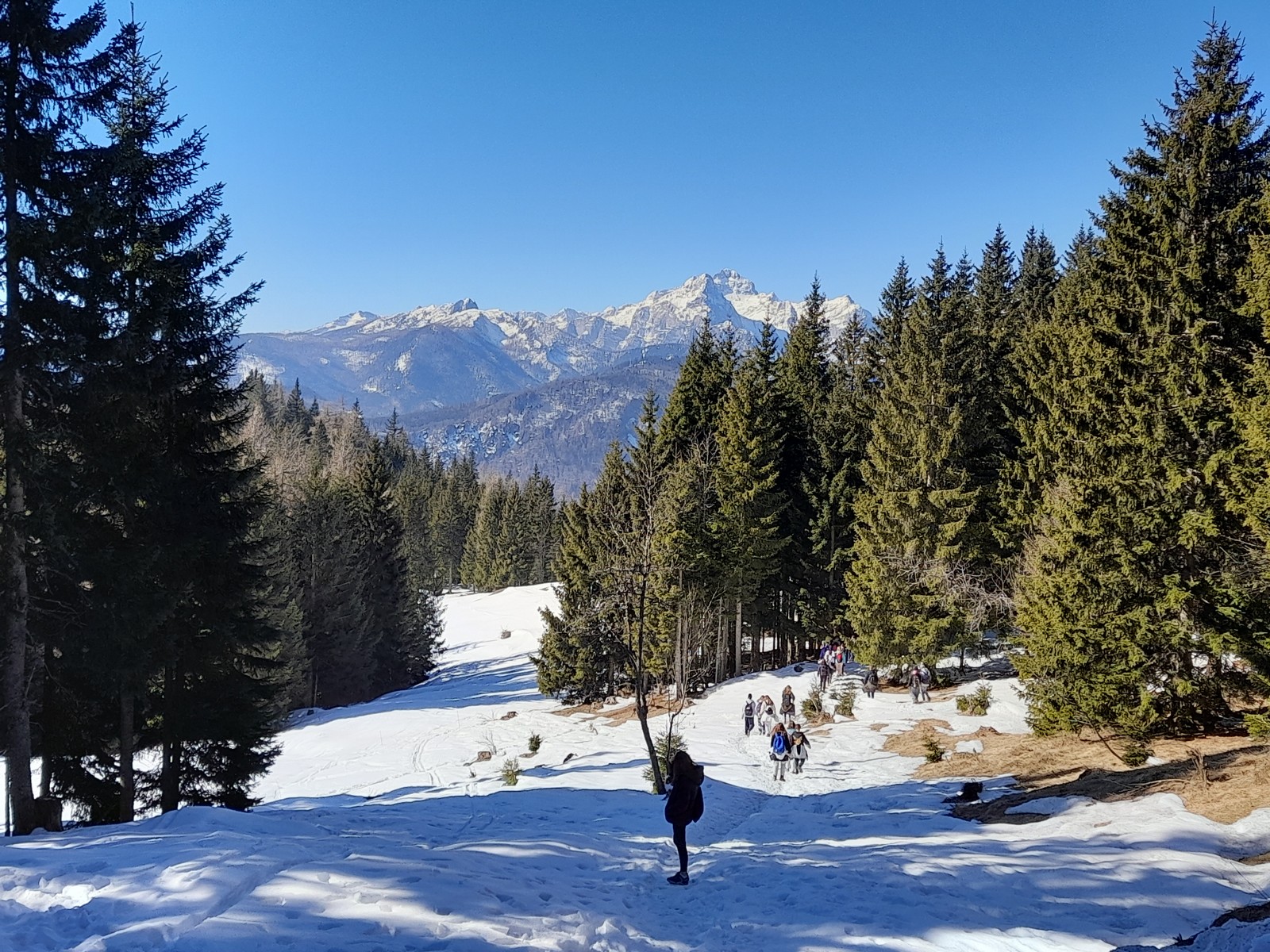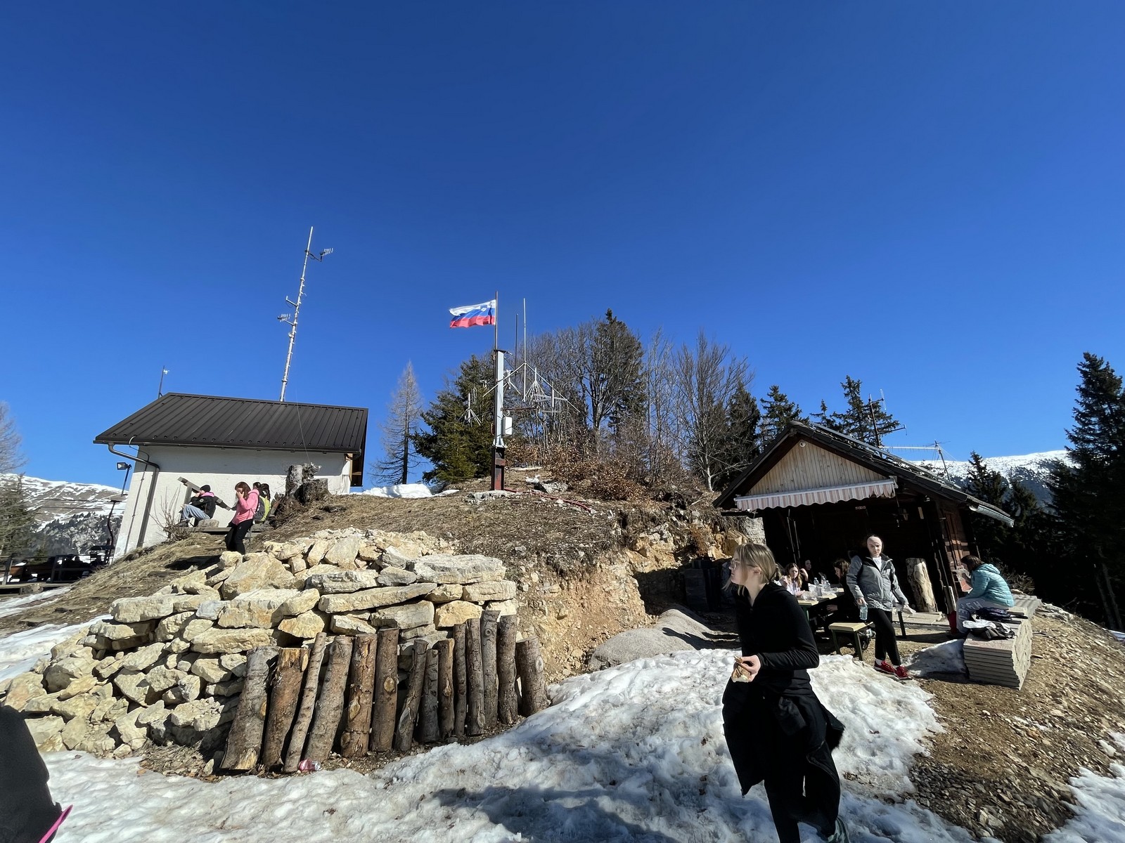 Pot do vrha je bila zasnežena, zaledenela, blatna. Vseeno smo suvereno premagali vse ovire na poti. Ko smo prišli na vrh, smo pomalicali in uživali v razgledu.