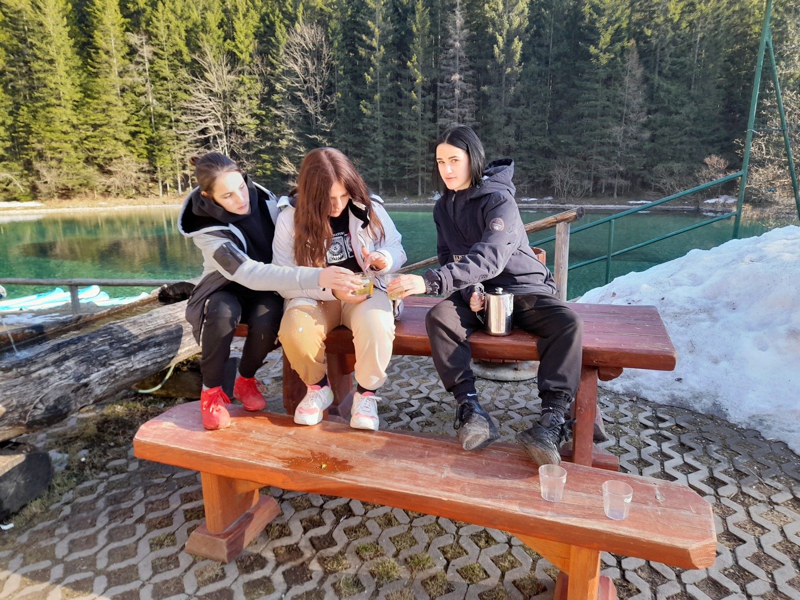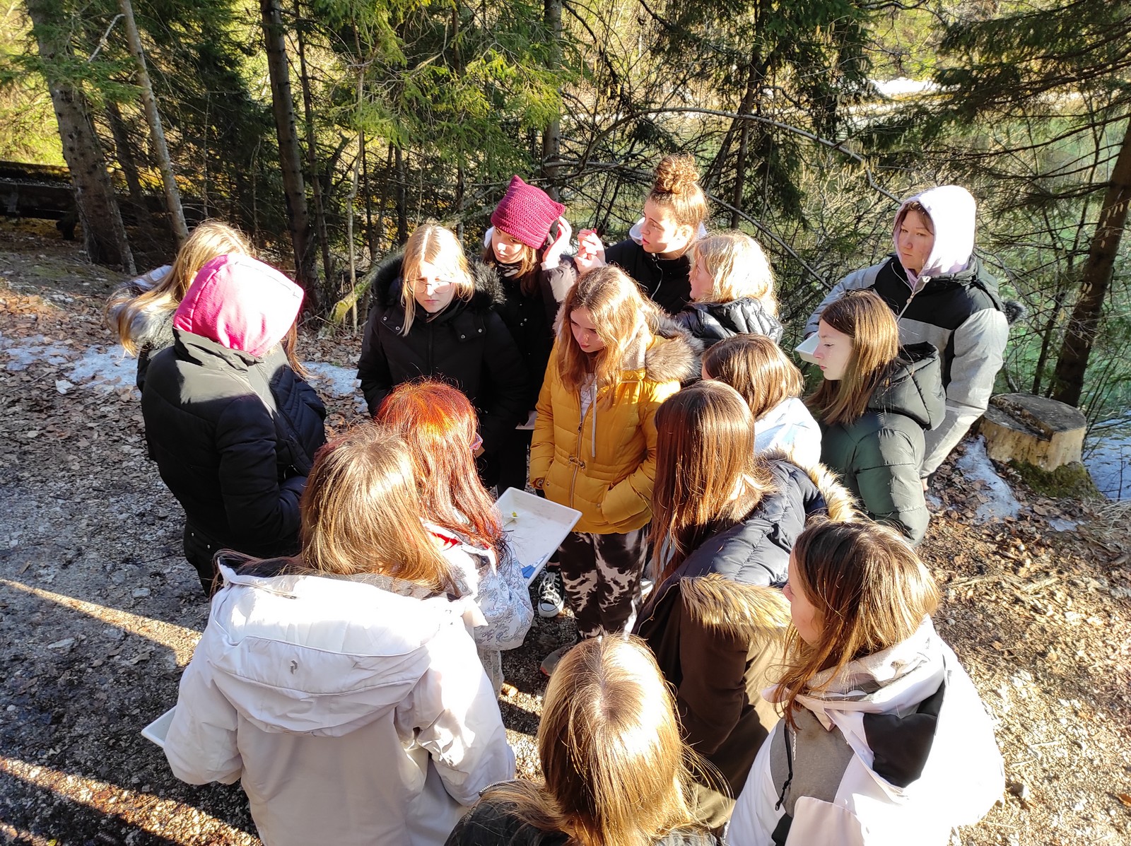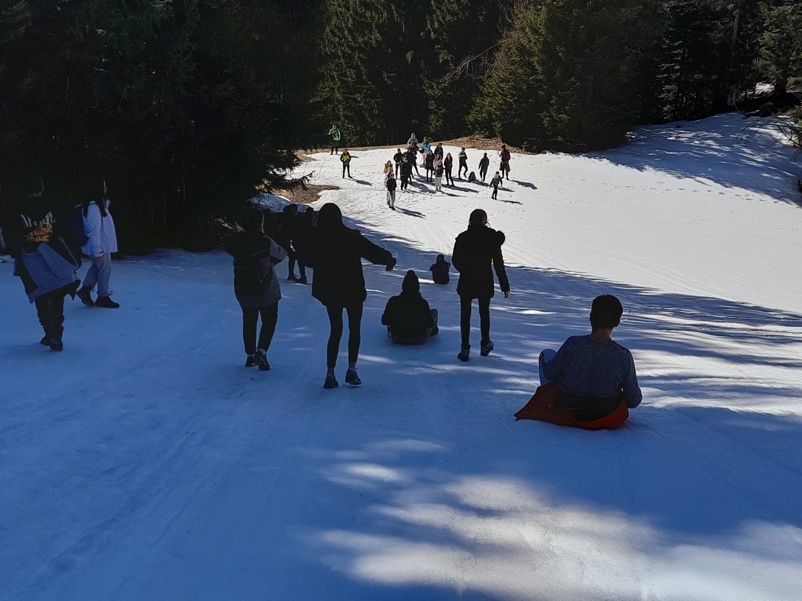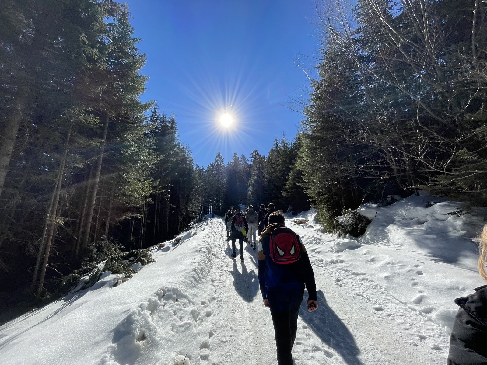 Pot do vrha je bila zasnežena, zaledenela, blatna. Vseeno smo suvereno premagali vse ovire na poti. Ko smo prišli na vrh, smo pomalicali in uživali v razgledu.