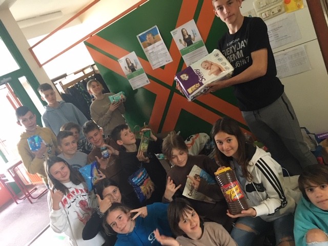 Na naši šoli smo učenci od 1. do 9. razreda zbrali kar solidno količino higienskih pripomočkov in živil za Ukrajino.
