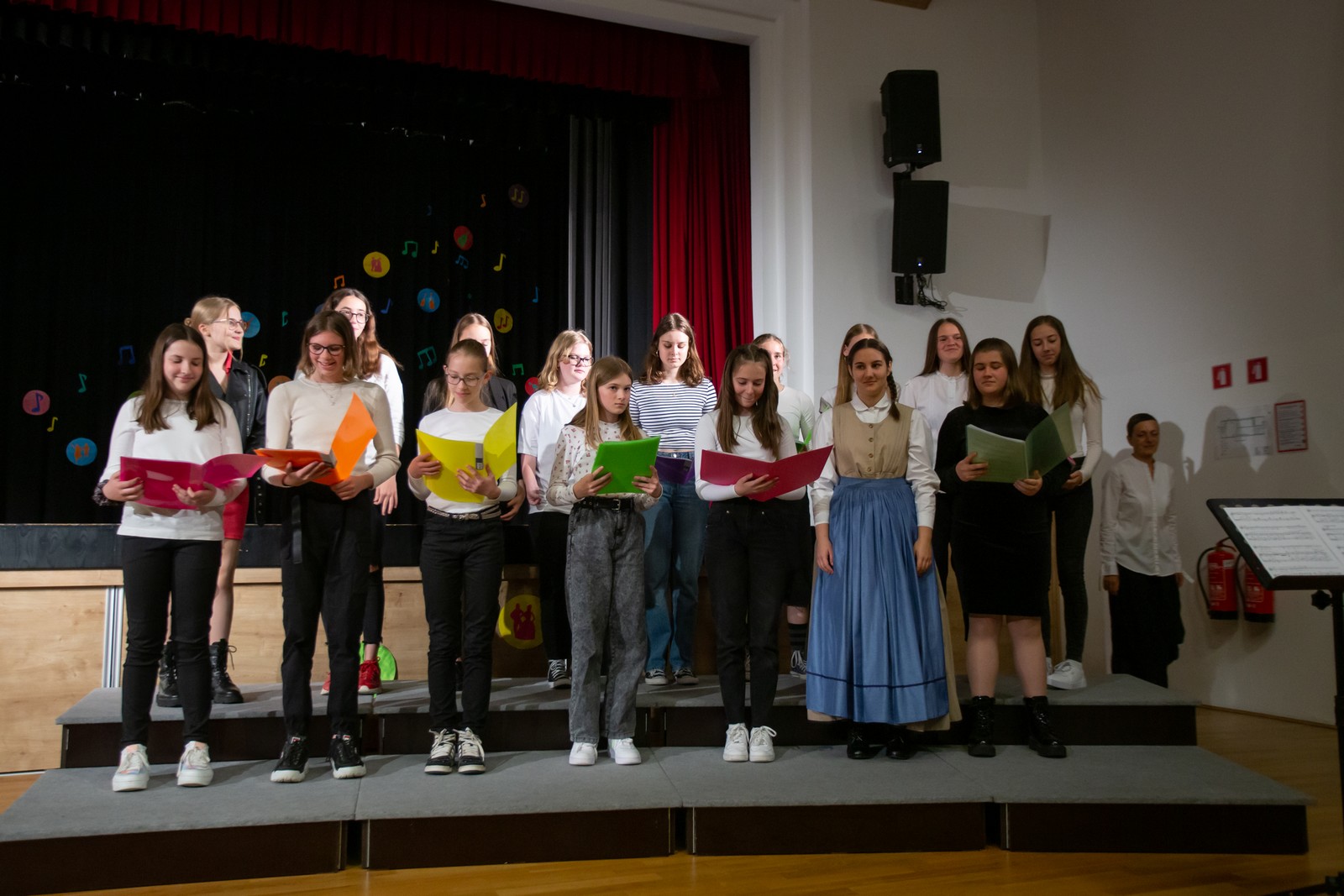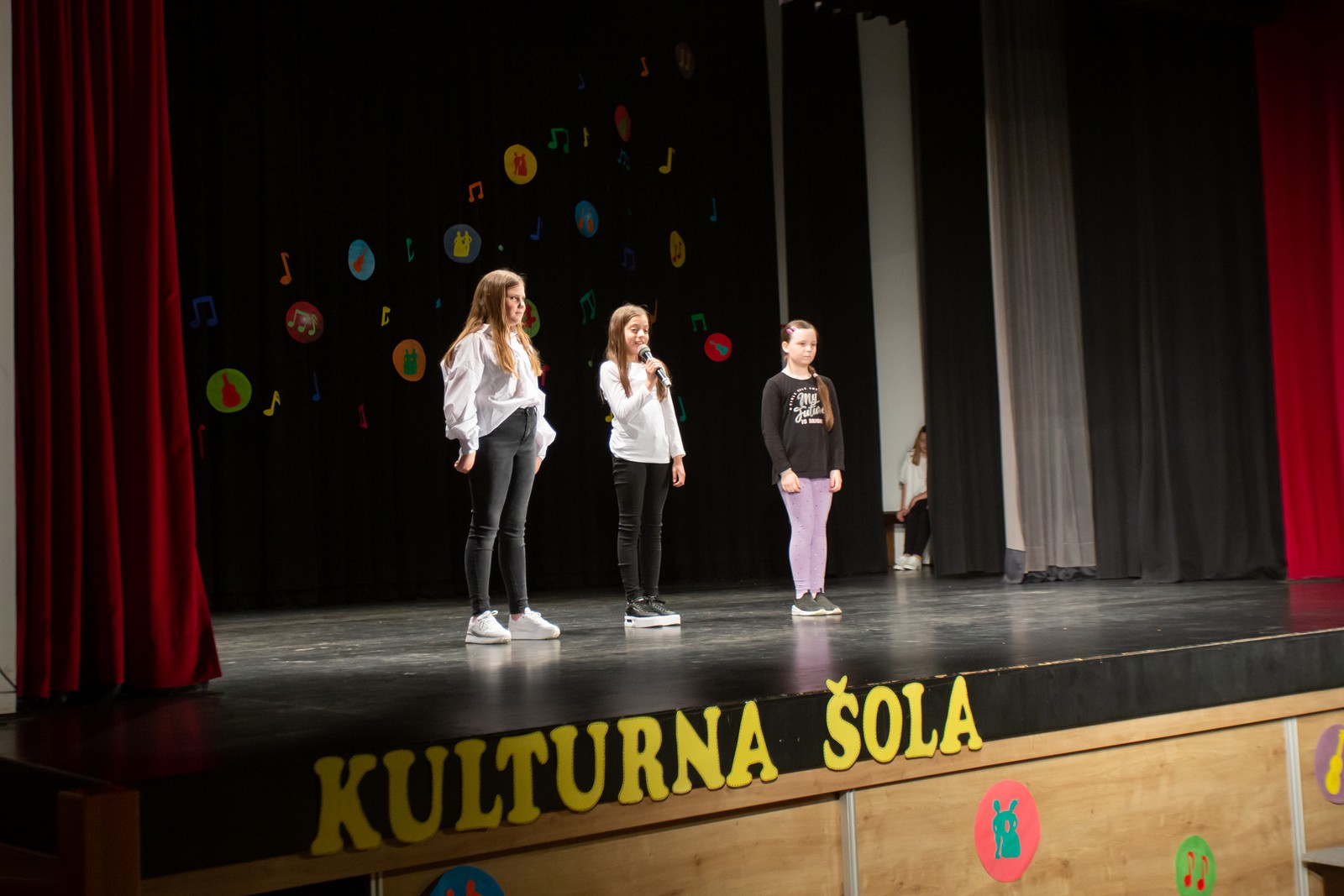 Tako so v programu nastopili vsi trije pevski zbori – otroška prepevalnica, v kateri prepevajo drugošolci, otroški pevski zbor, v katerem svoje glasove urijo učenci od 3. do 5. razreda, in mladinski pevski zbor, ki ima za sabo že nekaj let izkušenj, v njem pa prepevajo učenci od 6. do 9. razreda. Vse tri sestave vodi Ela Verstovšek Tanšek.