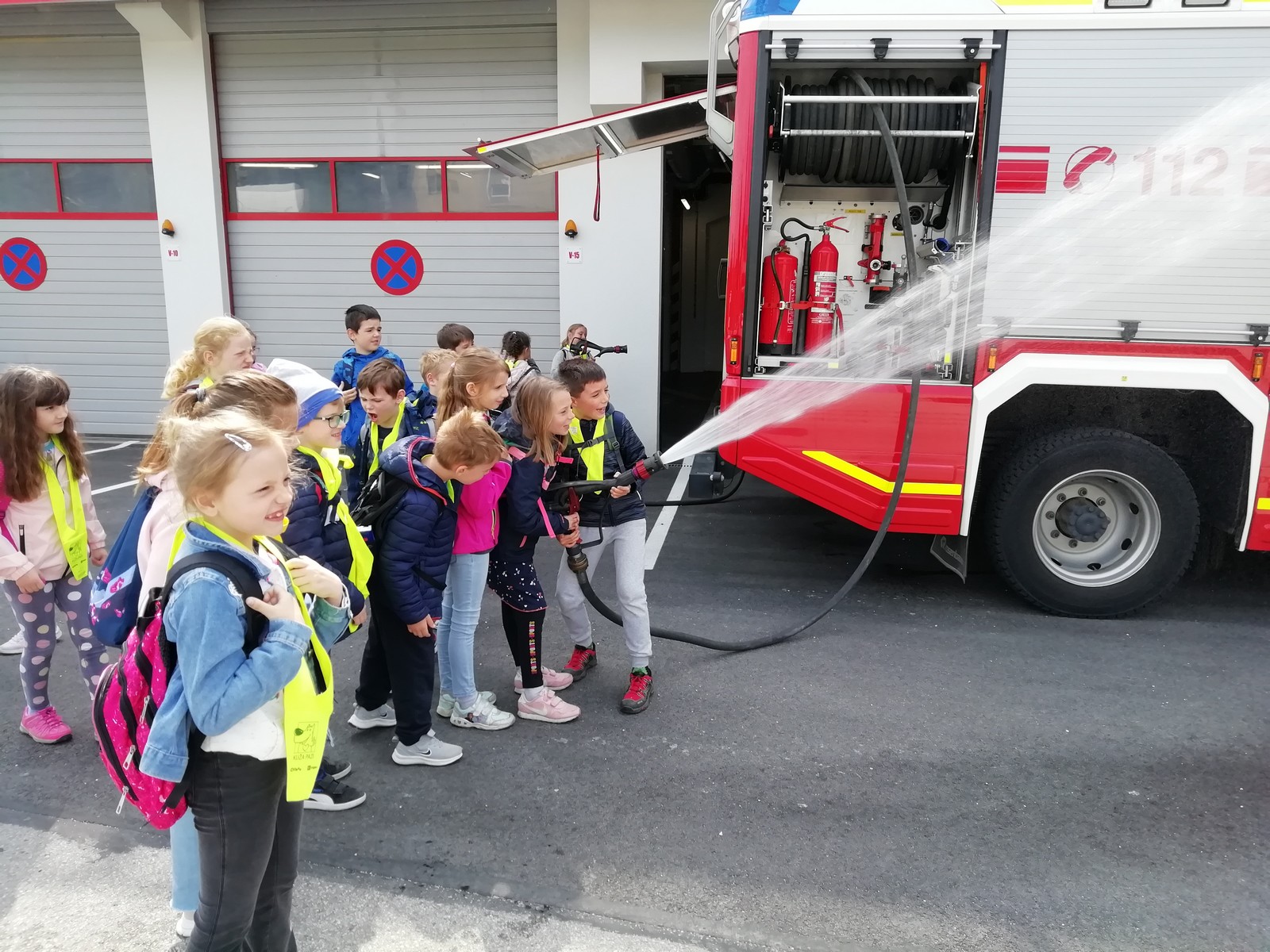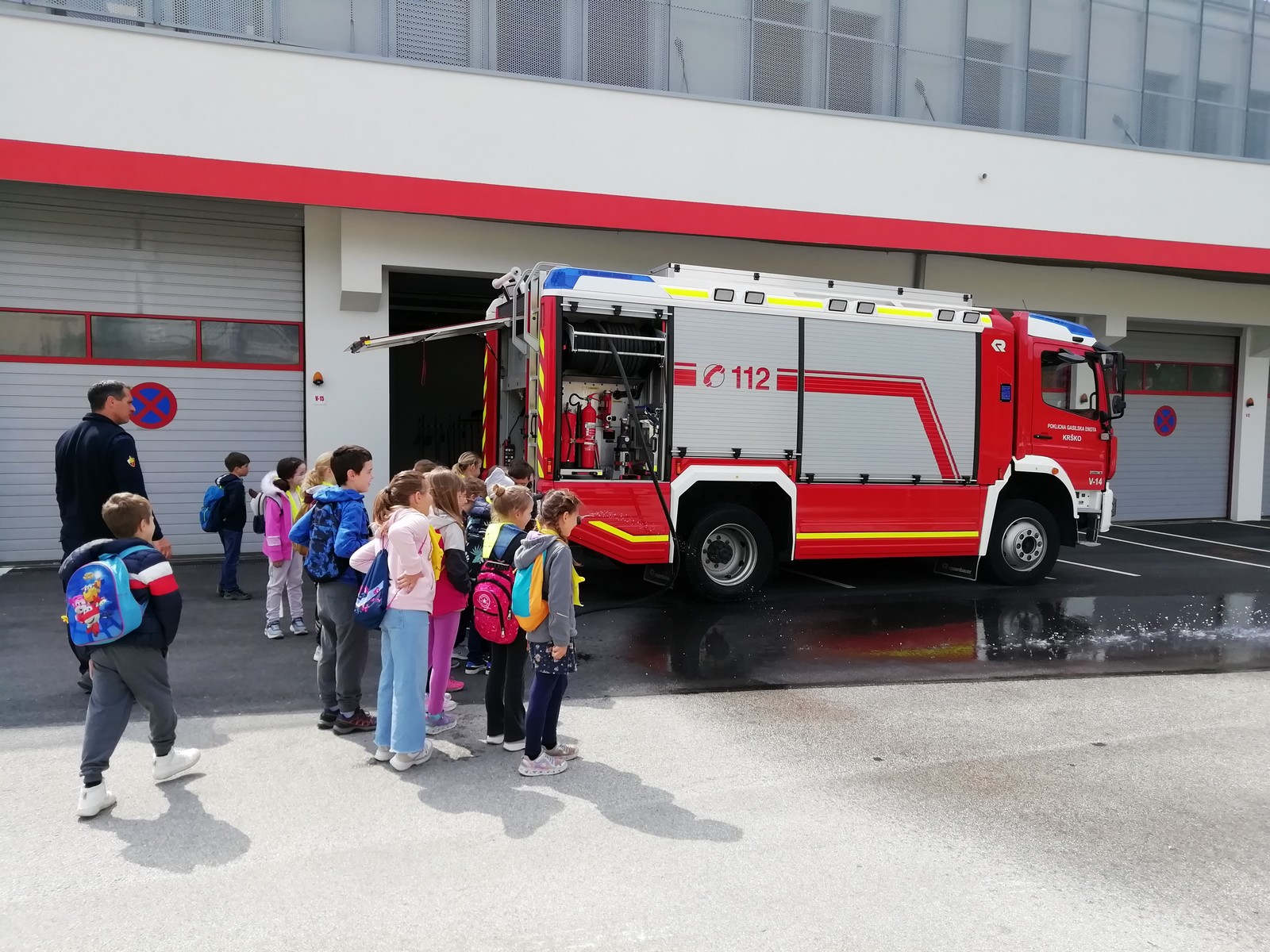 Ogledali smo si celo gasilsko postajo, videli njihova vozila in pripomočke, spoznali njihovo delo in se pogovarjali z gasilcem iz klicnega centra.