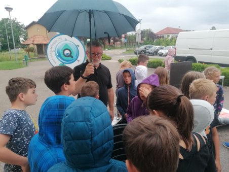 V četrtek, 9. 6. 2022, smo si tretješolci in četrtošolci v okviru projekta Vodni agent ogledali mobilno vodno postajo.