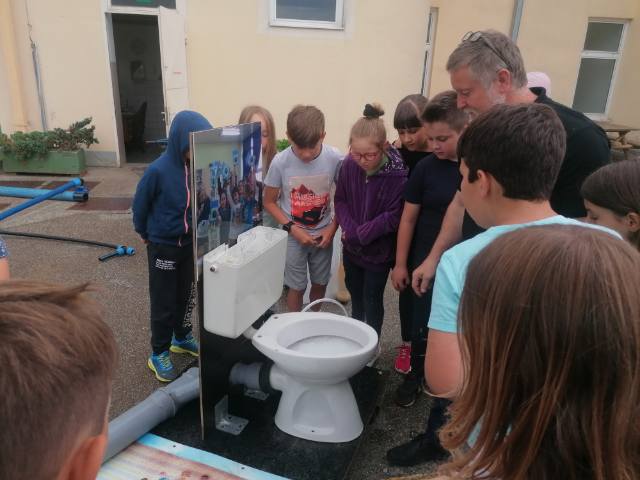 Praktično smo spoznali, kam potuje voda iz WC-ja, kako števec meri iztočeno vodo in kako se voda filtrira.