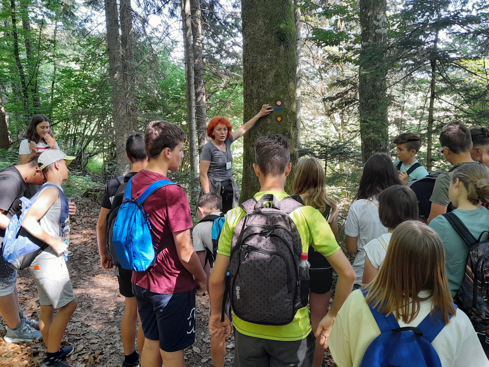 Najprej nas je vodička Joži vodila po gozdnih  poteh in med tem nas je poučila o različnih živalih.