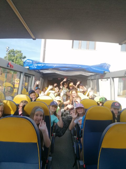 Tretješolci smo se na končni izlet popeljali s posebnim avtobusom, brez strehe.