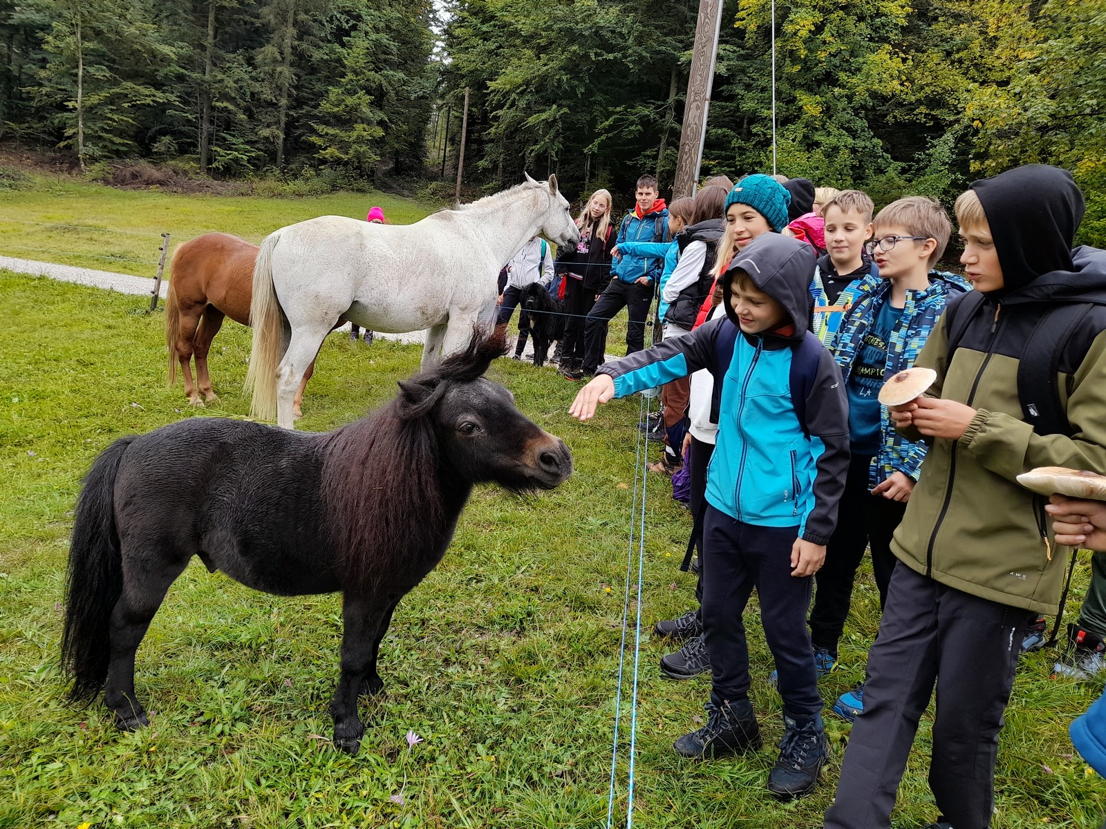 Popoldanske dejavnosti smo pričeli v naravoslovni učilnici, kjer smo se spoznali s kačo Borisom. Učiteljica Saša nam je povedala veliko o tej živali, kasneje pa smo kačo lahko tudi vsi prijeli v roke. Nadaljevali smo s spoznavanjem različnih vrst lišajev. Te smo kasneje preučevali tudi na terenu. Bogatejši smo za spoznanje, da so te rastlinske vrste pokazatelj čistosti zraka.