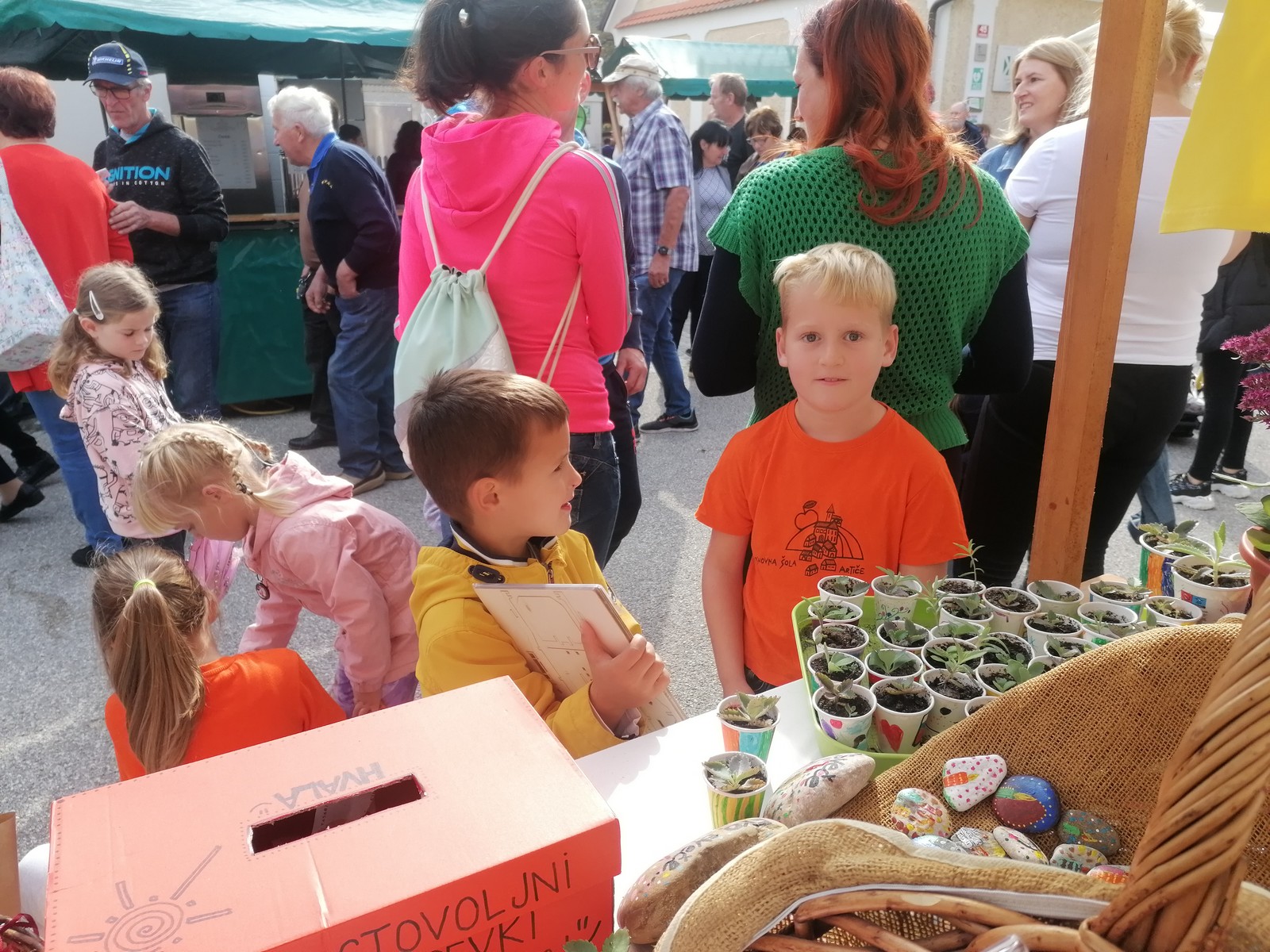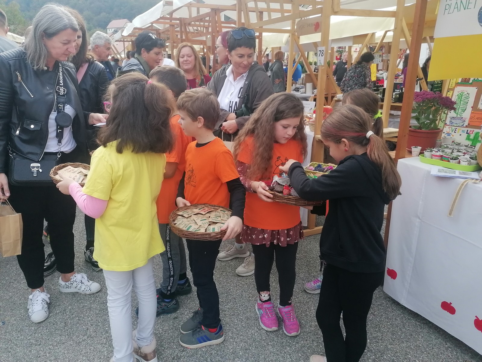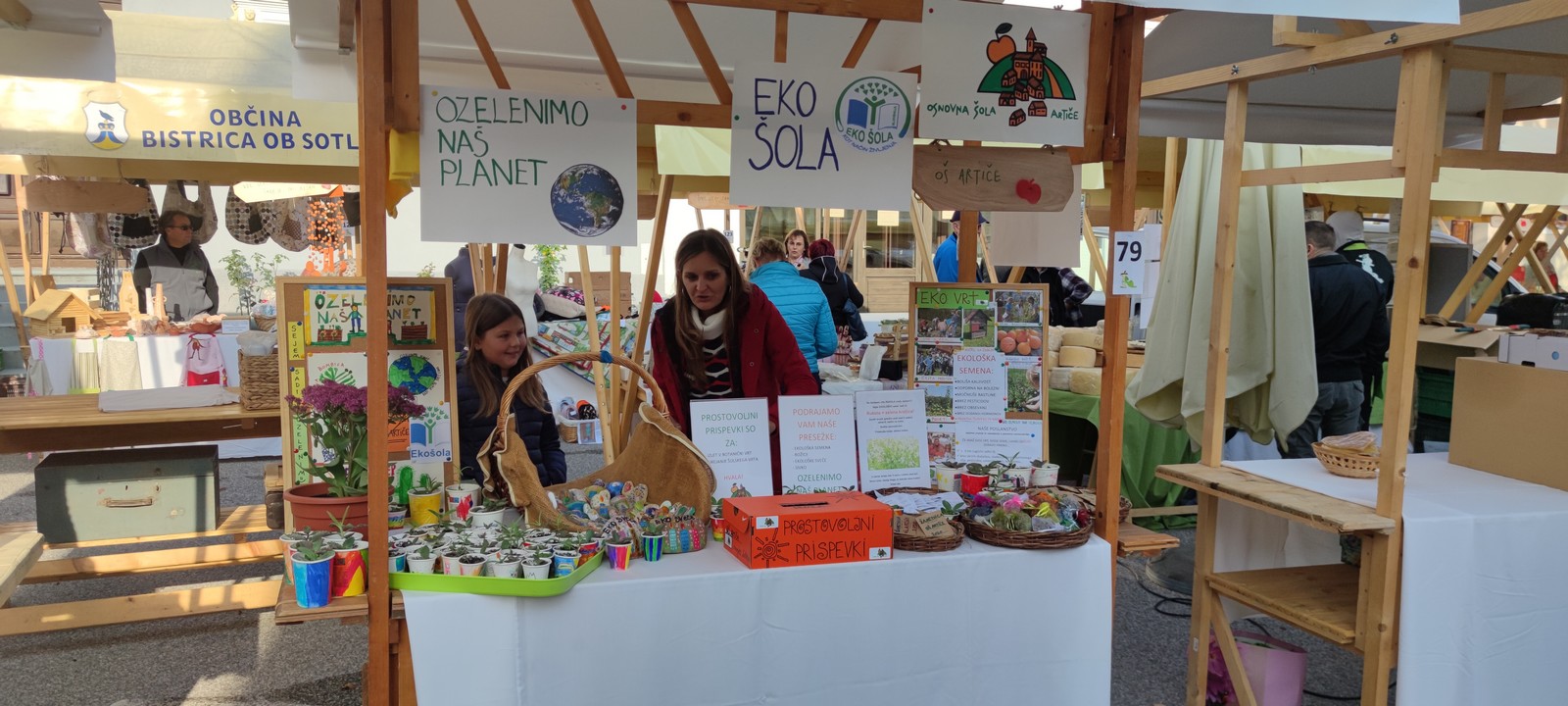 Med ljudi smo delili svoje presežke: semena rukole, ognjiča in žametnice, dišeče vrečke sivke, eko svečke na kamnih, mini kalanhoje.