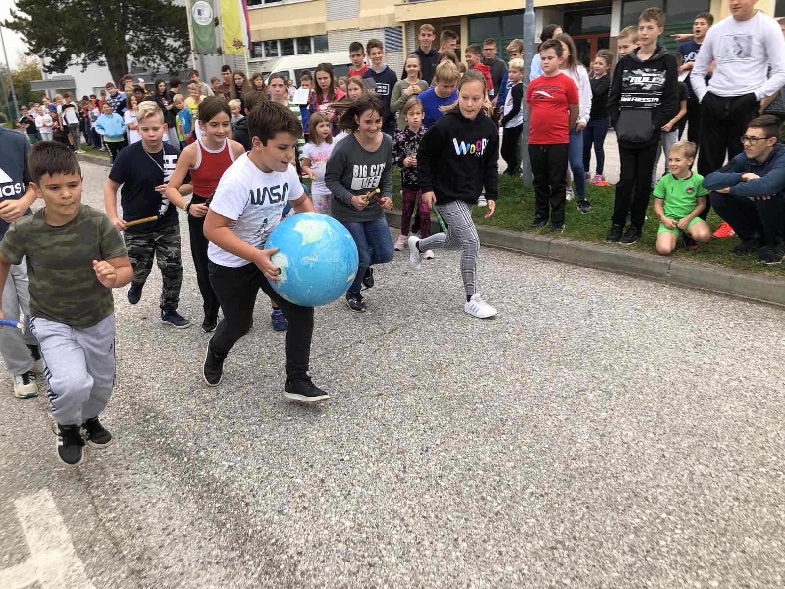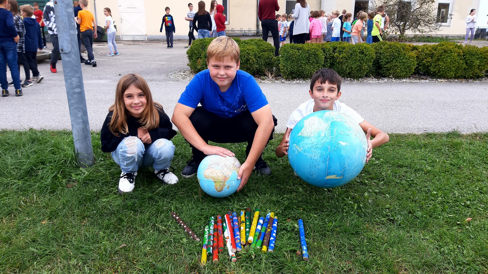 Iz starih metel smo naredili trajnostne štafetne palice in se z njimi podali na tek okoli šole.
