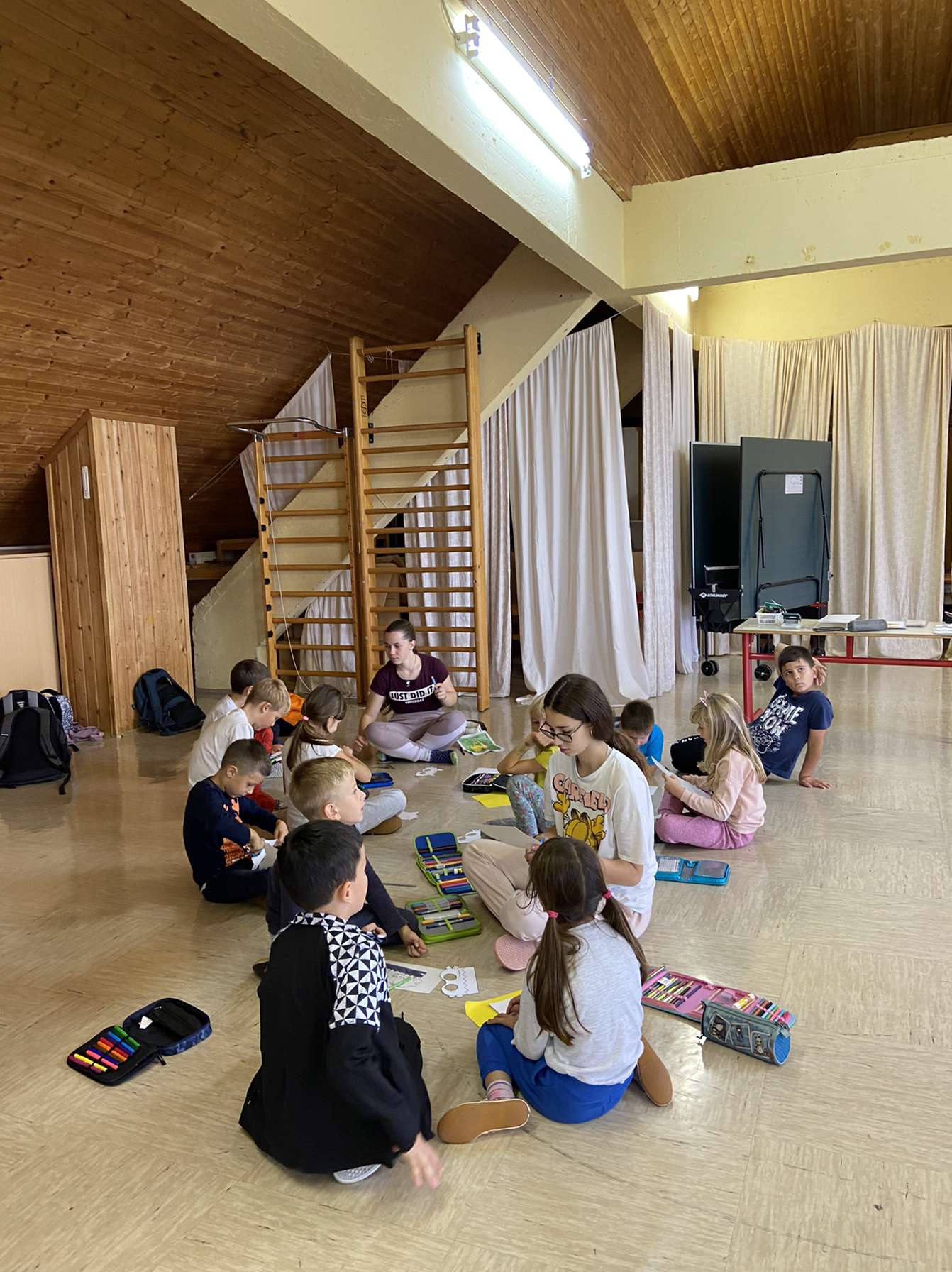 Najprej smo se podružili z 1. in 2. razredom ter skupaj izdelali halloween maske. Potem so se pri izdelovanju mask preizkusili še 3., 4. in 5. razred, ter z nami še malo zaplesali.