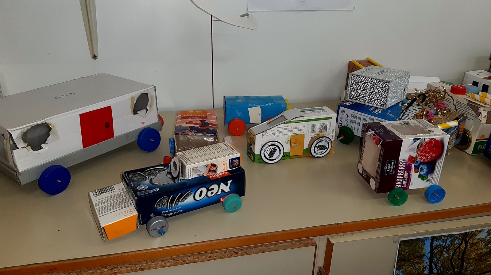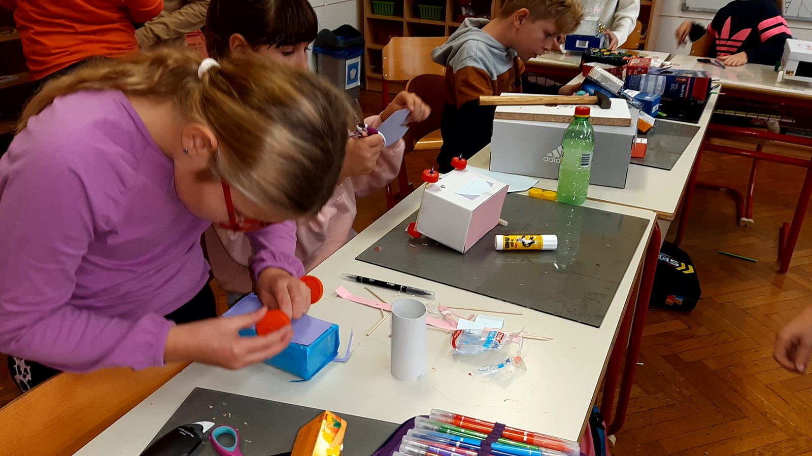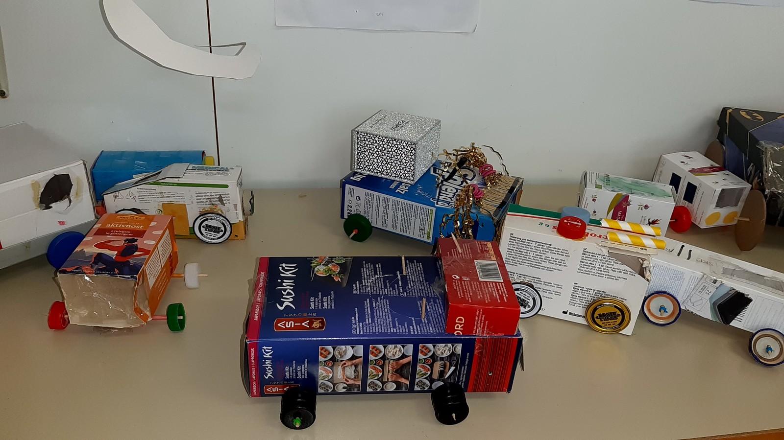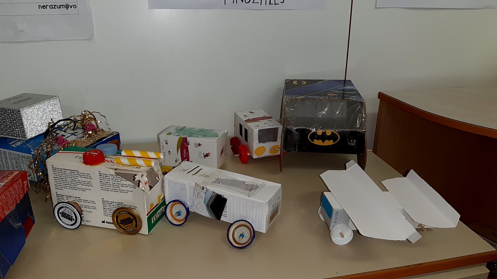 Četrtošolci smo na tehniškem dnevu izdelovali različna vozila iz odpadnih materialov.
