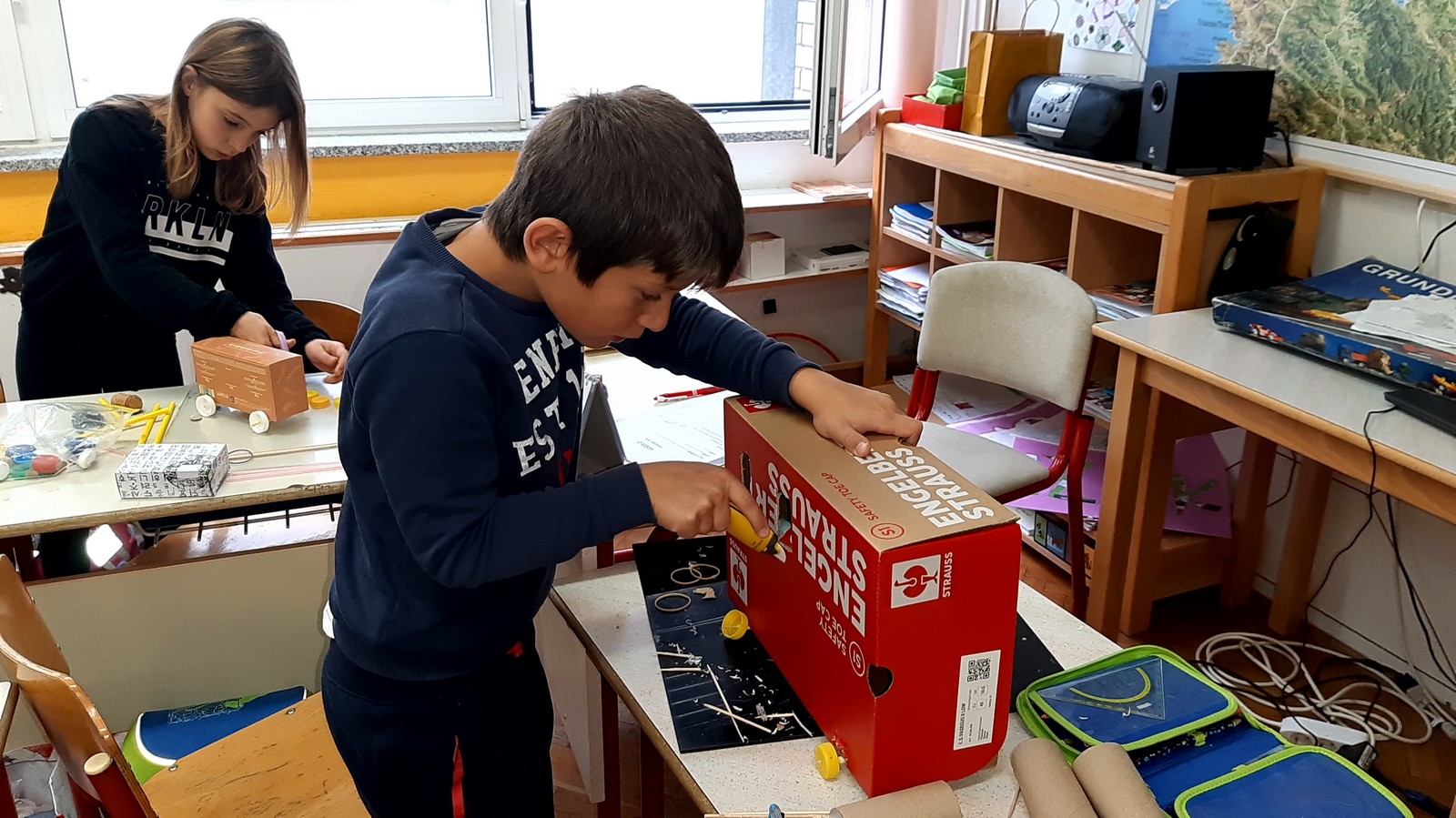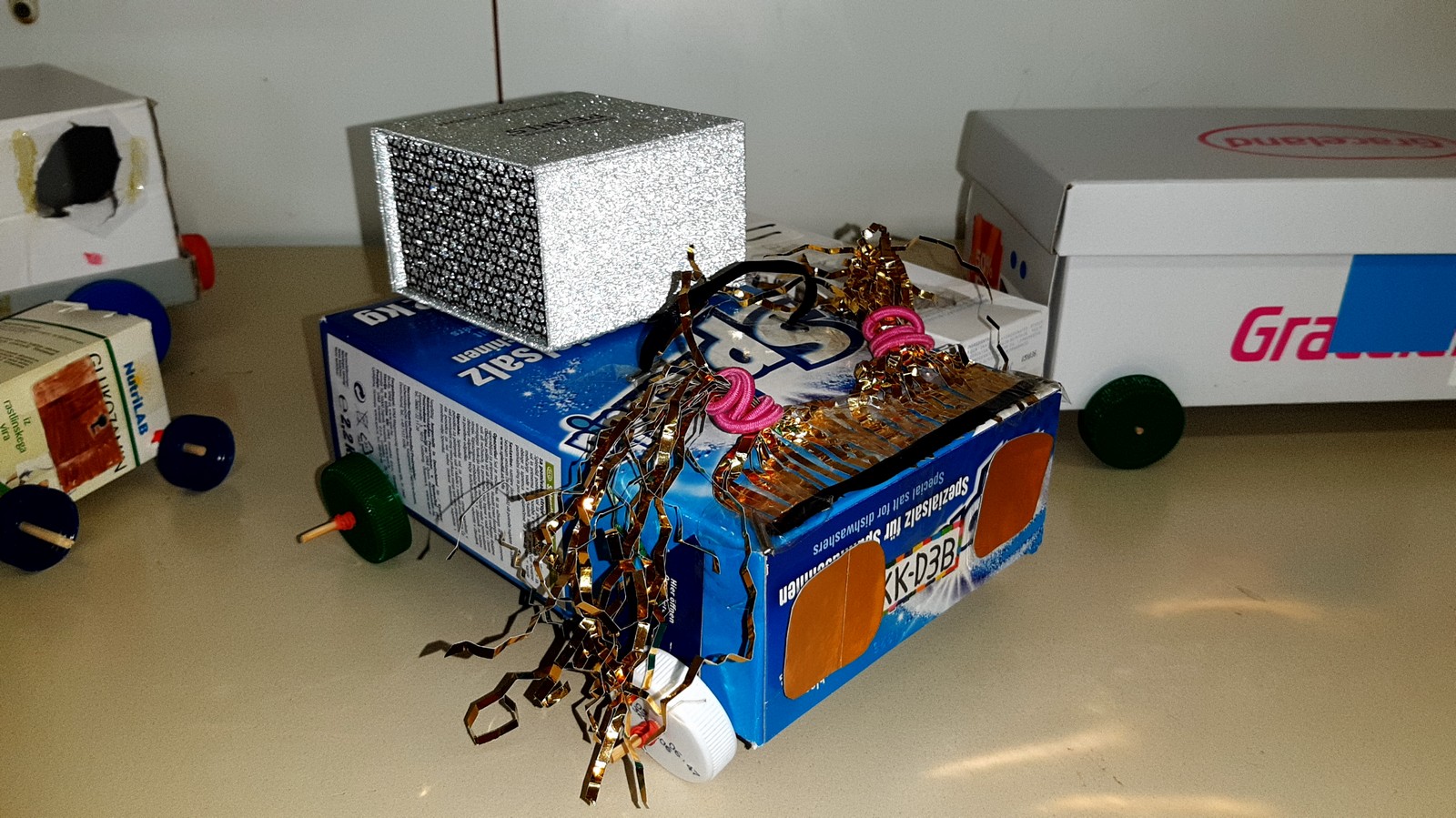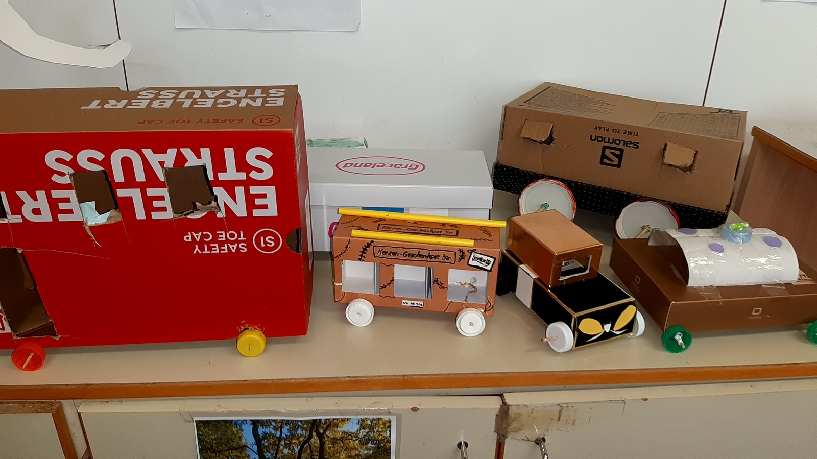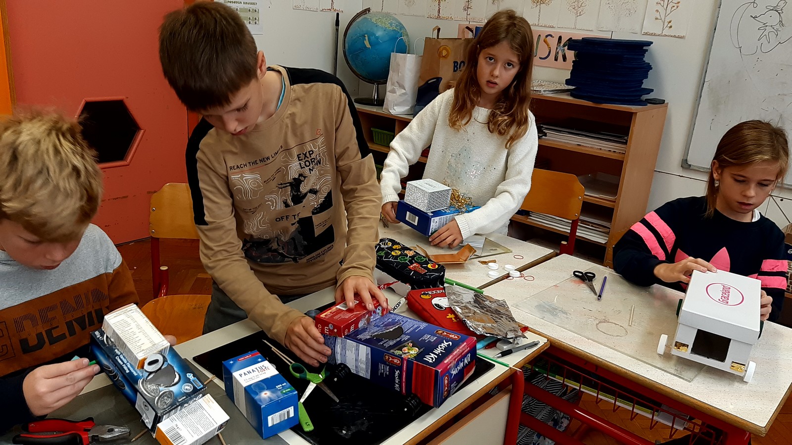 Četrtošolci smo na tehniškem dnevu izdelovali različna vozila iz odpadnih materialov.