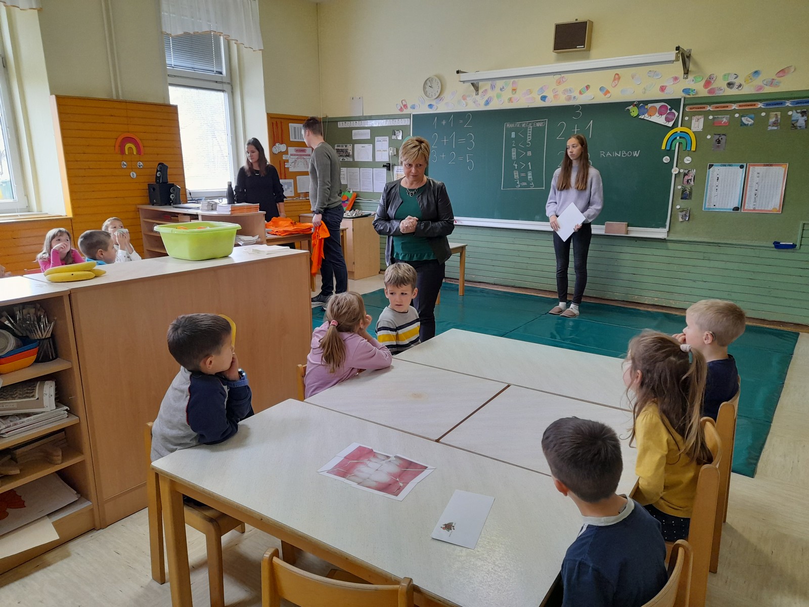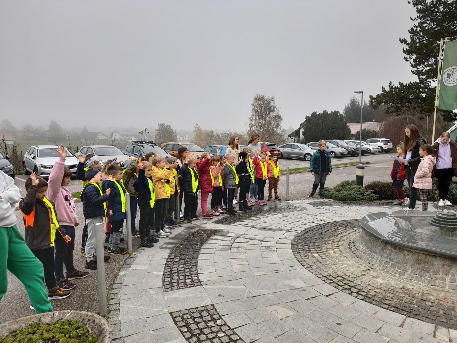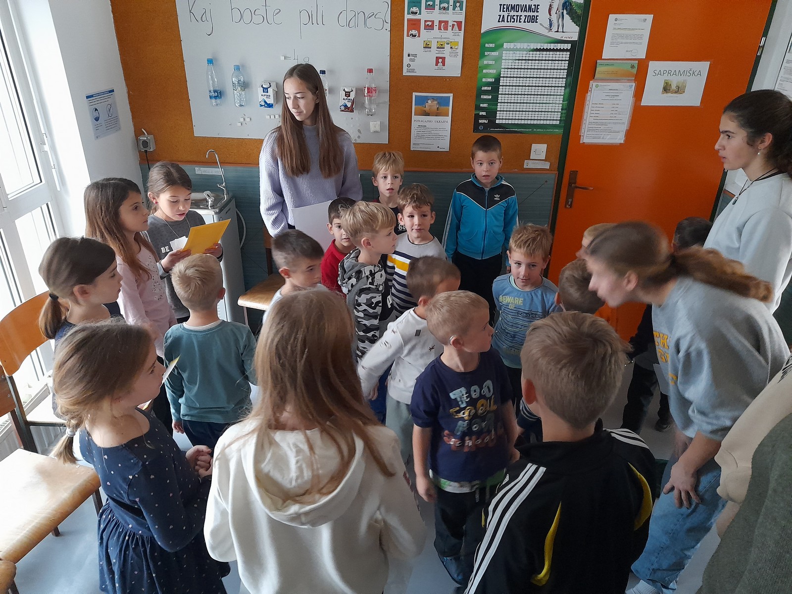 Pred šolo jim je pevski zbor zapel še pesmico v obliki uganke. Pravilen odgovor jih je popeljal v šolsko jedilnico, kjer so se posladkali s palačinkami.