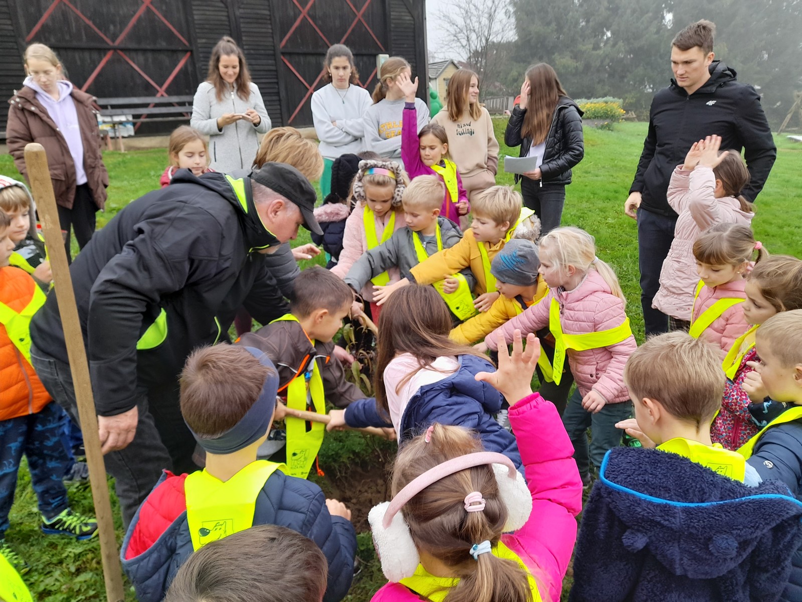 Prvošolci so lov na zaklad uspešno rešili. Dokazali so, da so dostojni člani šolske skupnosti. V sadovnjaku so posadili drevo - vinogradniško breskev - ki bo rasla z njimi vseh devet let njihovega šolanja.