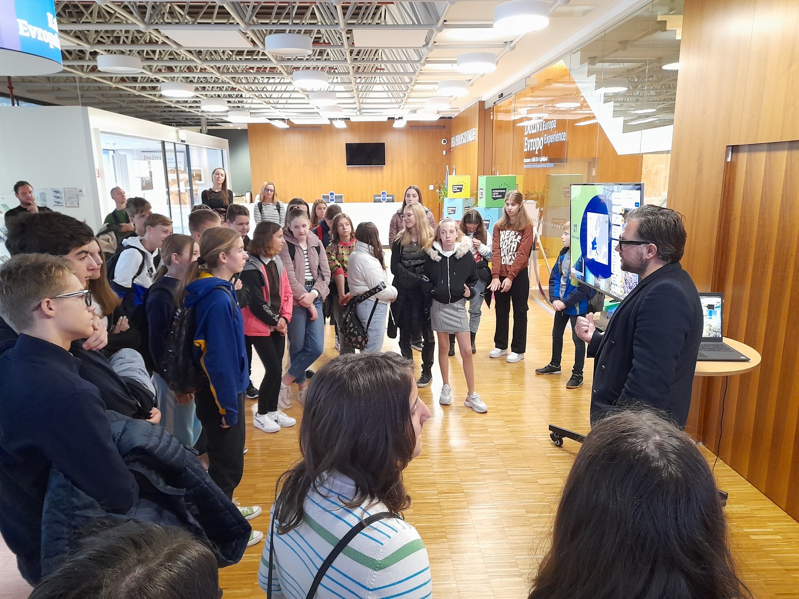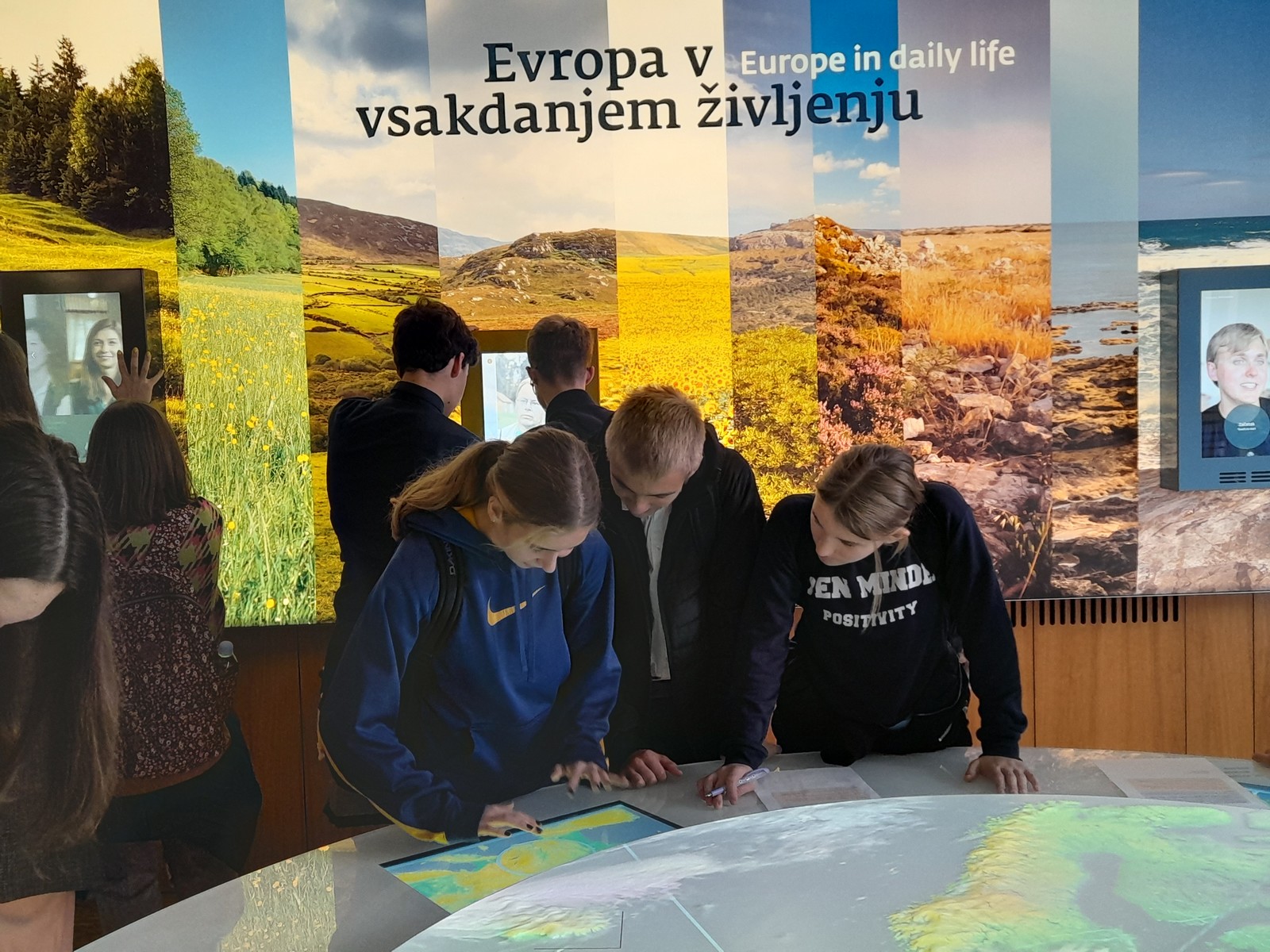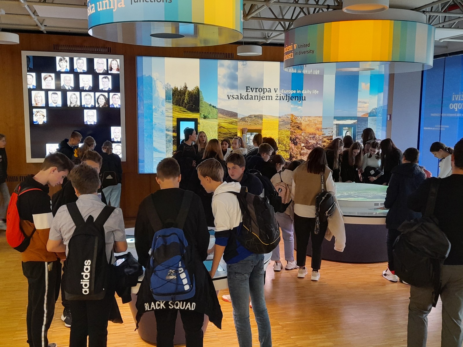 V Ljubljani smo najprej obiskali Hišo Evropske unije, kjer smo poslušali krajše predavanje o nastanku EU, njenih nalogah in vlogi v trenutnih aktualnih razmerah.