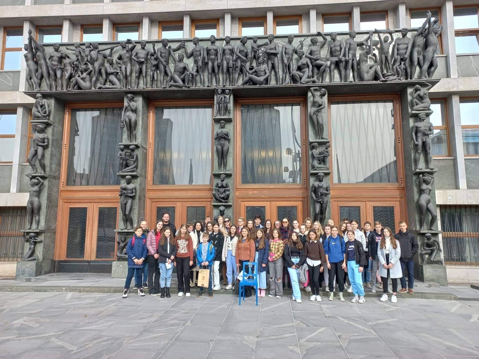 Nato smo se peš odpravili še do našega parlamenta. Pred stavbo smo naredili skupinsko fotografijo, ven pa nas je prišla pozdravit tudi naša poslanka, Krčanka Tamara Vonta.