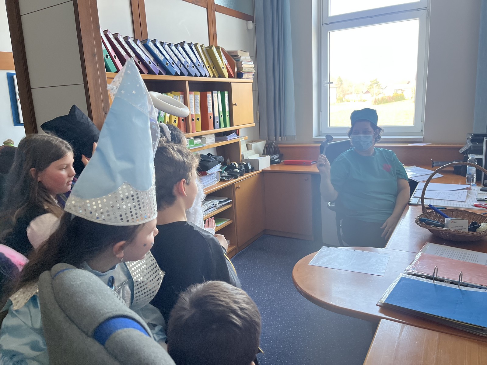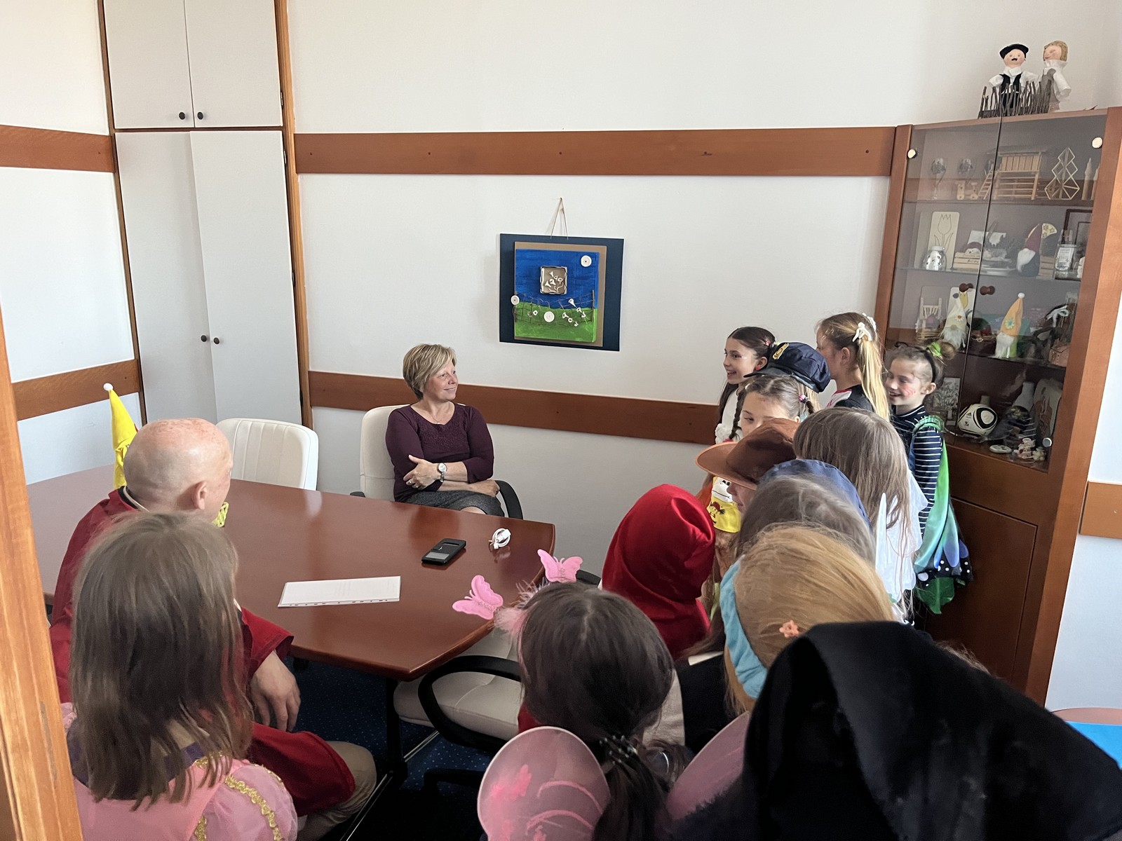 Obiskali smo poštarko, prodajalko, Zarina stara starša, gospo iz Pariza, upokojeno tajnico Ano, lansko učiteljico Manuelo, pevko Nušo, upokojeno učiteljico Vido, sadjarko Rožmanovo, Aljaževo mami, kuharice, kirurginjo Katjo in ravnateljico.
