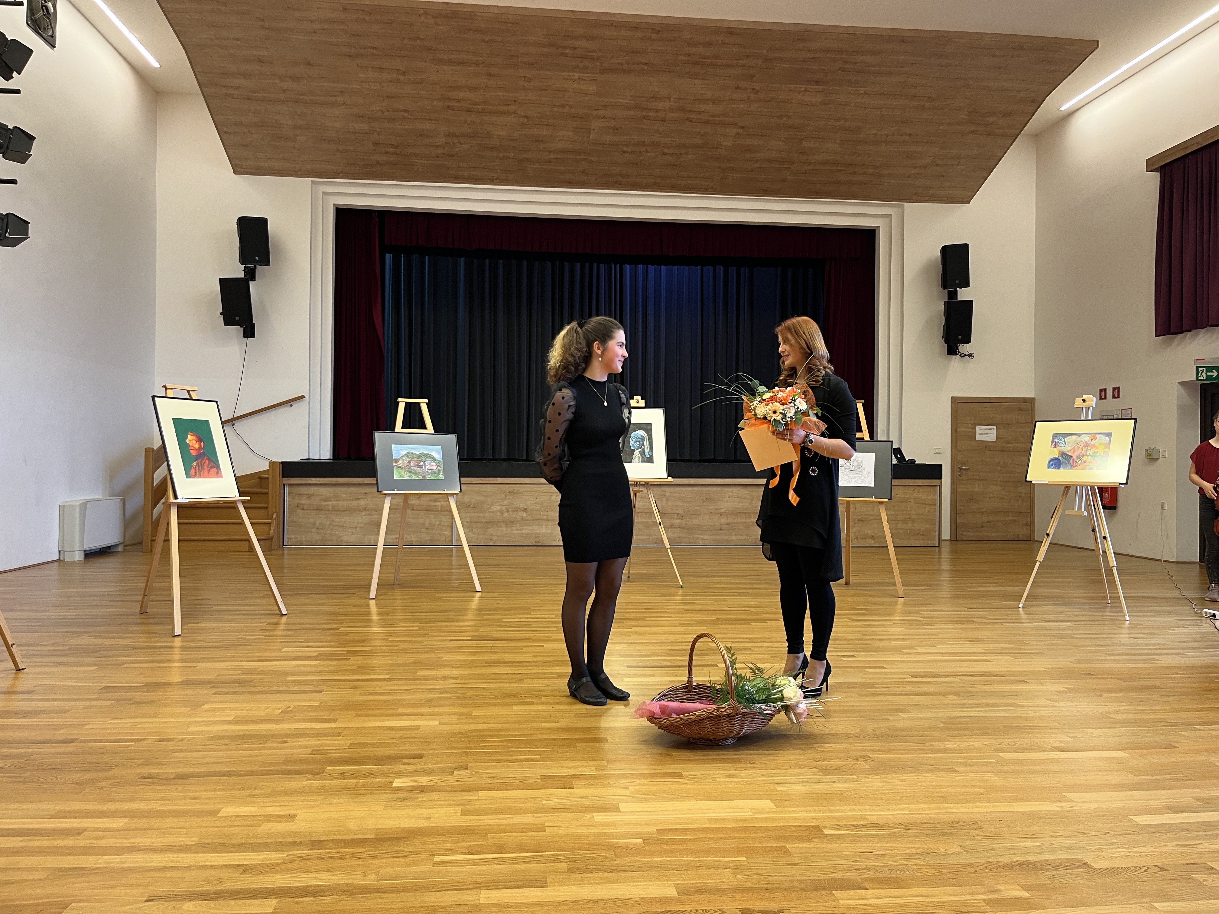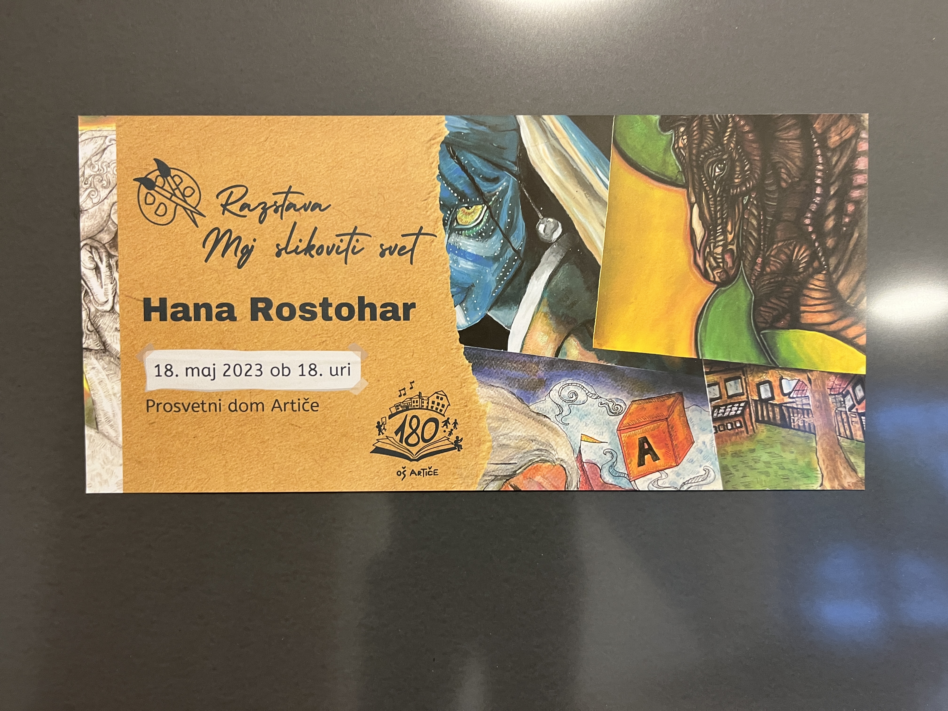V četrtek, 18. 5. 2023 smo se v Prosvetnem domu Artiče potopili v svet barv, ki ga v svojih likovnih delih prikazuje naša učenka, Hana Rostohar.