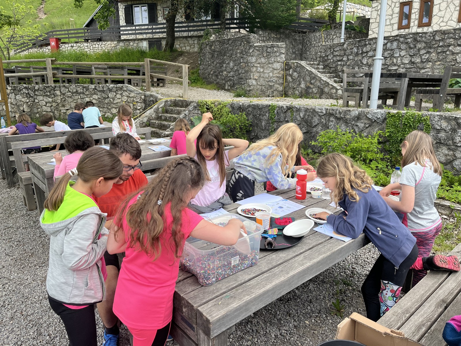 Zjutraj smo si privoščili bosonogi vzpon po rosi do "Nebes", dopoldne nabirali zdravilna zelišča, izdelovali nakit, se igrali, se igrali in se igrali.