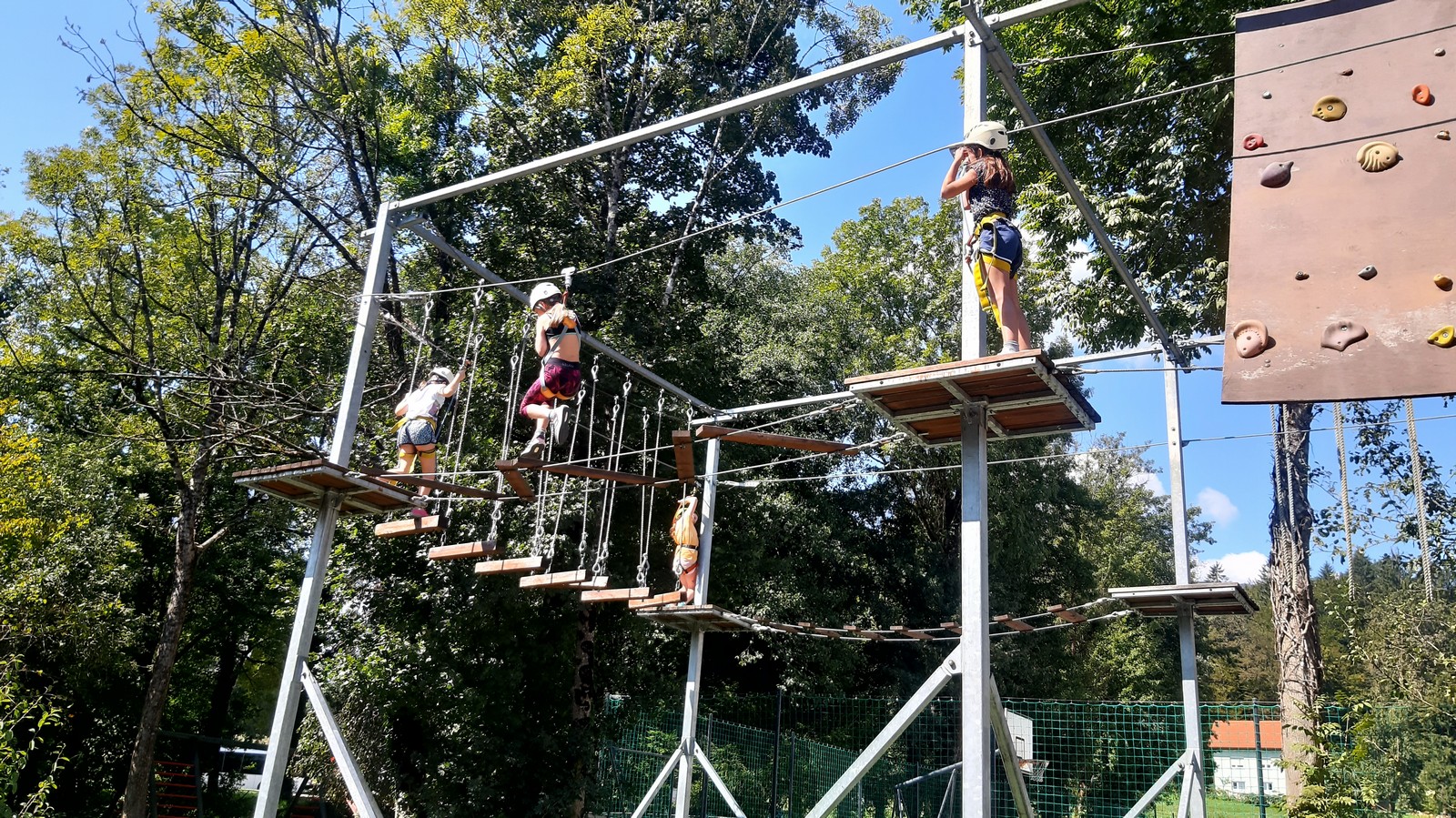 Z nasmehi na obrazih smo se po zajtrku odpravili na igrišče ter na spuste po jeklenicah - zipline.