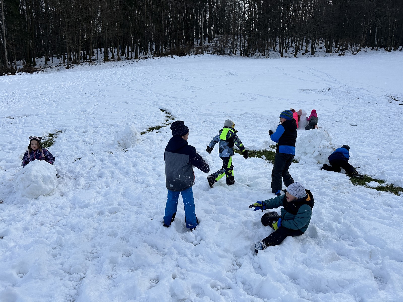 Popoldne smo preživeli na snegu. Toplo smo se oblekli in se odpravili na bližnji hrib, kjer smo se dričali, delali snežake in se kepali. Prijetno utrujeni smo se vrnili v dom.