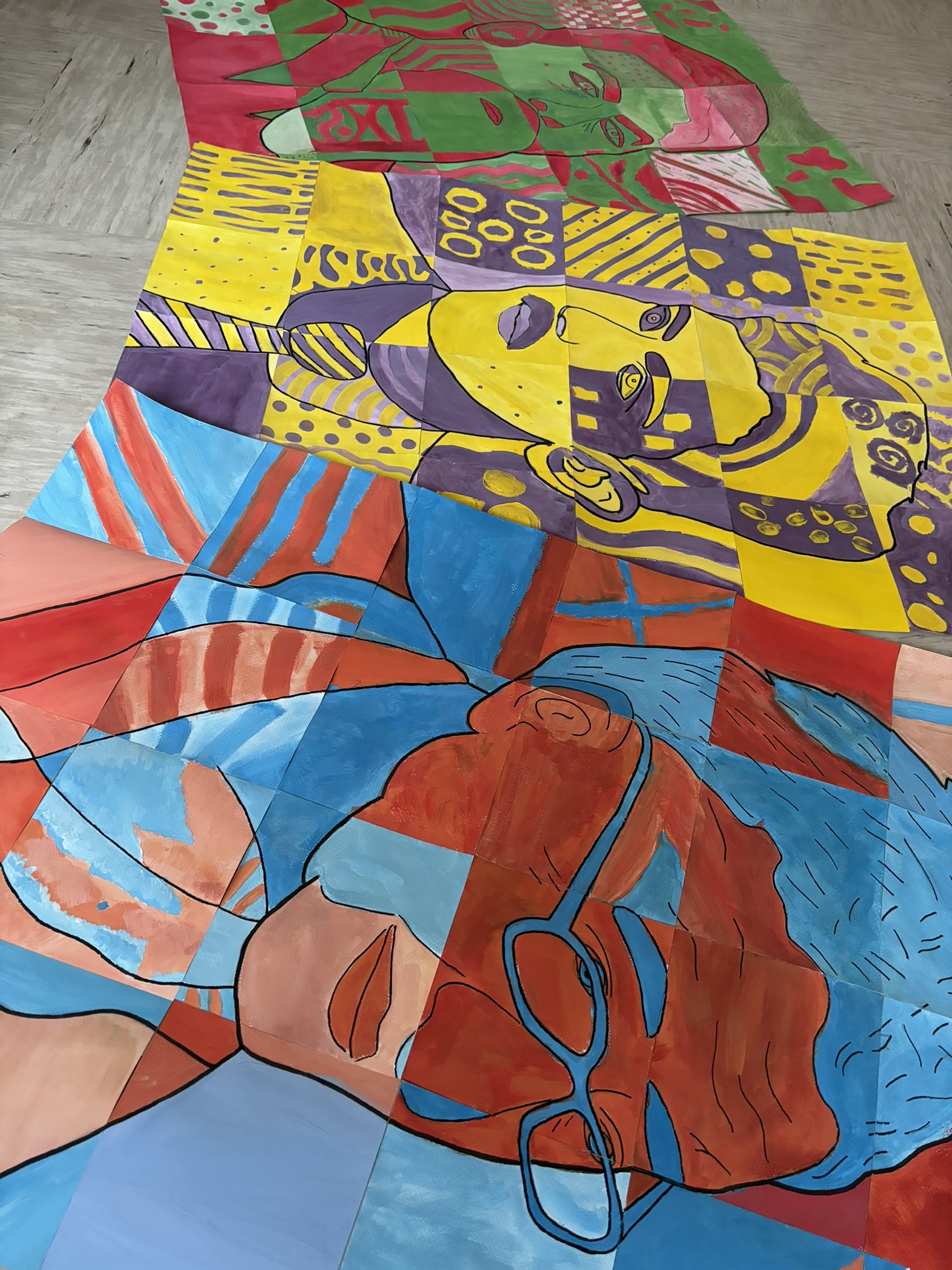 Delo so si razdelile učiteljice družboslovnega aktiva in vsaka je pogled na vse tri ustvarjalce obravnavala na svoj način. Pri glasbi smo ustvarjali glasbo za napovednik filma Cvetje v jeseni, ki je bil posnet po Tavčarjevi literarni predlogi, sedmošolci pa smo s pomočjo digitalnega medija uglasbili Kajuhovo Droben cvet. Pri slovenščini smo spoznavali zanimive dele iz njihovih življenjepisov, posebej natančno pa smo sedmošolci spoznali Ravnikarja, osmošolci Tavčarja in devetošolci Kajuha. Ob tem smo pri zgodovini vse tri umetnike postavili v ustrezen časovni okvir in orisali čas, v katerem so živeli. Znotraj likovne umetnosti smo poustvarili izjemno zanimiv portret vseh treh – sestavili smo ga namreč iz 24 lističev, od katerih ima vsak drugačno likovno podlago, vendar na koncu deluje kot celota. Na zanimiv način pa smo se spoznavanja Edvarda Ravnikarja lotili pri angleščini, kjer smo iz lego kock poustvarjali eno od njegovih najprepoznavnejših stvaritev (Cankarjev dom, Maxi market, stavbi NLB) in nato s pomočjo angleških besed usvajali opisovanje poti, pozicijo ostalih predmetov glede na to stavbo …