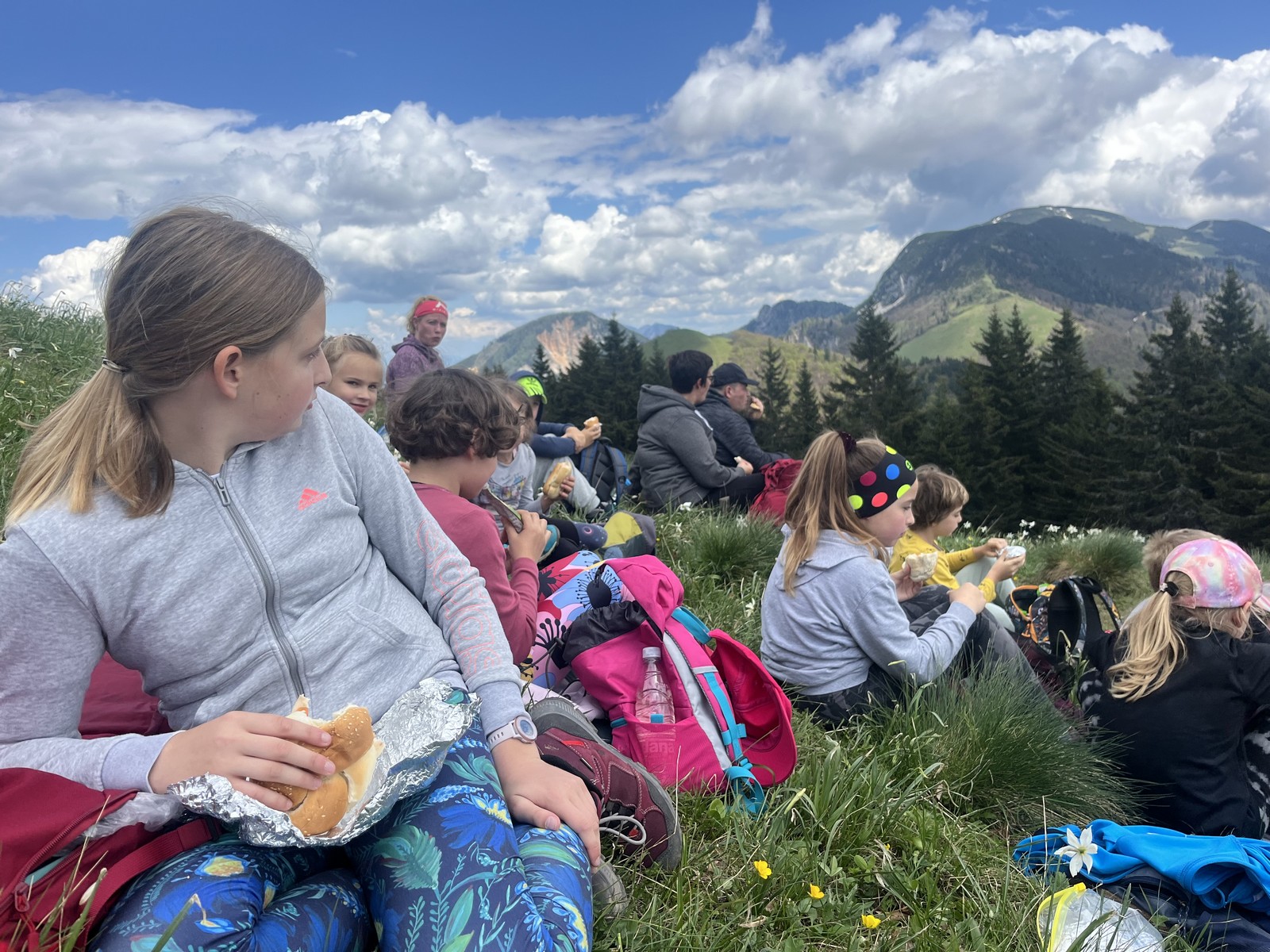 Med potjo so nas ves čas spremljale bele narcise, na grebenskem delu smo občudovali razglede proti najvišjim vrhovom in reki Dravi.