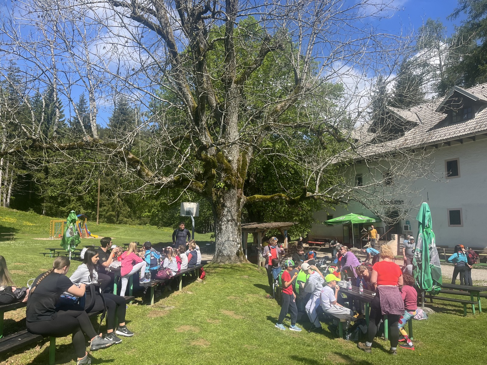 Po peturnem pohodu smo si privoščili malico in igro pri domu na Javorniškem Rovtu. Imeli smo priložnost opazovati spretnosti bruhanja ognja, najbolj luštno pa je bilo na igralih.