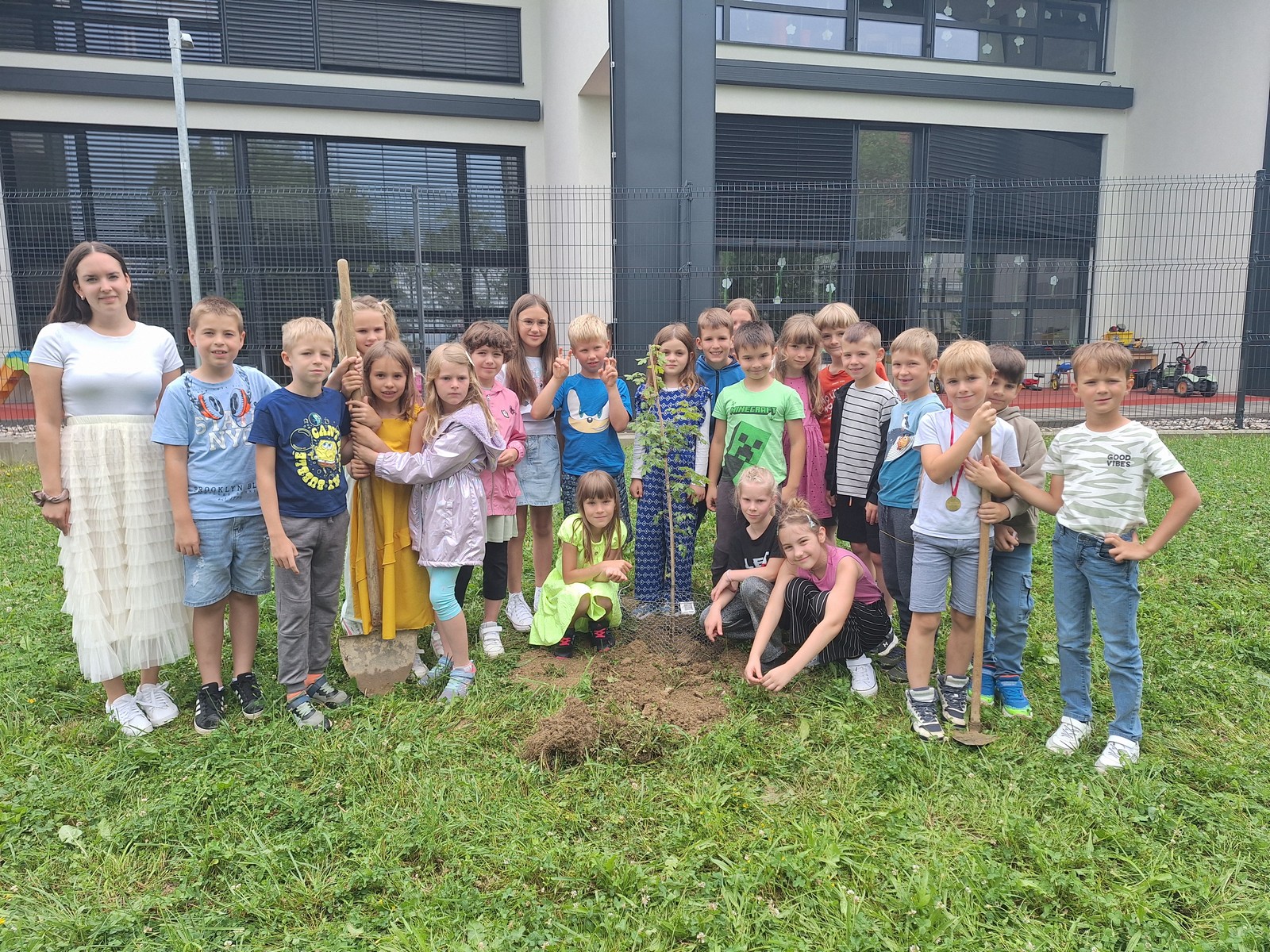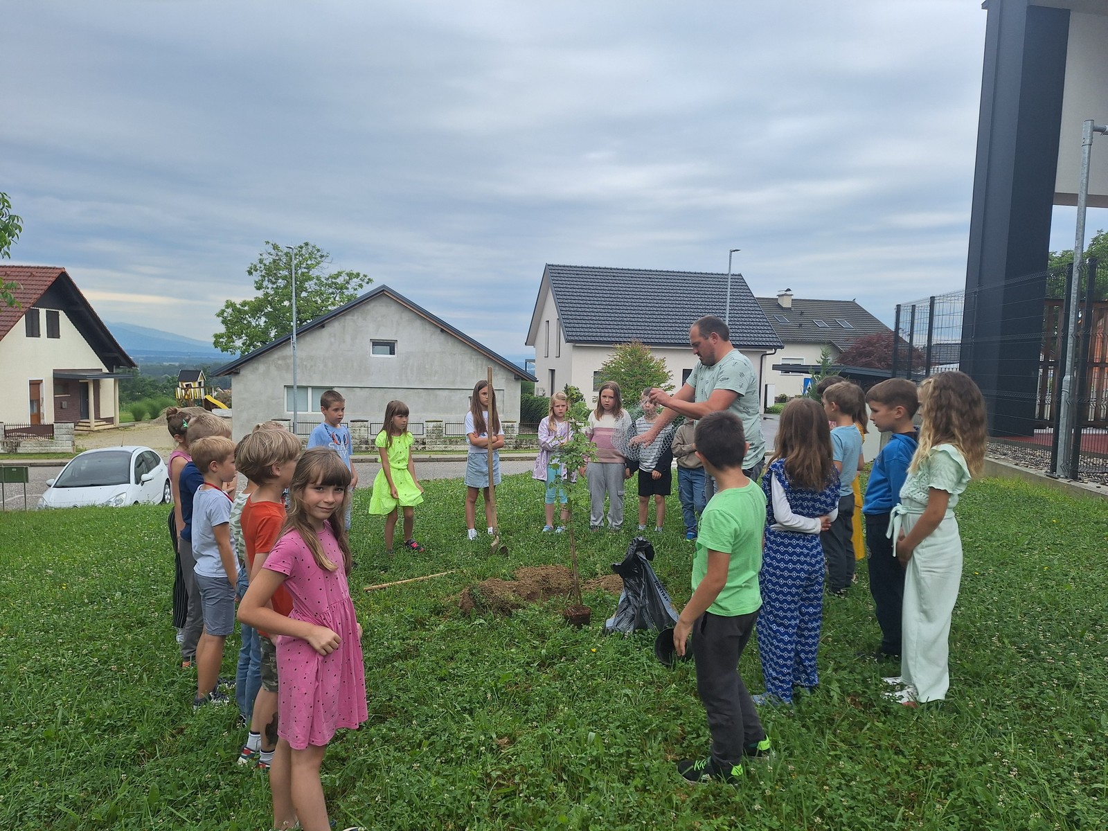 Drevo so v bližini vrtca posadili učenci 2. razreda, ki so bili zmagovalci akcije. S svojimi vejami bo pripomoglo, da bo na terasi senca.