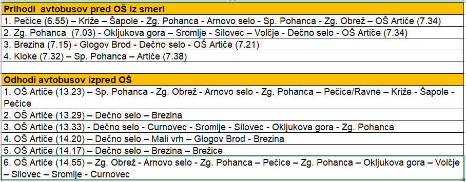 V tabeli si lahko ogledate urnik šolskih prevozov za šolsko leto 2024/2025.
