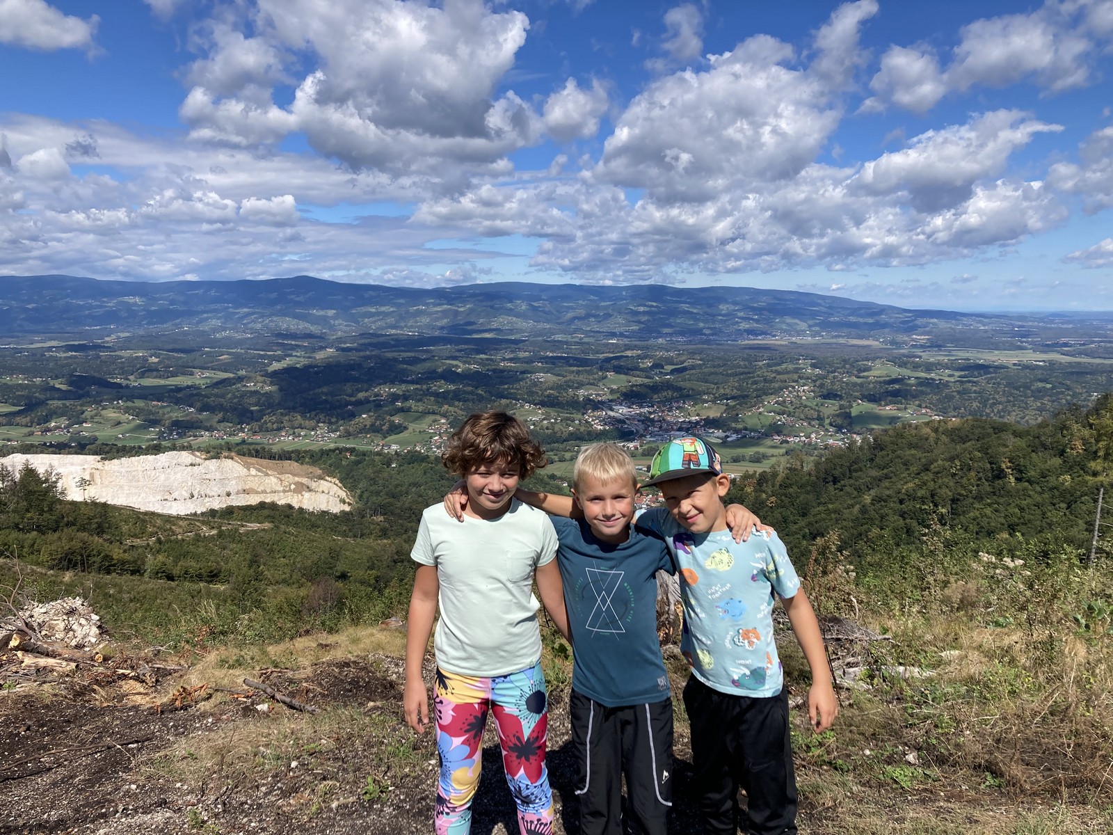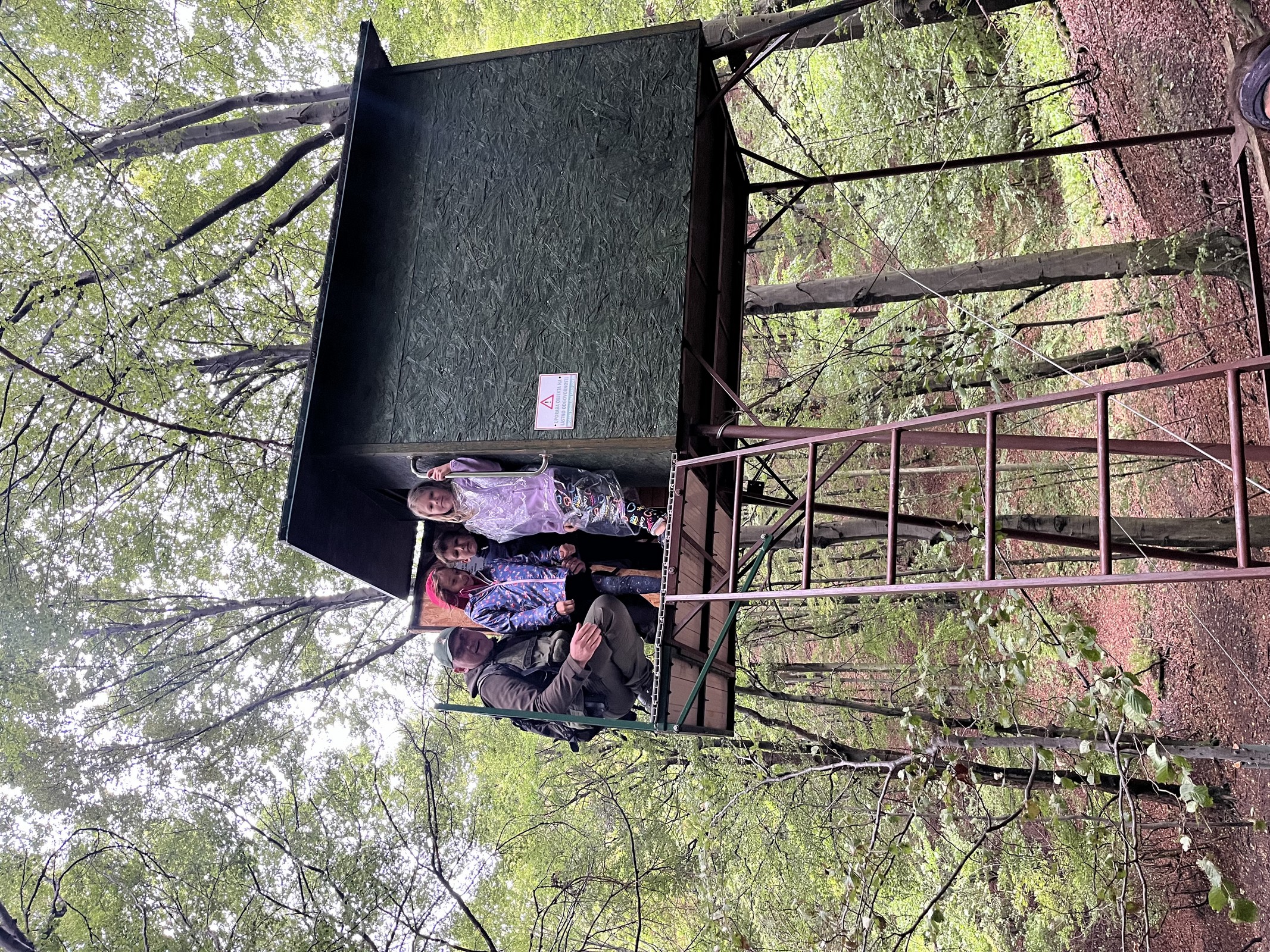 Z lovcem smo raziskovali lovske poti, hranili divje svinje, plezali na prežo in se igrali s psom.